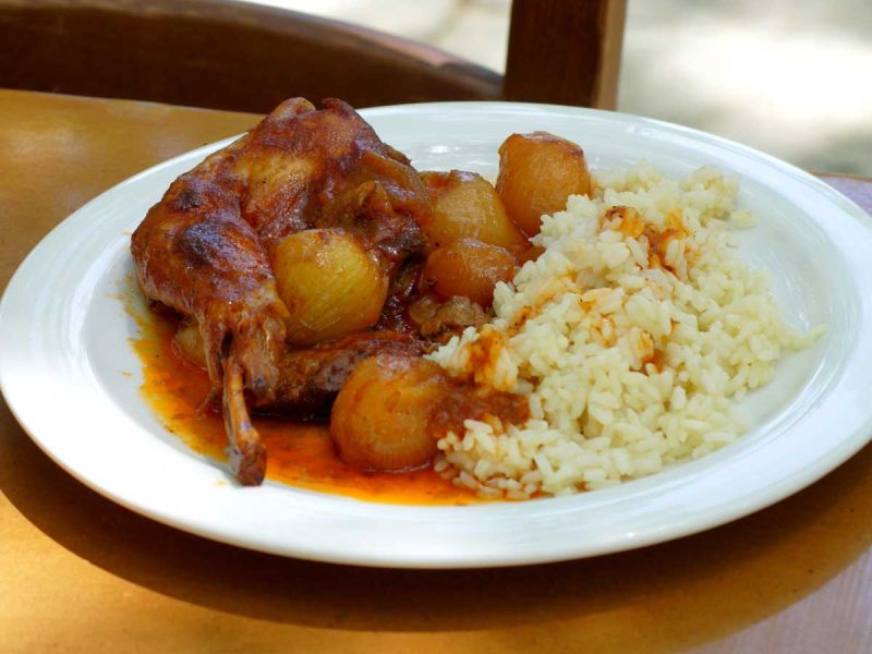 Κουνέλι στιφάδο με δάφνη και κανέλα