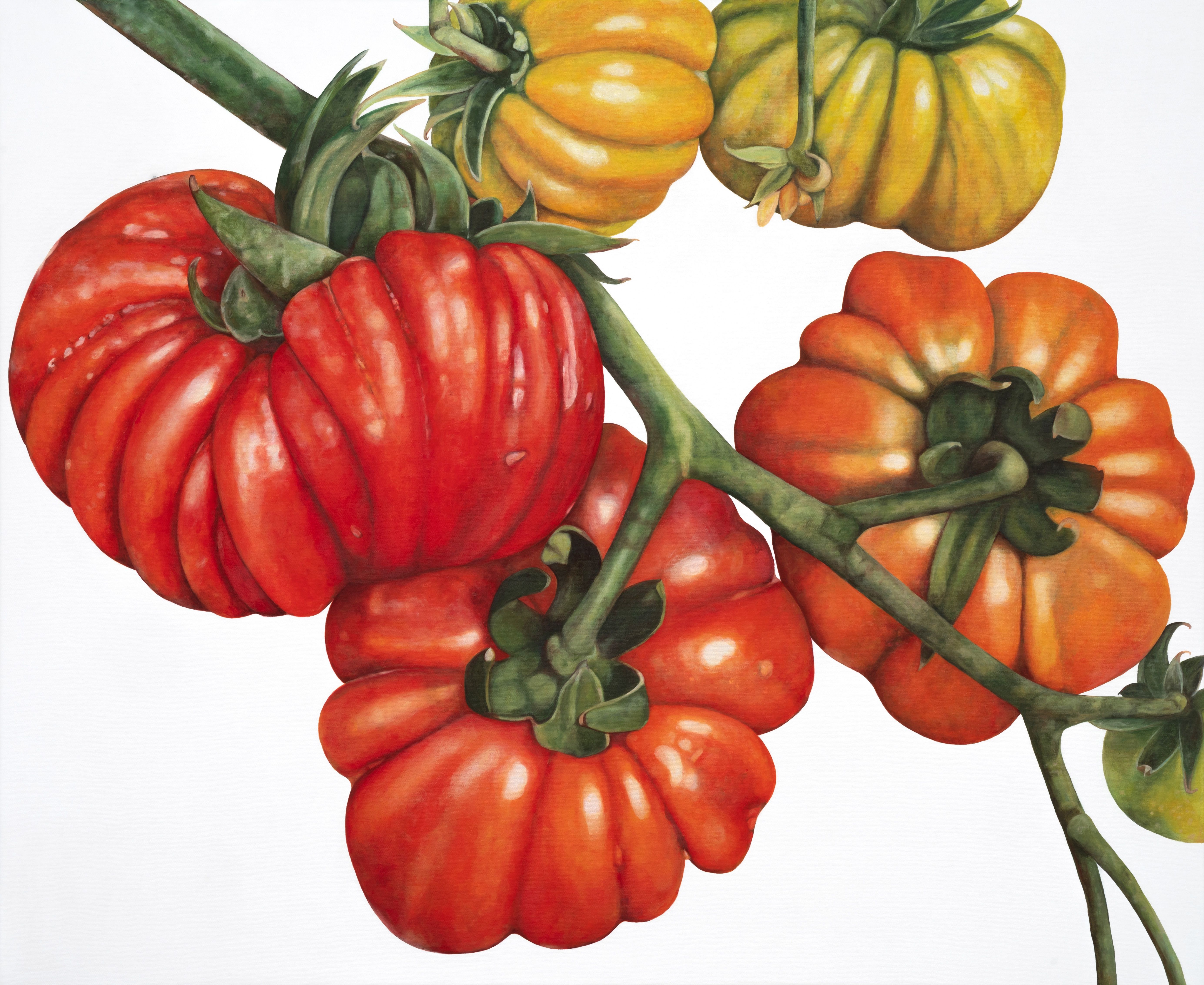 Παράλληλα, στο χώρο BLUE2, το ΦΟΥΓΑΡΟ θα παρουσιάσει για πρώτη φορά έργα της Γερμανίδας εικαστικού Brigitte Hofherr, που έχει μακρόχρονη σχέση με την Ελλάδα. Η έκθεση, με τίτλο “Endangered Portraits”, παρουσιάζει μια σειρά έργων αφιερωμένη στη ντομάτα. Είναι ένας φόρος τιμής στον καρπό που συνδέεται με την ιστορία της Αργολίδας, αλλά και του ίδιου του FOUGARO ARTCENTER, δεδομένου ότι άλλοτε, εντός των εγκαταστάσεων του, λειτουργούσε το εργοστάσιο κονσερβοποιίας ντομάτας «ΑΝΘΟΣ».