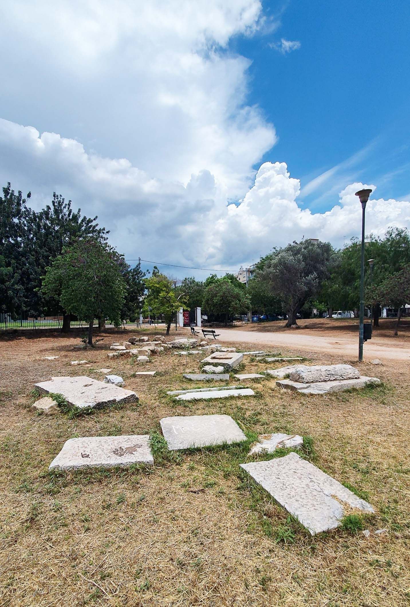 αρχαία και πολυκατοικίες, σε πάρκο