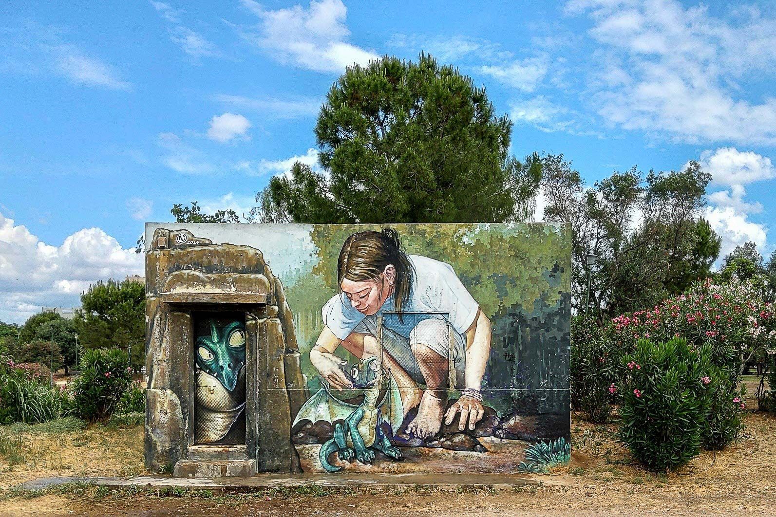 Δήμου έγινε καμβάς: το κορίτσι που χαϊδεύει το δρακάκι και