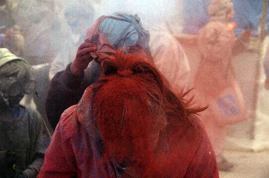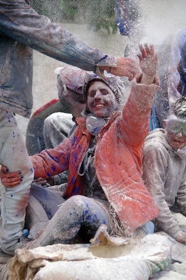 Ολόκληρα τσουβάλια φούµο ρίχνει ο ένας στον άλλον. Ένα τεράστιο λευκό σύννεφο αλευριού καλύπτει τα πάντα. Εκεί ψηλά ξεδιαλύνω τον Έρωτα, που έχει βαλθεί να στοχεύει ένα ζευγαράκι αστροναυτών καθώς αγκαλιάζονται. ∆ικαιολογηµένα, αφού ταιριάζει τόσο ο Έρωτας στην Άνοιξη. Αλητάκος αυτός, αλητάκια κι εµείς, δεν χάνουµε την ευκαιρία να απαθανατίσουµε τη στιγµή.