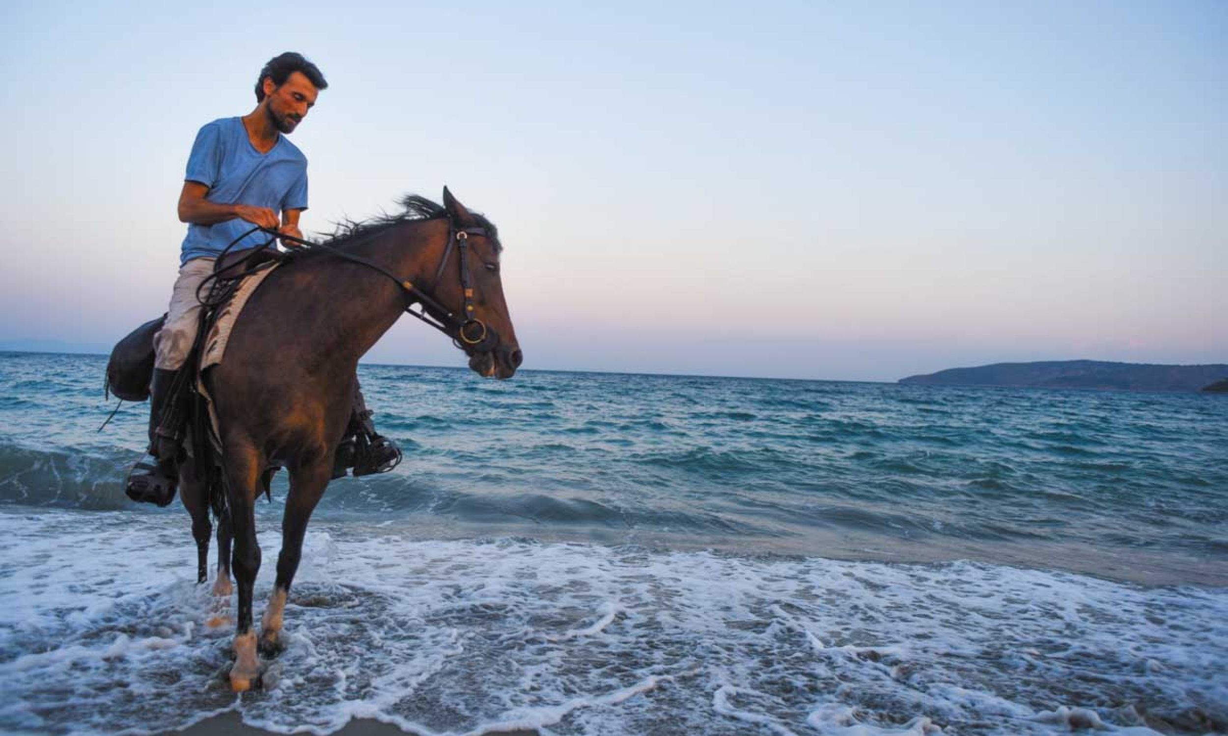 Όταν ο φίλος ∆ηµήτρης Χιλλ, ποιητής και κατασκευαστής µουσικών οργάνων, ήρθε µαζί µε τον Σαγιάλ στην παραλία στο Βαθύ Γυθείου, για να ανακάµψουν µετά από ένα σοβαρό πέσιµο που είχαν πριν από µήνες, πρωτόνιωσα την αδυσώπητη δύναµη της ηρεµίας που εκπέµπει το άλογο. Ταπεινό, χωρίς ίχνος έπαρσης, σοφό, µε κοιτά και χάνοµαι µέσα στο αβυσσαλέο βλέµµα της πραότητάς του. Ο ∆ηµήτρης ξαναΐππευσε τον Σαγιάλ, πάνω στον αφρισµένο γιαλό, µπροστά στα χρώµατα της ανατολής και της δύσης. Τον ακολούθησα στην Ανδραβίδα, όπου κάθε χρόνο, το πλησιέστερο Σαββατοκύριακο στη γιορτή της αγίας Σοφίας γίνεται ιππική έκθεση. Γνωρίζω σιγά σιγά το σινάφι και τους λάτρεις των αλόγων, που έρχονται απ’ όλη την Ελλάδα για να µοιραστούνε το πάθος, τις γνώσεις τους, τις εµπειρίες και να αναπτύξουν φιλίες. Στο παζάρι, ξοδεύουν τις οικονοµίες τους για αξεσουάρ που κάνουν την ανάβαση πιο ευχάριστη στο άτι, µπότες χάρη στις οποίες µε ένα χάδι πάνω στα καπούλια τους συνεννοούνται, καβαλάρης και άτι.
