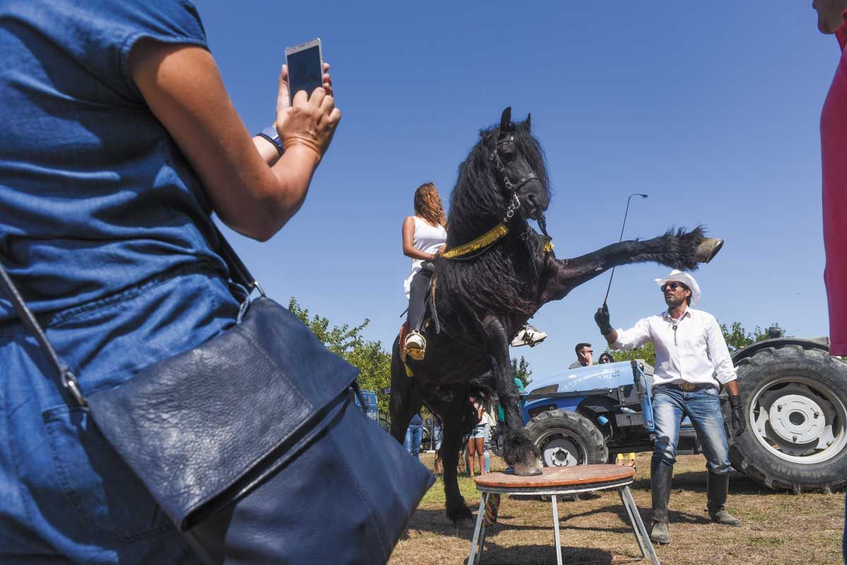 Το χωριό µεταµορφώνεται ολόκληρο σε µια εµποροπανήγυρη. Η τσίκνα από τις γουρνοπούλες και τα βραστά σκεπάζει τα σοκάκια. Τις νύχτες αντιλαλούν µουσικές λάτιν, κλαρίνα, µπουζούκια, τακούνια, ενώ την Κυριακή η φιλαρµονική αντηχεί στην πλατεία. Το µεσηµέρι, κάτω από τις τεράστιες µουριές, µέλη των τοπικών ιππικών οµίλων «Σπάρτακος» και «Κένταυρος» κάνουν κεράσµατα στους επισκέπτες. Η Ανδραβίδα κρατά καλά το έθιµο της φιλοξενίας, που στηρίζεται τόσο από τον δήµο όσο και από την περιφέρεια. Η πρόεδρος των «Κενταύρων» Αλεξία Αλτούνη είναι η αµαζόνα της Ανδραβίδας. «Κάποτε κοιµόµασταν όλοι και τρώγαµε µαζί στη φύση, στρωµατσάδα, κοντά στα ζωντανά µας», µου λέει η Αλεξία, γέννηµα-θρέµµα του τόπου. «Ως το µεγαλύτερο παιδί, συνόδευα τον πατέρα στην εργασία. Πηγαίναµε κοπριά σε έναν στάβλο. “Ας ανταλλάξουµε κοπριά µε άλογο”, του έλεγα». «Αν δεν µου πάρεις, τότε θα το πάρω µόνη µου όταν µπορέσω», του είπε την τρίτη και τελευταία φορά – και αυτό έκανε. Στα 27 της κατάφερε να αγοράσει την Μπέτυ, ένα εγγλέζικο άτι, µε την υποστήριξη της αδερφής της. Έµαθε µόνη της, οληµερίς και ολοβραδίς πάνω στο άλογο, και κάτω, αφού δεν γλίτωνε τα πεσίµατα. Η Αλεξία µιλά µε σθένος, λαµπερή πάνω στην Αµάντα, ένα 15χρονο άλογο φυλής Ανδραβίδας, το µεγαλύτερο σε σωµατότυπο ελληνικό άλογο. «Το άλογο είναι καψούρα σοβαρή, να το ξέρεις», µου λέει. Ξέρει προσωπικά όλα τα άτια και τους καβαλάρηδες που έρχονται στην πόλη. Την καλούν στην Ελλάδα για να παρουσιάσει εκθέσεις. Έχει αστείρευτο ενθουσιασµό, που τον µεταδίδει αµέσως. Όραµά της είναι το Μουσείο Αµαζόνων. «Για περίπου πενήντα χρόνια, η Ευµορφία έκανε µια βδοµάδα δρόµο από το χωριό Καλέντζι φέρνοντας µε τα πόδια έξι “βαρβάτα” (αρσενικά άλογα που είναι πολύ δύσκολο να τα πας µαζί). Τα είχε εκπαιδεύσει να την ακούνε. Κι όταν κουραζόταν, ανέβαινε σε ένα και συνέχιζε. Πέθανε πριν από τρία χρόνια», µου λέει η Αλεξία. «Να µη δώσουµε ένα φόρο τιµής σε αυτήν τη γυναίκα, καθώς και στις γυναίκες που αγωνίζονται για τα άλογα, στις αµαζόνες που πρώτες τα εκπαίδευσαν να γίνουν πολεµιστές, σε αλλοτινές, γυναικοκρατούµενες κοινωνίες;» «Είναι δύσκολο να καβαλάς άτι όντας γυναίκα», µου εκµυστηρεύονται κάποιες καβαλάρισσες. Αποφασισµένες, µέσα στον υπέροχο δυναµισµό τους, ιππεύουν ασταµάτητα παρ’ όλες τις αντιξοότητες που συναντάνε όταν η κοινωνία είναι άνανδρη.