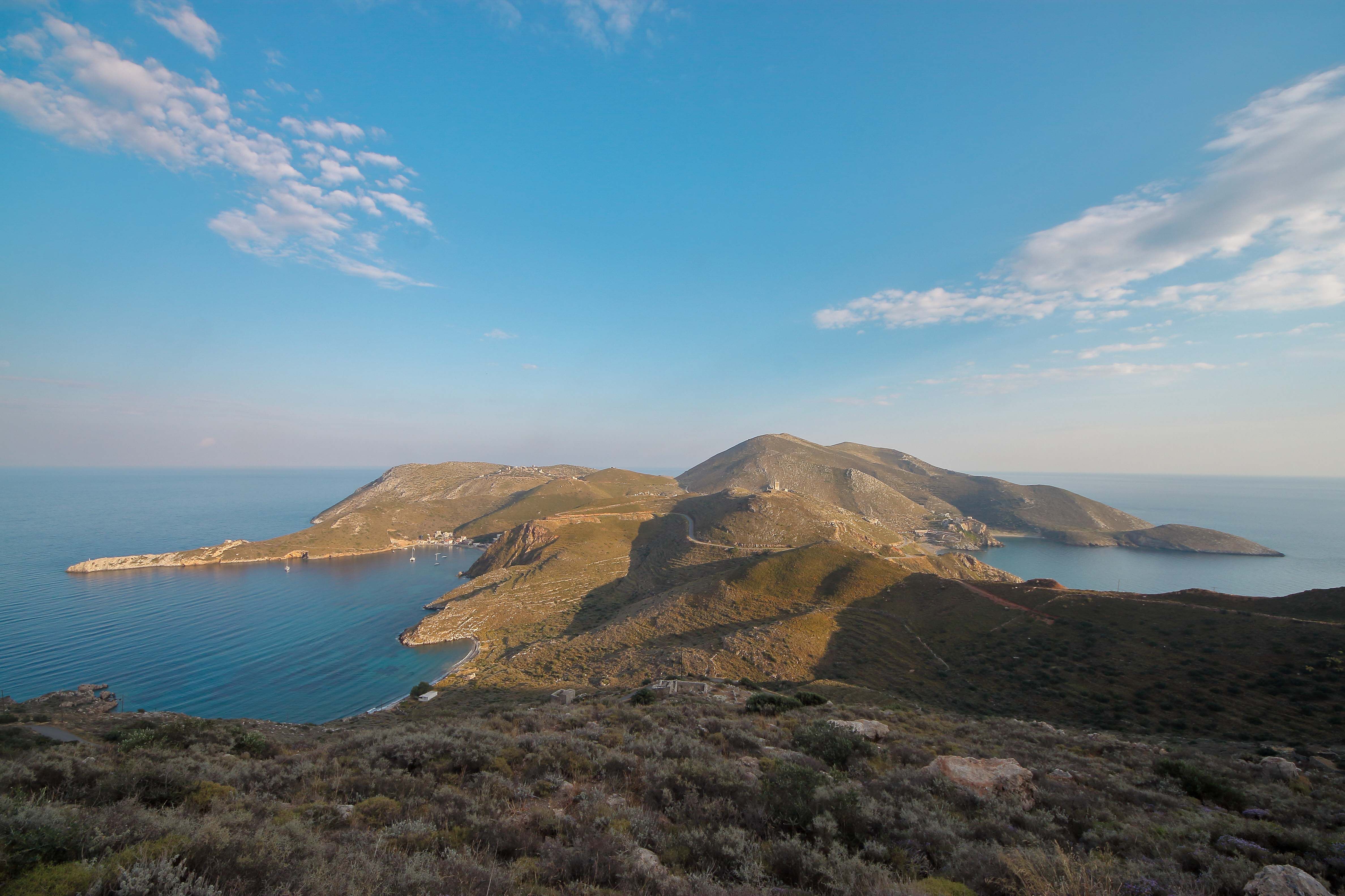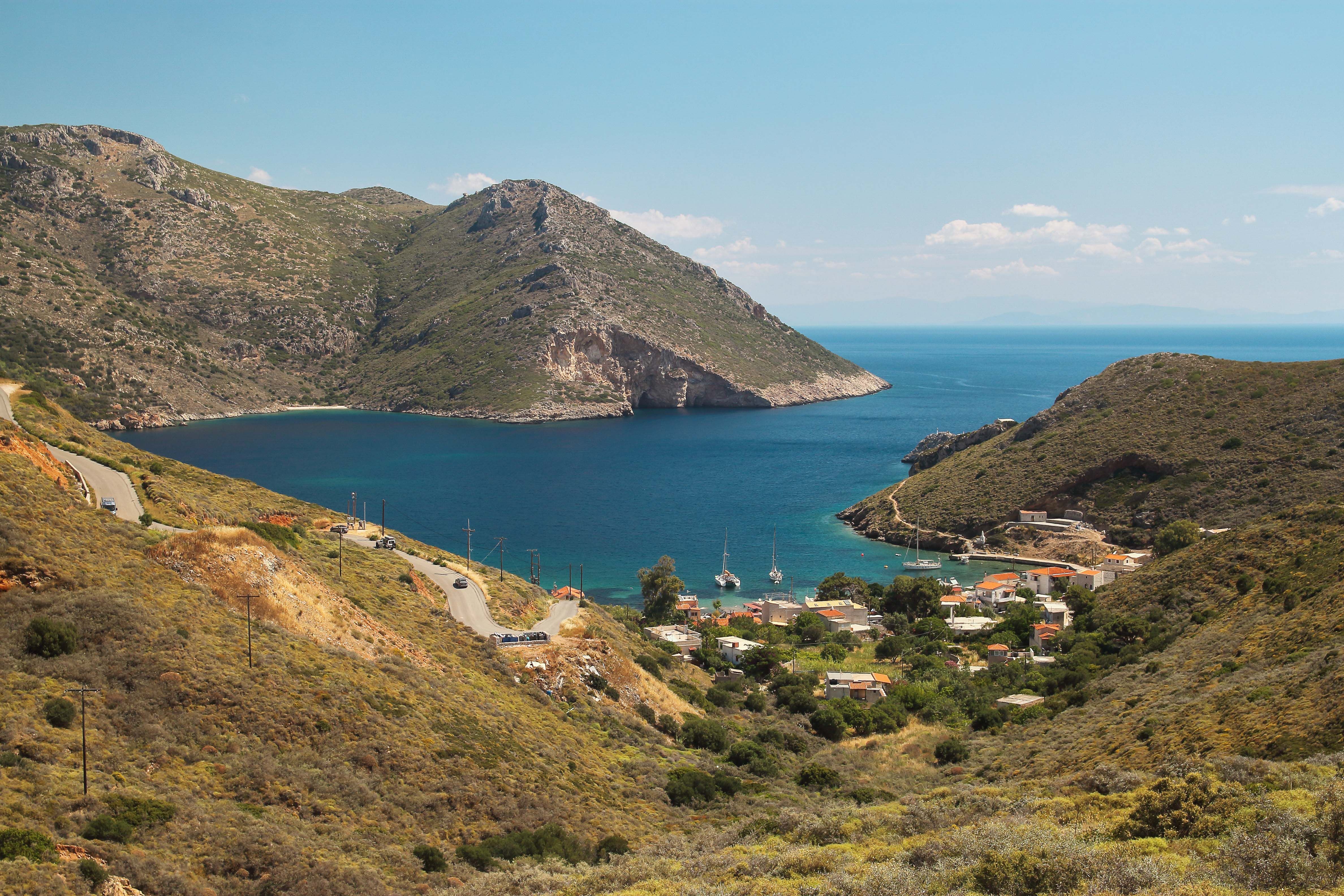Το Λιμένι από ψηλά. Ο κόλπος απλώνεται σαν ζωγραφιά,