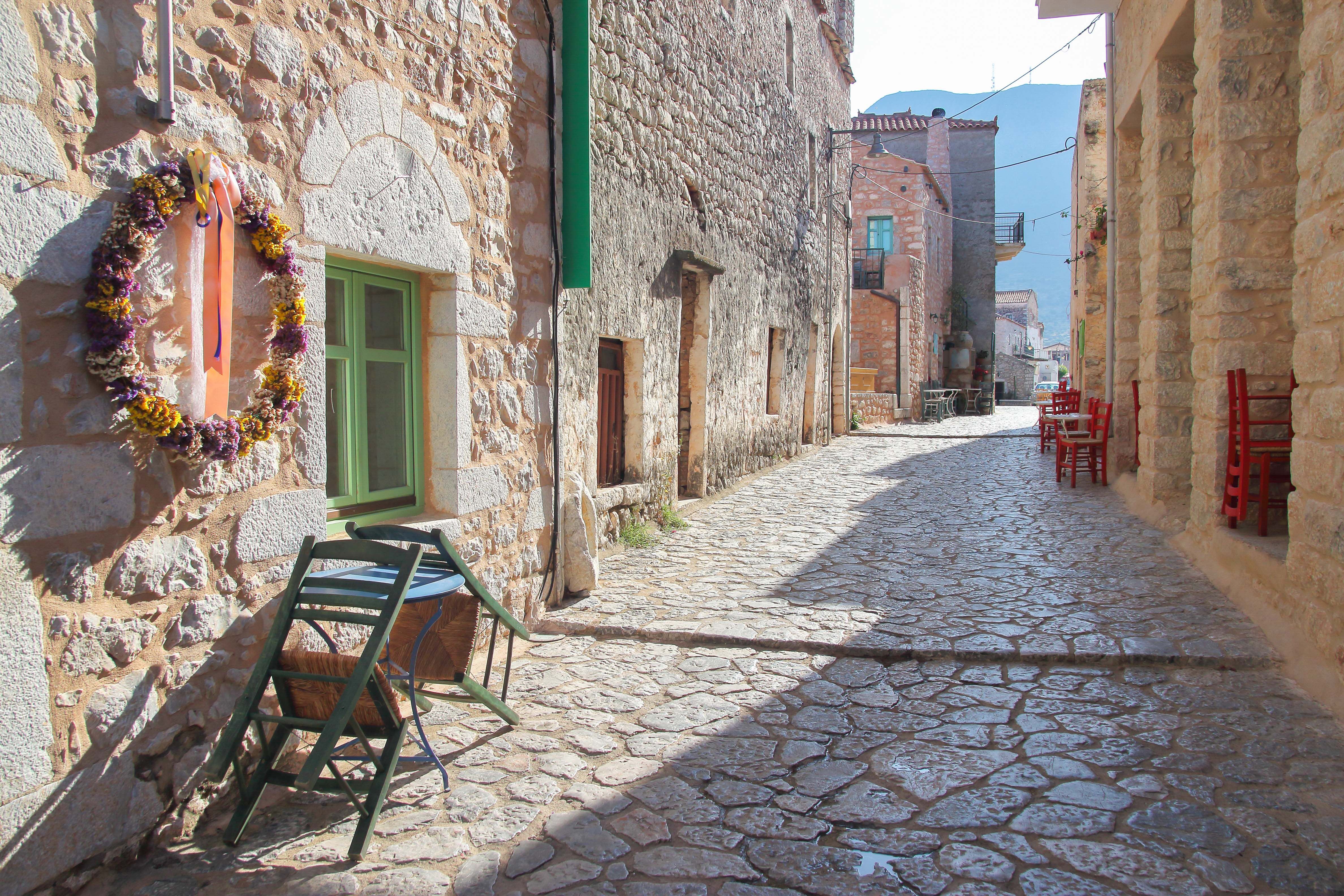 την Αρεόπολη η σκιά λιγοστεύει, οπότε δύο παγούρια