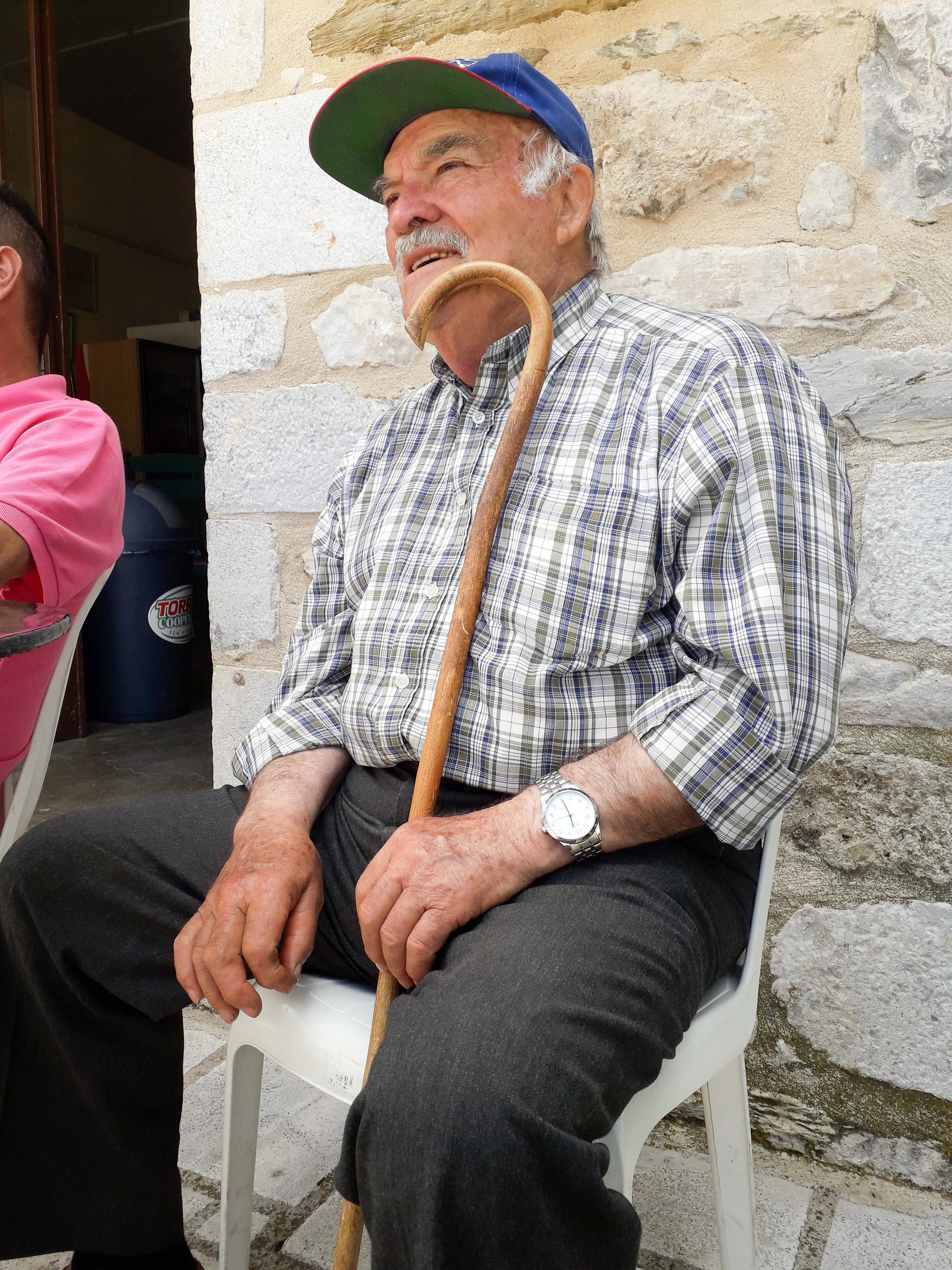 και ένας γέρος με τεράστια γκλίτσα.