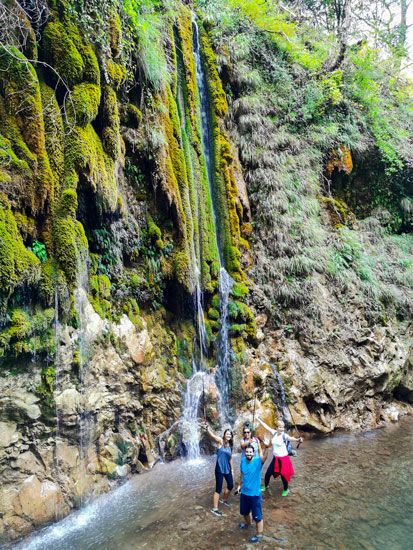 Μπαίνουμε στα τετράτροχα αγρίμια της Pindos Hawks και ξεκινάμε. Κινούμαστε δίπλα στον Αγραφιώτη ποταμό. Πολύβουος και ορμητικός. Ανεβαίνουμε όλο και ψηλότερα, περνώντας από ξύλινες γέφυρες και πυκνό ελατόδασος. Φτάνουμε στα 1.650 μέτρα υψόμετρο. Γύρω μας αμέτρητες κορυφές. Απρόσιτα, απάτητα, αχαρτογράφητα. Τα Άγραφα. Νιώθουμε, ότι αν τεντώσουμε τα ακροδάχτυλά μας, θα αγγίξουμε τα πουπουλένια σύννεφα πάνω από τα κεφάλια μας. Το κρύο τσουχτερό. Ξαναμπαίνουμε γρήγορα στα αυτοκίνητα και κατηφορίζουμε προς το Ασπρόρεμα. Ένας εγκαταλελειμμένος οικισμός, που σήμερα πια δεν ζει κανείς εκεί. Κατεβαίνουμε και συναντούμε μια γιαγιά, που έχει έρθει να δει το μποστανάκι της, λίγα κολοκύθια και πιπεριές. Μοναδική της παρέα αποτελεί ένα σκιάχτρο, κρεμασμένο από ένα δέντρο, να αγναντεύει το φαράγγι, που ετοιμαζόμαστε να κατέβουμε. Οπλιζόμαστε με μπατόν πεζοπορίας από τον Παναγιώτη, ρίχνουμε στην πλάτη τα σακίδια και ξεκινάμε. Η κατάβαση είναι απότομη και πετρώδης. Πέτρα στην πέτρα, βράχο στον βράχο, άλλοτε σκαλισμένα από τον άνθρωπο κι αλλού από τη φύση. Αφήνουμε πίσω μας ερείπια της ανθρώπινης παρουσίας. Κάποτε εδώ ζούσαν 30 οικογένειες. Από το μονοπάτι που βαδίζουμε περνούσαν τα γαϊδουράκια και τροφοδοτούσαν το χωριό, όντας η μόνη τους επικοινωνία με τον υπόλοιπο κόσμο. Συνεχίζουμε την κατάβαση μαγεμένοι από τη μυρωδιά της φλαμουριάς, ενός φυλλοβόλου δέντρου, από όπου παίρνουμε το τίλιο. Προσπερνάμε προσκυνητάρια, πέτρινα ή σιδερένια, ταπεινά ενθυμήματα ανθρώπων αγαπημένων, προσευχές καρφωμένες στον βράχο. Με ένα τελευταίο σάλτο εισερχόμαστε στην κοίτη του ποταμού. Το νερό τρέχει με ταχύτητα και ήχο αλλά έχει αφήσει χώρο και για εμάς. Περπατάω πλάι του, μέσα στην κοίτη γραπώνοντας με το ένα χέρι το μπατόν και με το άλλο τεράστιους βράχους. Πότε πότε χρειάζεται να φτιάξουμε μια ανθρώπινη αλυσίδα χεριών, ώστε να περάσουμε στην άλλη μεριά και να συνεχίσουμε πάνω στο ίχνος του μονοπατιού. Τεράστια πλατάνια και πουρνάρια μας συντροφεύουν, βάζοντας και πράσινο χρώμα στην πολύχρωμη παλέτα της φύσης. Σε μερικά σημεία, που η ροή του ποταμού κατεβαίνει απότομα, το νερό μαζεύεται ανάμεσα σε βράχους, αφρισμένο και θορυβώδες, σαν να θύμωσε με την παρουσία μας. Τόσο που δεν μπορώ να ακούσω τον διπλανό μου. Πότε κάτω από τον ζεστό ήλιο και πότε κάτω από τη σκιά του βουνού, συνεχίζουμε την πορεία μας, μιμούμενοι τους ανθρώπους, που για δεκαετίες έκαναν το ίδιο δρομολόγιο. Ξαφνικά, η κοίτη στενεύει και ο χώρος που μένει για εμάς είναι απειροελάχιστος. Δίπλα μας ορθώνονται αγριωποί γκρεμοί. Είναι ξεκάθαρο πως είμαστε μέσα στο φαράγγι και πρέπει να γίνουμε αμφίβιοι.