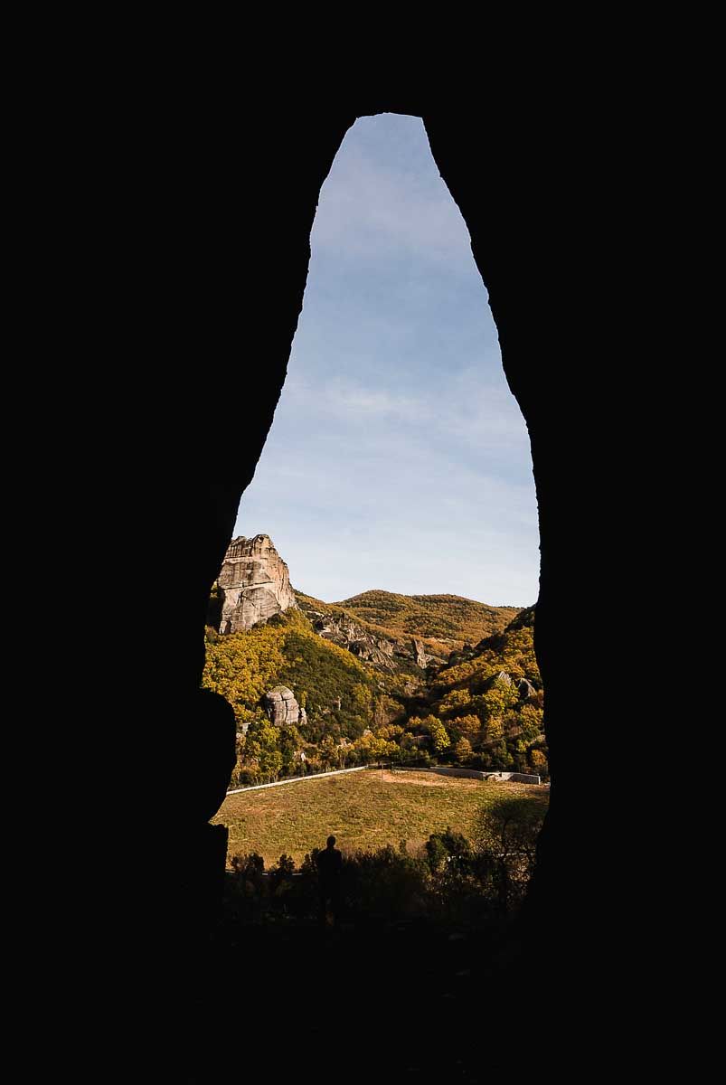 Πρωί, κι έχουμε ανέβει στο Καστράκι, τον όμορφο παραδοσιακό οικισμό της Καλαμπάκας με τα γραφικά σπίτια και τα ονομαστά φαγάδικα, στη σκιά των γκρίζων γιγάντων. Από την πλατεία του θα ξεκινήσουμε την πορεία μας για τον βράχο του Αγίου Πνεύματος, εδώ που τον 10ο αιώνα ασκήτεψε ο Βαρνάβας, πρώτος ερημίτης των Μετεώρων. Η ιστορία ξεκινά πολύ πιο πριν, όταν ήδη από τον 3ο αιώνα, οι πρώτοι ερημίτες και ασκητές χτίζουν τις καλύβες τους μέσα στις σπηλιές των βράχων, που μέχρι τότε χρησίμευαν ως κρησφύγετα των κατοίκων από τους διάφορους επιδρομείς. Αυτές ήταν οι λεγόμενες «Kαλίες», οι οποίες προμήνυσαν τις πρώτες μοναστικές κοινότητες, που μέχρι την εποχή του Ιουστινιανού απαρτίζονταν από λαϊκούς. Με τον καιρό τα κοινόβια μετονομάστηκαν σε «Mονές», και κατά τον 7ο και 8ο αιώνα, εποχή των εικονομαχιών, πολλοί βρίσκουν εντός τους καταφύγιο. Τότε είναι που η πόλη του Αιγινίου αποκτά νέο όνομα: Σταγοί, πιθανότατα από παραφθορά του ονόματος «στ’(ους) αγίους». Oι κατακτητές πολλοί –Ρωμαίοι, Γότθοι, Βούλγαροι και Σλάβοι, Φράγκοι, Καταλανοί, Όθωμανοί–, επιδίωκαν ωστόσο την ειρήνη, οπότε και φρόντιζαν να έχουν καλές σχέσεις με τους κατοίκους παρέχοντάς τους τα απαραίτητα προνόμια. Όλα αυτά θα μου τα πει ο Κώστας περπατώντας, καθώς αφήνουμε πίσω μας τα τελευταία σπίτια και χωνόμαστε όλο και πιο βαθιά στη γη, να ριζώσουμε θαρρείς μέσα στον βράχο. «Ψαμμιτικό κροκαλοπαγές, καθισμένο σε στρώματα στο βυθό της Τηθύος», θα μου πει, καθώς αγγίζω και παρατηρώ από κοντά την υφή των βράχων. Απέναντί μας η Ντούπιανη με τη σπηλιά του Παντοκράτορα, όπου ο Νείλος, με τον τίτλο του «Πρώτου της Σκήτης των Σταγών» ιδρύει το 1366 την ομώνυμη, ακατοίκητη σήμερα μονή. «Ντούπια» στα σλάβικα σημαίνει κοίλωμα, οπή – όλο και κάτι άφησαν βλέπεις πίσω τους οι κατακτητές. Το ίδιο το όνομα «Καλαμπάκα» στα τούρκικα σημαίνει «καλό φρούριο» και αυτή την ονομασία πήρε η πόλη των Σταγών μετά την άλωση της Κωνσταντινούπολης. Ο ρυθμός χαλαρός, σταθερός. Μικρές και μεγάλες ιστορήσεις αφορμή για στάση την κατάλληλη στιγμή, να μην κουραστείς, να πάρεις μια ανάσα, έχει και η πεζοπορία την τεχνική της. Θα περάσουμε τα λεγόμενα «κομμάτια» ή «σπασμένα», έναν βράχο που κατακρημνίστηκε από σεισμό τη δεκαετία του 1950, κάνοντας εύκολη την πρόσβαση προς τον βράχο του Αγίου Πνεύματος, που μέχρι τότε γινόταν αποκλειστικά με αναρρίχηση. Αγαπημένη δραστηριότητα του Κώστα, σου μιλά γι’ αυτήν με πάθος. Αποτελεί, άλλωστε, μια πολύ παλιά υπόθεση για την περιοχή. Πολλές από τις σκήτες των βράχων απαιτούσαν κάποιου είδους αναρρίχηση για την προσέγγισή τους, ενώ μαρτυρίες μετέπειτα μοναχών αλλά και ίχνη αναβάσεων σε πολύ δύσκολους βράχους –όπως αυτός εδώ που ανεβαίνουμε τώρα με ευκολία– επιβεβαιώνουν τον ισχυρισμό. Λίγο πριν το διαμορφωμένο βραχομονοπάτι, οι πελώριοι βράχοι σκύβουν από πάνω σου σαν να σε σκεπάζουν, αφήνοντας έξω απ’ τη σκιά τους ένα μόνο κομμάτι ουρανού. Ενώ παίρνουμε το ανηφορικό μονοπατάκι για τη σκήτη, ο Κώστας ονοματίζει τους απέναντι βράχους… Η σκήτη όπου είναι χτισμένο το εκκλησάκι του Αγίου Πνεύματος ήταν επίσης ένας φυσικά διαμορφωμένος βράχος, που λαξεύτηκε από βοσκούς με καλέμι και ξίδι ως διαβρωτικό, ώστε αρχικά να χρησιμοποιείται ως μαντρί. Η επιλογή της θέσης δεν ήταν τυχαία, αφού εδώ, μέσα από μια φυσική νεροφαγή, κυλούσε πολύτιμο νερό και ακριβώς από κάτω της λαξεύτηκε μια στέρνα 