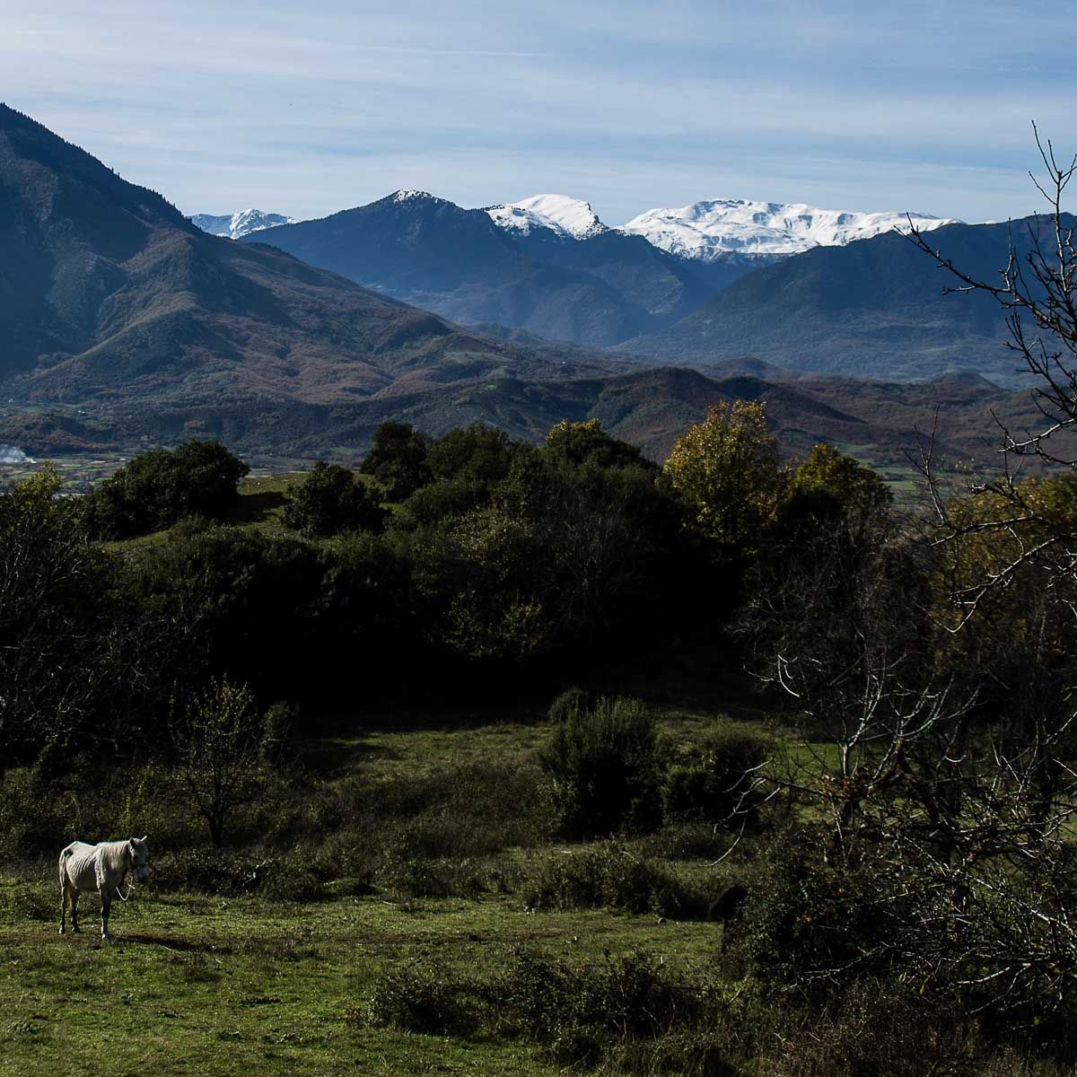 Ο Κώστας με προτρέπει να πάρω ένα ακόμη μονοπάτι. Έχω χρόνο κι είναι μόνο μισή ωρίτσα ανάβαση. Από την ΚόκαΡόκα, την πλατεία της πάνω πόλης της Καλαμπάκας, ξεκινά η διαδρομή για τη μονή της Αγίας Τριάδας, που ανάμεσα σ’ άλλα ξεχωρίζει για την εντυπωσιακή της είσοδο – ένα πέτρινο τούνελ λαξευμένο στο βράχο. Ήταν μία από τις πιο δυσπρόσιτες μονές κι είναι στ’ αλήθεια γλαφυρές οι αφηγήσεις των περιηγητών για την ανάβαση μοναχά με λαξευτά και ξύλινα κλιμάκια! Ένα φιδίσιο μονοπάτι διασχίζει ολόκληρο το φαράγγι, που ’χει μήκος 1.100 μέτρα και βάθος 110, και περπατιέται με σχετική ευκολία… Πάνω από τις φυλλωσιές των δέντρων, η θέα του θεόρατου Άλτσου ή Άλυσσου, με την απρόσιτη για χρόνια κορυφή του, γεμάτη μύθους, θρύλους και… λάφυρα, και στο βάθος οι χιονισμένες οι κορυφογραμμές του Κόζιακα. Θα τα βρω λίγο πιο δύσκολα απ’ όσο φανταζόμουν, μόνος είναι αλλιώς, θέλει κουράγια η ανηφοριά. Μια πέτρα είναι εκεί να ξαποστάσεις, στο βάθος ακούς φωνές, σε λίγο δεν θα ’σαι μόνος πια. Είναι η Βασιλική και ο Γιώργος, φοιτητές ξυλογλυπτικής στη μοναδική σχολή ξυλογλυπτικής στην Ελλάδας, που ίσως να μην μπορούσε να είναι κάπου αλλού. Θέλει μεράκι, υπομονή, πειθαρχία, λεπτότητα και κόπο αυτή η τέχνη και το τοπίο τούτο της ταιριάζει απόλυτα. Θα ανέβουμε μαζί ως τη μονή και μαζί θα συνεχίσουμε... Μοιάζει να μοιράζεται η κούραση, όταν περπατάμε μαζί... Νιώθει πολύ τυχερή η Βασιλική, που της έτυχε να ζήσει σ’ αυτό εδώ το μέρος. Η ενέργειά του τη μαγεύει και την αναστατώνει. Κι ενώ οι παλιοί δεν τα πάνε και τόσο καλά με τις πεζοπορίες –δεν γνωρίζουν τον τόπο τους–, τα νέα παιδιά έχουν ξεκινήσει πάλι και περπατάνε. Όμορφα νέα, όμορφα παιδιά! Σε δέκα μόλις λεπτά μπορούμε να περπατήσουμε μέχρι τον Άγιο Στέφανο, να ξεκινήσουμε το αγνάντεμα της δύσης από κει. Κι ύστερα να επιστρέψουμε πίσω από τον κεντρικό δρόμο, να βρούμε κι άλλα μονοπάτια για αύριο.