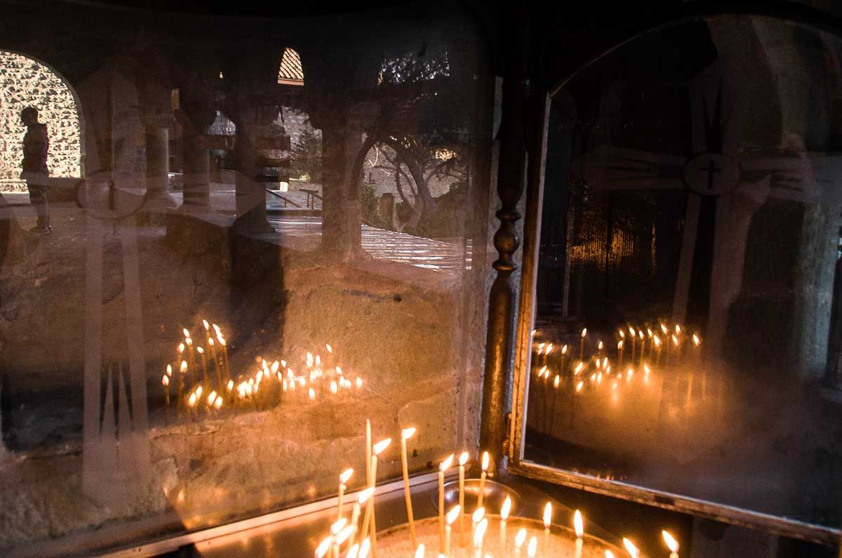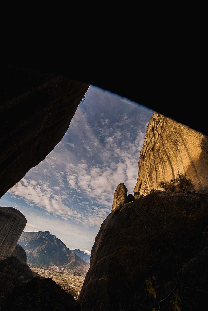 Η μέρα, βλέπεις, στα Μετέωρα φαντάζει μεγάλη κι είναι στ΄ αλήθεια αναρίθμητα τα μονοπάτια που μπορεί να πάρει κανείς για να βαδίσει, να σκαρφαλώσει, να αναρριχηθεί, να νιώσει ένα με τον βράχο. Δυστυχώς, τα πιο πολλά άγνωστα, δίχως σήμανση, αφού ακόμα κι αυτές οι δραστηριότητες μοιάζουν μάλλον μη επιθυμητές στις μοναστικές κοινότητες. Παρά το γεγονός μάλιστα ότι η αναρρίχηση απαγορεύεται αυστηρά στους βράχους που κατοικούν οι μονές και οι αναρριχητές σέβονται αυτόν τον περιορισμό. Αιτία για όλα αυτά η «ιερότητα του χώρου», ενώ προσπαθώ να σκεφτώ κάτι ιερότερο από αυτό που δεν είναι άλλο από την ίδια τη φύση (μας), ενός είδους μετουσίωση, μια θεία κοινωνία. Από εδώ πάντως μπορείς να προσεγγίσεις τη Δρακοσπηλιά και τη Μονή Βαρλαάμ και να συνεχίσεις μέχρι το Μεγάλο Μετέωρο. Εμείς θα τραβήξουμε άλλη πορεία ώστε να κυκλώσουμε ολόκληρο τον βράχο του Αγίου Πνεύματος, που στα δυτικά του φωλιάζει η σπηλιά του Αγίου Γεωργίου του Μαντηλά. Πολύχρωμα μαντίλια ανεμίζουν στη σπηλιά, και αιτία το μαντίλι κάποιου φερετζέ, που μια Τουρκάλα κάποτε έταξε στον άγιο για να κάνει καλά τον άντρα της. Ανήμερα του αγίου, οι ντόπιοι, μέσω μιας απαιτητικής αναρρίχησης, ανεβαίνουν στη σπηλιά για να αλλάξουν τα παλιά μαντίλια, προσφέροντάς νέα ως τάματα για καλή υγεία. Έχουμε ολοκληρώσει έναν περίπατο τριών περίπου ωρών στα ύψη και τα βάθη των Μετεώρων. Κι ήταν τόσες οι εικόνες, οι εναλλαγές του τοπίου, τόσες οι σκέψεις, τα αισθήματα κι οι ιστορήσεις, που ούτε κατάλαβα πώς πέρασε η ώρα…