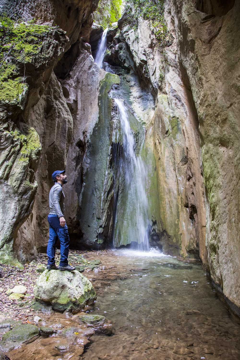 Αφήνοντας πίσω μας το Άστρος, πήραμε τον δρόμο για τη γραφική Καστάνιτσα. Ο παραδοσιακός κατάλευκος οικισμός απλώνεται αρμονικά στην πλαγιά του βουνού, και σε προδιαθέτει θετικά για τη συνέχεια. Στη διακλάδωση του δρόμου Καστάνιτσας - Πραστού κάναμε την πρώτη μας στάση. Εδώ ήταν το ραντεβού μας με τον Γιώργο Μονιό και τον Δημήτρη Κουρόγιωργα από την Explore Peloponnese, για να πεζοπορήσουμε παρέα ένα κομμάτι του Πάρνωνα που ξεκινά από το φαράγγι της Μαζιάς και φτάνει μέχρι τον καταρράκτη Λούλουγκα. Η διαδρομή δεν είναι ιδιαίτερης δυσκολίας, καθώς όμως το μονοπάτι δεν είναι παντού ευδιάκριτο, κρίνεται απαραίτητη η συνοδεία έμπειρου οδηγού. Τα μονοπάτια στον Πάρνωνα ξεπερνούν σε μήκος τα 200 χλμ., καλύπτοντας όλη την έκταση από τη Βόρεια Κυνουρία μέχρι το νότιο τμήμα της, και τη λεγόμενη Τσακωνιά. Η διάνοιξη και η σήμανση δεν έχουν ολοκληρωθεί σε όλα τα τμήματα, γι’ αυτό αν κάποιος θέλει να τα περπατήσει καλό είναι να επικοινωνήσει με κάποιον από τους τοπικούς φορείς. Η διαδρομή για τον καταρράκτη Λούλουγκα ξεκινάει σχεδόν μέσα από το ποτάμι, πριν ανηφορίσει μέσα από βελανιδιές, πουρναριές και σχίνους για να κατηφορίσει αργότερα και πάλι. «Λόγω έλλειψης βροχοπτώσεων το ποτάμι φέτος είναι στεγνό», μας είχαν ενημερώσει προτού ξεκινήσουμε. Μετά 45 λεπτά, φτάνουμε σε ένα – επίσης στεγνό – άνοιγμα, όπου υπό διαφορετικές συνθήκες συναντιούνται τρία ποτάμια. Λίγο πριν το στένωμα που οδηγείστον καταρράκτη, το νερό κάνει αισθητή την παρουσία του. Ο έντονος ήχος από τα νερά που κατακρημνίζονται, μπερδεύεται με τις κουβέντες. Προχωρώντας βαθύτερα, βαδίζοντας προσεκτικά από πέτρα σε πέτρα, νιώθουμε την αλλαγή στη θερμοκρασία και σχεδόν ολόκληρο το σώμα μας αγκαλιάζεται από τα λεία, σμιλεμένα απ’ το νερό βράχια. Ο καταρράκτης Λούλουγκα είναι ένα εντυπωσιακό φυσικό μνημείο ύψους 30 μέτρων. Πέφτοντας από τόσο ψηλά, το νερό σχηματίζει στο έδαφος μικρή λίμνη έχοντας, με το πέρασμα του χρόνου, δημιουργήσει γύρω της μικρές σπηλιές. Τοπίο με έντονη ενέργεια,καθίσαμε για λίγο σιωπηλοί να το απολαύσουμε πριν πάρουμε τον δρόμο της εξόδου από το φαράγγι.