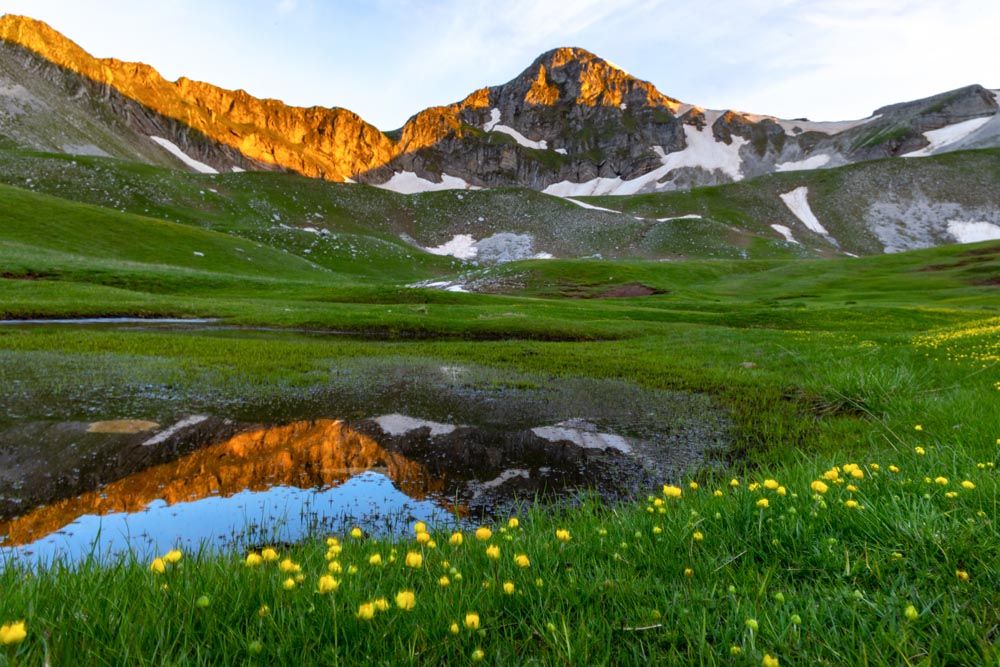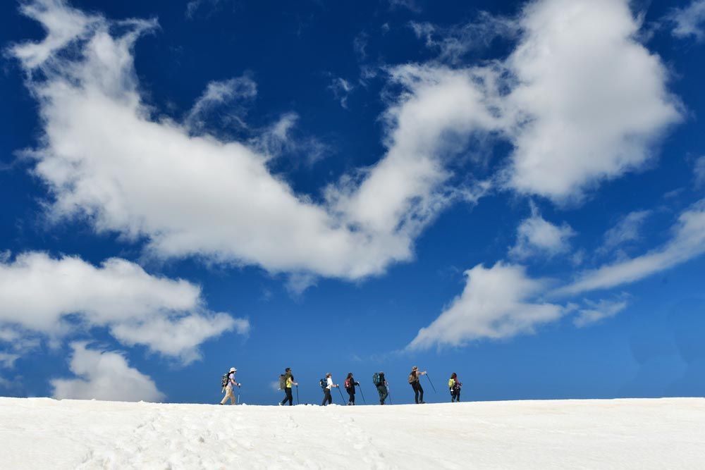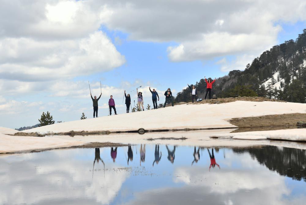 Ταξιδεύουμε μέσα στο ανοιξιάτικο χιονισμένο τοπίο κι έχουμε χάσει την αίσθηση του χρόνου και της εποχής καθώς ζούμε ταυτόχρονα το καλοκαίρι, την άνοιξη και τον χειμώνα. Τα καταπράσινα λιβάδια, πολύχρωμα, στολισμένα με ποικίλα είδη λουλουδιών, σε συνδυασμό με το χιόνι πού ολοένα και πυκνώνει όσο ανεβαίνουμε, συνθέτουν ένα φαντασμαγορικό σκηνικό. Συμπληρώνεται από νερά που τρέχουν παντού, καταρράκτες και καταρρακτάκια. Τόσο όμορφα, που ούτε που το καταλάβαμε για πότε φτάσαμε στη δρακόλιμνη παρά την επίπονη ανάβαση!