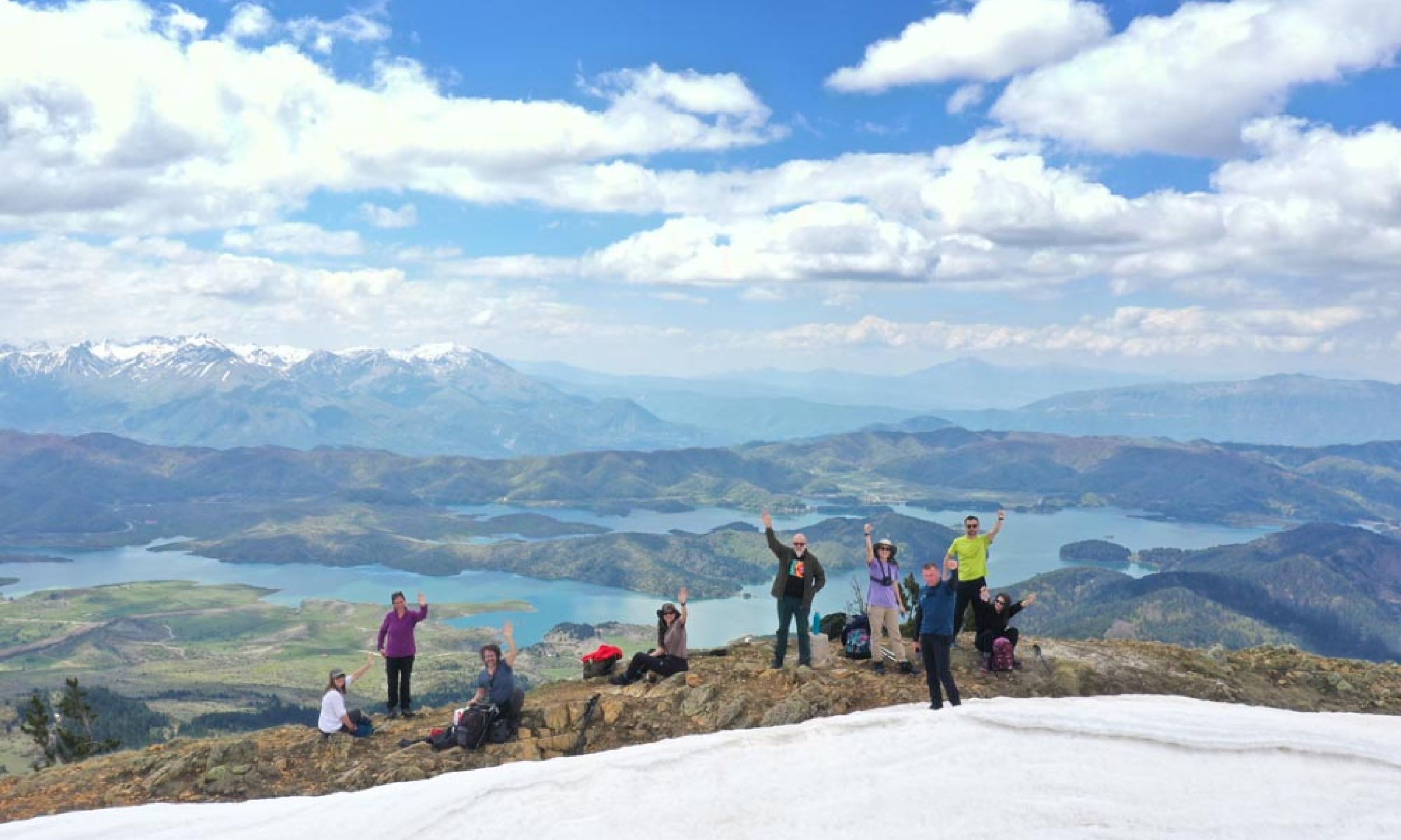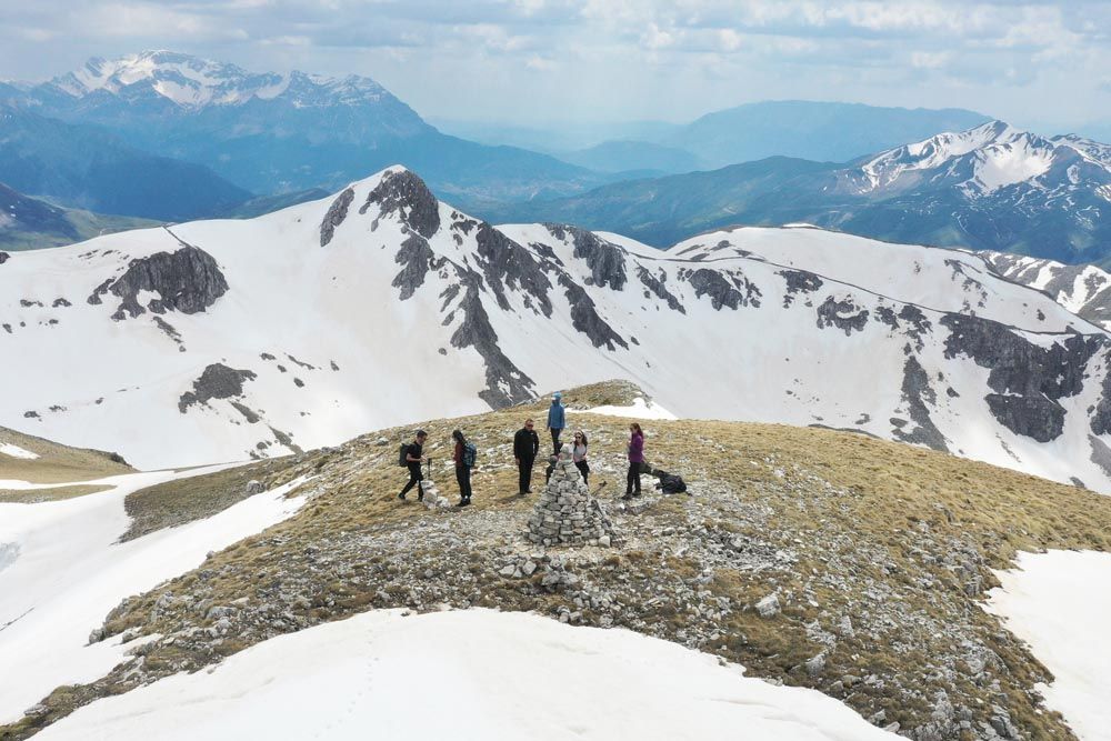 Καθόμαστε να φάμε κάτι και να χαθεί το μάτι μας στην εικόνα, να αποθηκευτεί βαθιά μέσα μας για τις δύσκολες μέρες του χειμώνα στην πόλη, να επιστρέφει στο μνημονικό μας και να μας γεμίζει αέρα βουνού. Και μετά παίρνουμε τον δρόμο για πιο ψηλά, για την κορφή. Προς τον Μέγα Τράπο η διαδρομή φαίνεται πιο βατή απ’ ότι προς την Τσουκαρέλα, το χιόνι λιγότερο. Βαδίζουμε με δυσκολία αλλά κάθε βήμα μας φέρνει ψηλότερα και η θέα είναι όλο και πιο όμορφη. Από την κορυφή πια εμφανίζεται μπροστά σου όλη η Πίνδος, τριγύρω σου παρελαύνουν όλες οι κορυφές της και η Βερλίγκα βρίσκεται στα πόδια σου! Αξέχαστη εμπειρία! Αργά το απόγευμα επιστρέφουμε στο αυτοκίνητο και πριν επιβιβαστούμε μας περιμένει τσιπουράκι με μεζεδάκι που έχει κανονίσει ο Παναγιώτης, που πάντα φροντίζει για μας, επιμηκύνοντας έτσι λίγο ακόμη την παραμονή μας στα ονειρικά υψίπεδα.