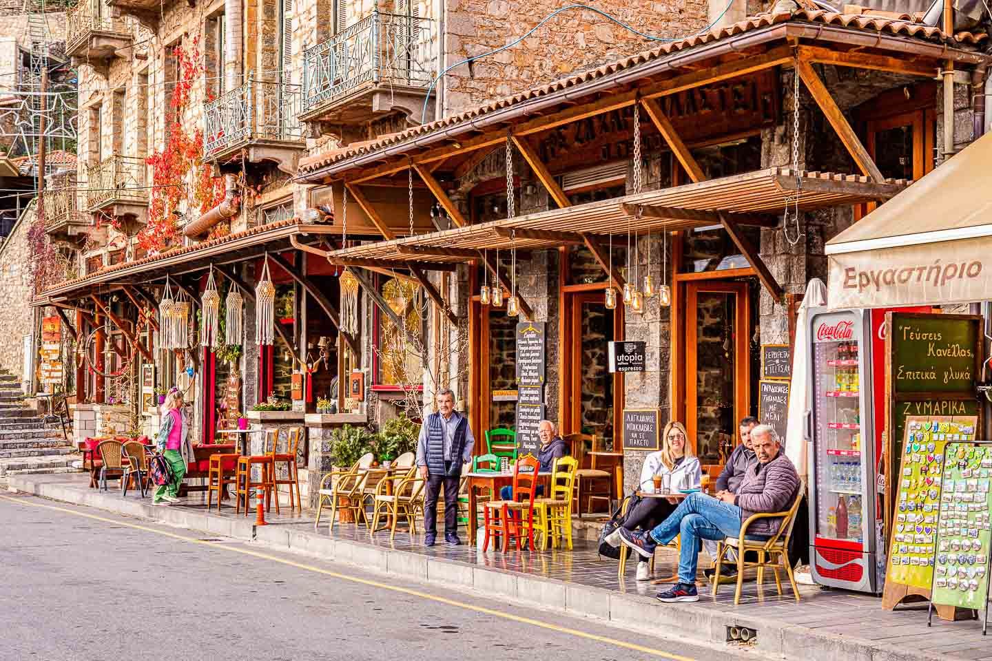 Εμείς επιλέξαμε τη συγκεκριμένη διαδρομή (πρώτο κομμάτι του Mainalon Trail που καταλήγει στο Βαλτεσινίκο) για πρώτο πρωινό περίπατο. Η διαδρομή πήγαινε-έλα μαζί με τις στάσεις, που είναι απαιτούμενες λόγω της ανηφοριάς αλλά και λόγω της απόλαυσης, είναι κάτι λιγότερο από δύο ώρες. Η – ομολογουμένως πιο εύκολη– επιστροφή στο σημείο της αφετηρίας μας, μας βρίσκει πεινασμένους και διψασμένους. Μπαίνουμε στο ατμοσφαιρικό, ζεστό και φιλόξενο καφέ-παντοπωλείο «Άρωμα», λίγο πριν την κεντρική πλατεία του χωριού. Πιάνουμε κουβέντα με τους ιδιοκτήτες αλλά και με τους άλλους θαμώνες, μιας και το μαγαζί στο εσωτερικό του είναι μικρό και ευνοεί την παρεΐστικη διάθεση, και ερχόμαστε λίγο πιο κοντά στην ανθρώπινη φύση μας, που κάπως έχουμε παραμελήσει στην πόλη.