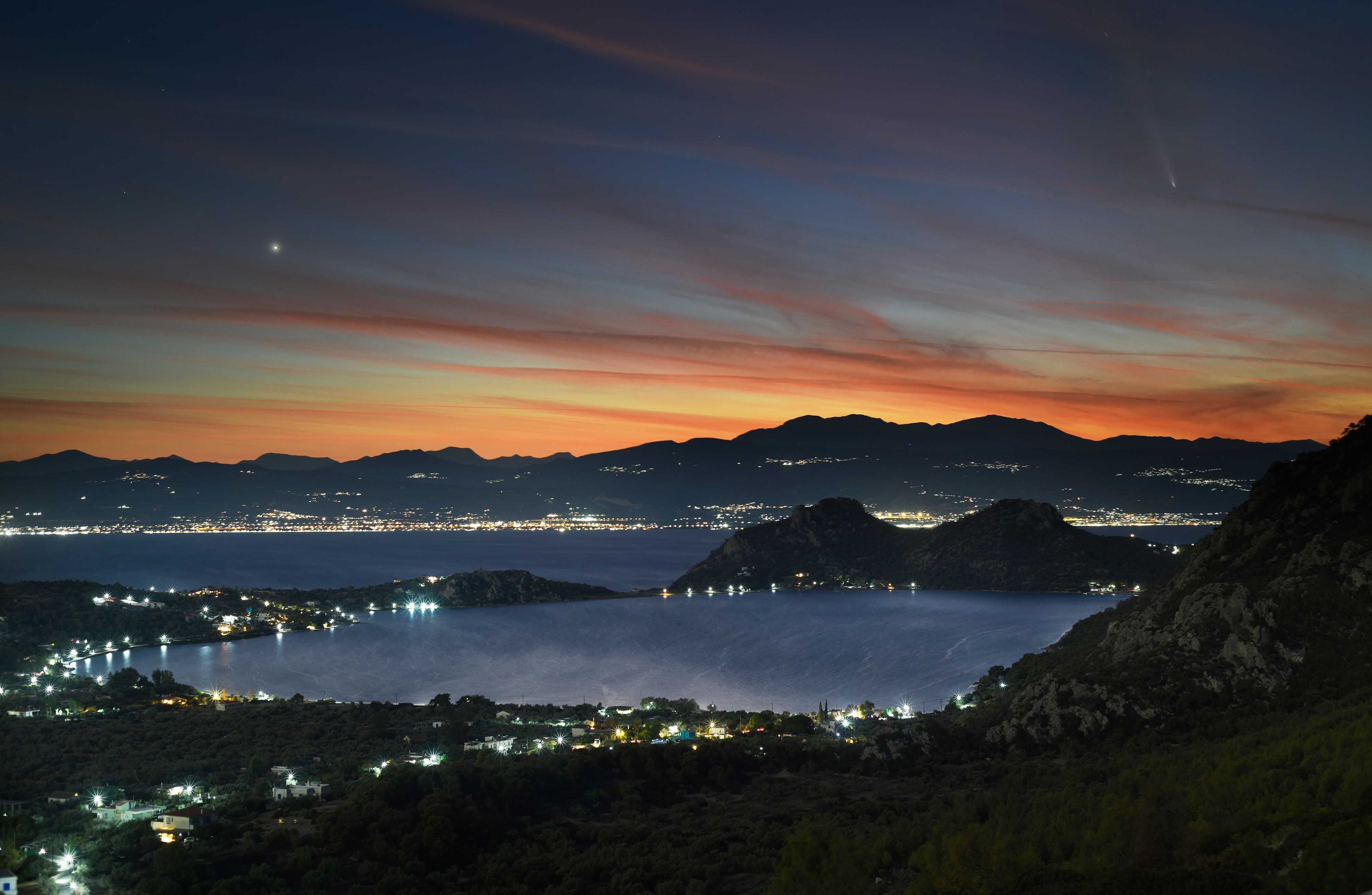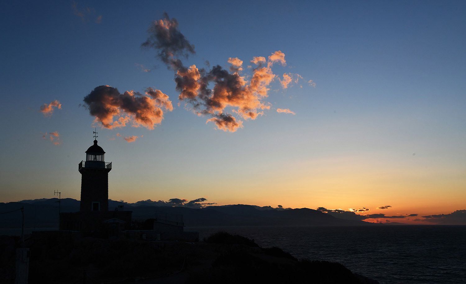 Επιστρέψαμε ανανεωμένοι πίσω στο μονοπάτι και πήραμε τον δρόμο για τον λιθόκτιστο φάρο στο Μελαγάβι. Είναι ο ομορφότερος φάρος του Κορινθιακού και βρίσκεται στην είσοδο του όρμου της Κορίνθου, χωρίζοντάς τον από τον κόλπο των Αλκυονίδων βόρεια. Κατασκευάστηκε το 1897 κι αποτελεί χαρακτηριστικό δείγμα αρχιτεκτονικής της προβιομηχανικής περιόδου. Ανήκει στο πολεμικό ναυτικό και είσοδος σ’ αυτόν είναι απαγορευμένη, η θέα όμως από το σημείο είναι απέραντη και μαγευτική, ιδιαίτερα κατά τη δύση, προσφέροντας ένα ονειρικό ηλιοβασίλεμα, πέρα από κάθε φαντασία. Από εδώ είδαμε τα γυάλινα νερά της λίμνης να βάφονται πορτοκαλί και καθώς η μέρα έσβηνε ένα-ένα τα φώτα από τις ψαρόβαρκες απέναντι στο Βραχάτι να ανάβουν, σχηματίζοντας μια ατμόσφαιρα απόλυτα ειδυλλιακή.