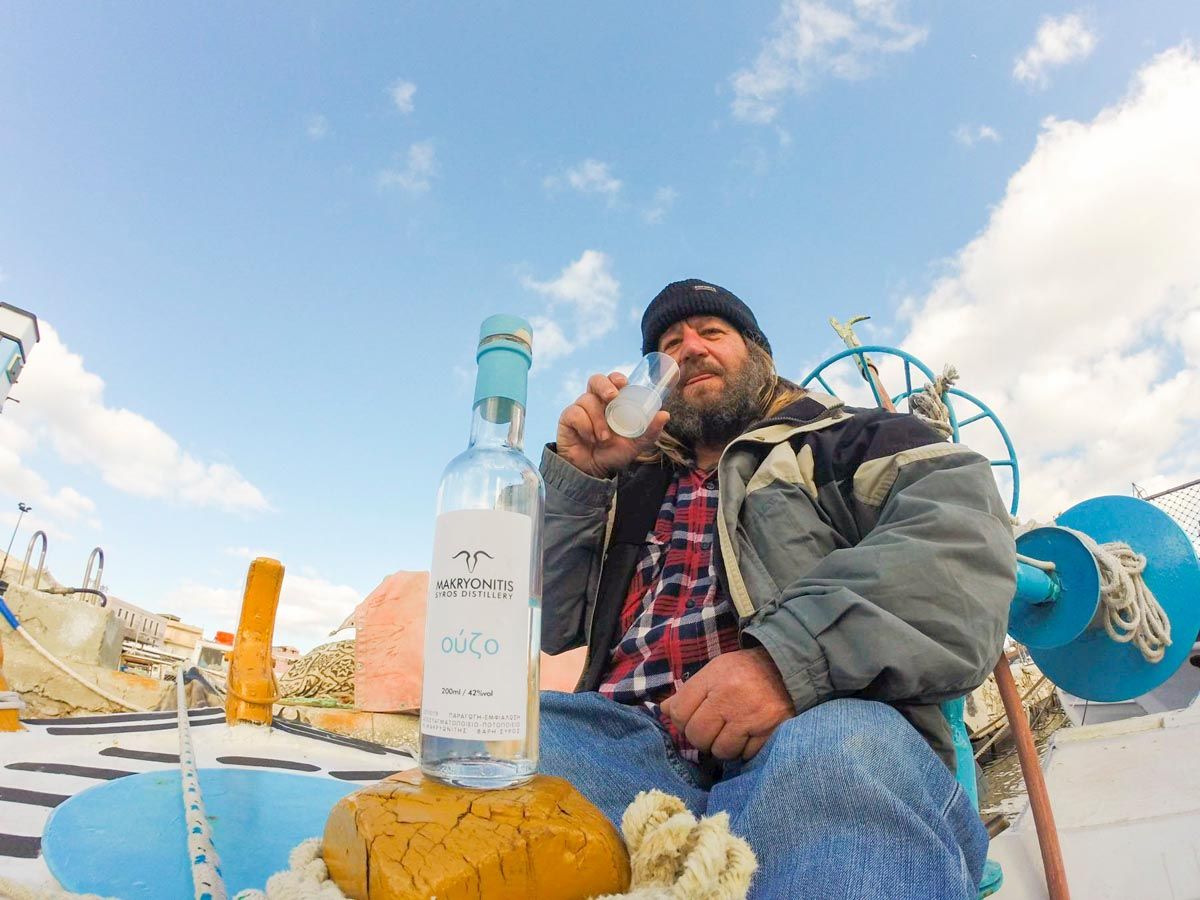 Γεμάτος από τόσο πλούσιες γεύσεις αποφάσισα να αναζητήσω τον παραγωγό ενός εξαιρετικού τοπικού ούζου που δοκιμάσαμε στα ταβερνάκια του νησιού επάνω κυριολεκτικά στη θάλασσα. Ο Νίκος Μακρυωνίτης με υποδέχθηκε στην αποσταγματοποιία του στην Βάρη της Σύρου. Χρησιμοποιώντας την εμπειρία του στους γευστικούς συνδυασμούς, από το επάγγελμα του μάγειρα ξεκίνησε από το 2012 τους πειραματισμούς του, σε επίπεδο αρχικά οικοτεχνίας, παρέα με τον πατέρα του Γιώργο, χημικό και ερασιτέχνη ποτοποιό. Η αγάπη τους για το προϊόν και η εξέλιξη της παραδοσιακής απόσταξης έφεραν ως αποτέλεσμα την λειτουργία ενός σύγχρονου αποστακτηρίου που ξεκίνησε το 2017.