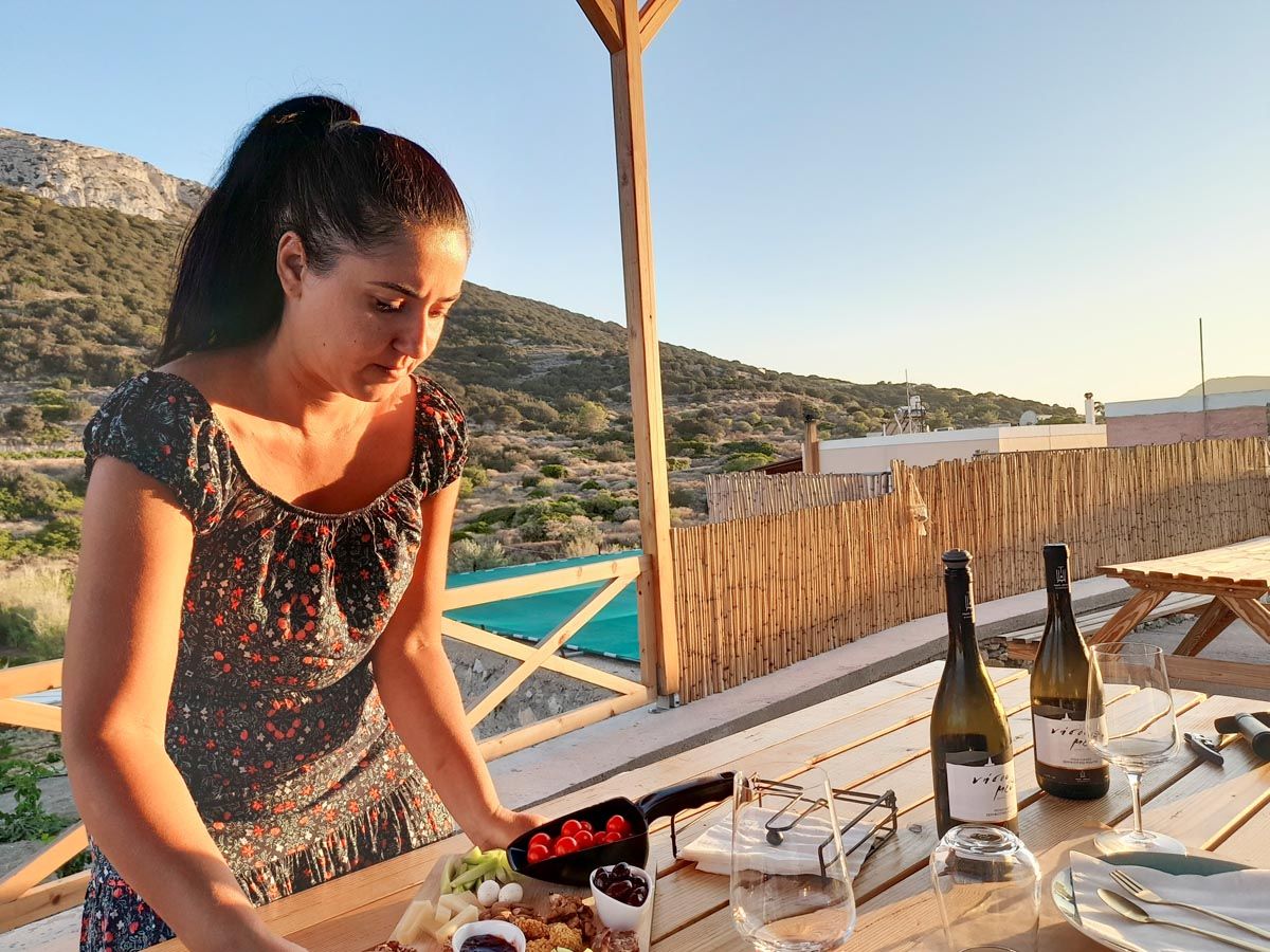 Οι συνδυασμοί του Νίκου με έκαναν να σκεφτώ για τον τρόπο που οι ντόπιοι έχουν αξιοποιήσει το κάθε είδος της φυσικής βλάστησης του νησιού. Από τις πολυάριθμές συκιές, που αξιοποιούν για την παρασκευή της παστελαριάς, τον μάραθο και τα αυτοφυή βότανα τα οποία χρησιμοποιούν στα ντόπια λουκάνικα, μέχρι τη συλλογή της κάπαρης από τα φυτά που κυριολεκτικά κρέμονται πάνω από τα βράχια. Όμως ήρθε η ώρα να δοκιμάσουμε τα κρασιά του νησιού.
