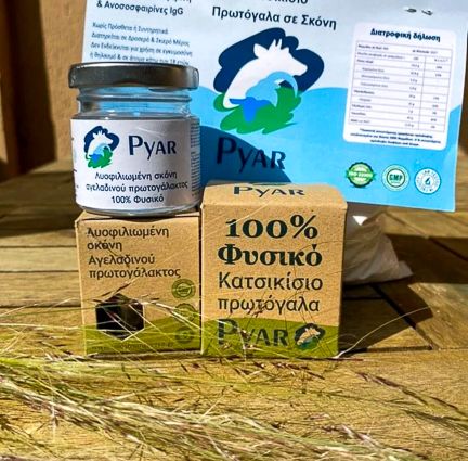 «Το Pyar - Colostrum παρασκευάζεται από 100% φυσικό πρωτόγαλα το οποίο συλλέγεται από το ζώο τις πρώτες δώδεκα ώρες μετά τον τοκετό».
