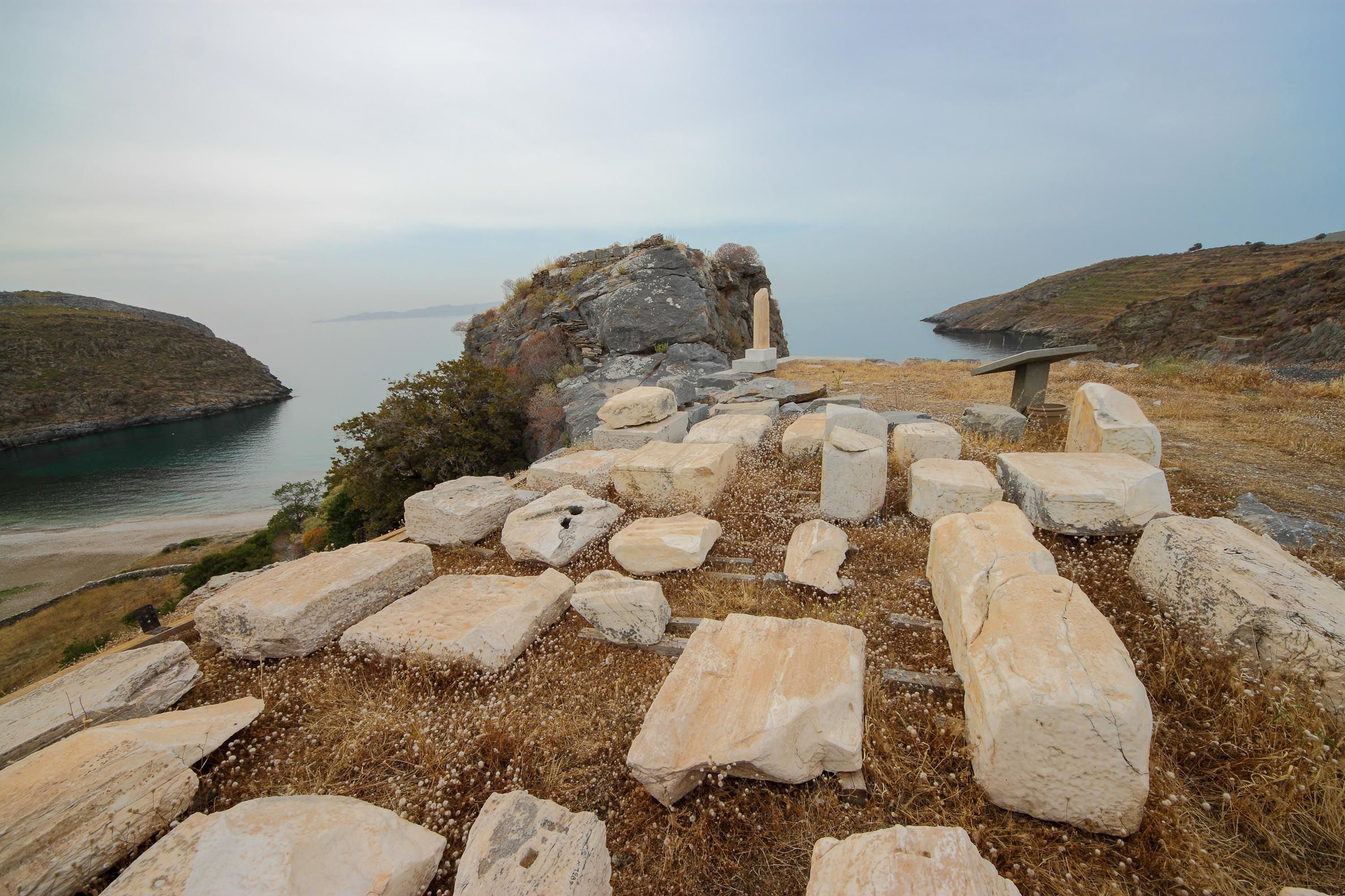 Ύστερα από μισή ώρα, το μονοπάτι με έβγαλε στον όρμο «Πόλες». Κοιτώντας αριστερά, πάνω στο ύψωμα, διέκρινα μέρος των αρχαίων τειχών της Καρθαίας. Ανέβηκα το διαμορφωμένο πλακόστρωτο που οδηγεί στην αρχαία ακρόπολη, με τους αναστηλωμένους κίονες και τα υπολείμματα των ναών του Απόλλωνα και της Αθηνάς.