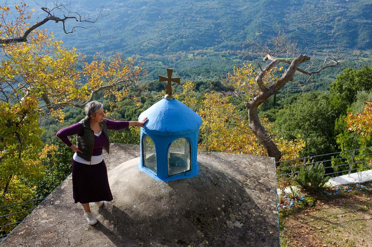 Η Γεωργία με τον Γαβριήλ είναι οι οδηγοί μας στο μονοπάτι – που φρόντισαν και άνοιξαν – το οποίο οδηγεί στο Αγιονέρι. Το Αγιονέρι είναι μια πηγή που αναβλύζει μέσα από τα βράχια και το νερό ρέει ως ένα μικρό ξωκλήσι λίγα μέτρα πιο κάτω. Τα παλιά τα χρόνια, οι χωρικοί ανέβαιναν το μονοπάτι για να μεταφέρουν το άχραντο νερό στους άρρωστους ανθρώπους, για να γειάνουν. Στο δρόμο δεν έπρεπε να μιλήσουν σε κανέναν, αλλά να παραμείνουν βουβοί μέχρι να διεκπεραιώσουν την αποστολή τους. Στα πόδια μας απλώνεται όλη η ομορφιά της ευρύτερης περιοχής της Κάτω Λάκκας Σουλίου. Ήπιαμε νερό από το αγίασμα κι επιστρέψαμε στο χωριό από τη «δημοσιά». Σταθήκαμε να θαυμάσουμε τους αμπελώνες του Δημήτρη Μήτου. Αυτά εδώ τα κτήματα δίνουν τον πλούτο τους για να φτιαχτεί το παλαιωμένο τσίπουρο Mitos, που έχει βραβευτεί με χρυσό στο Λονδίνο.