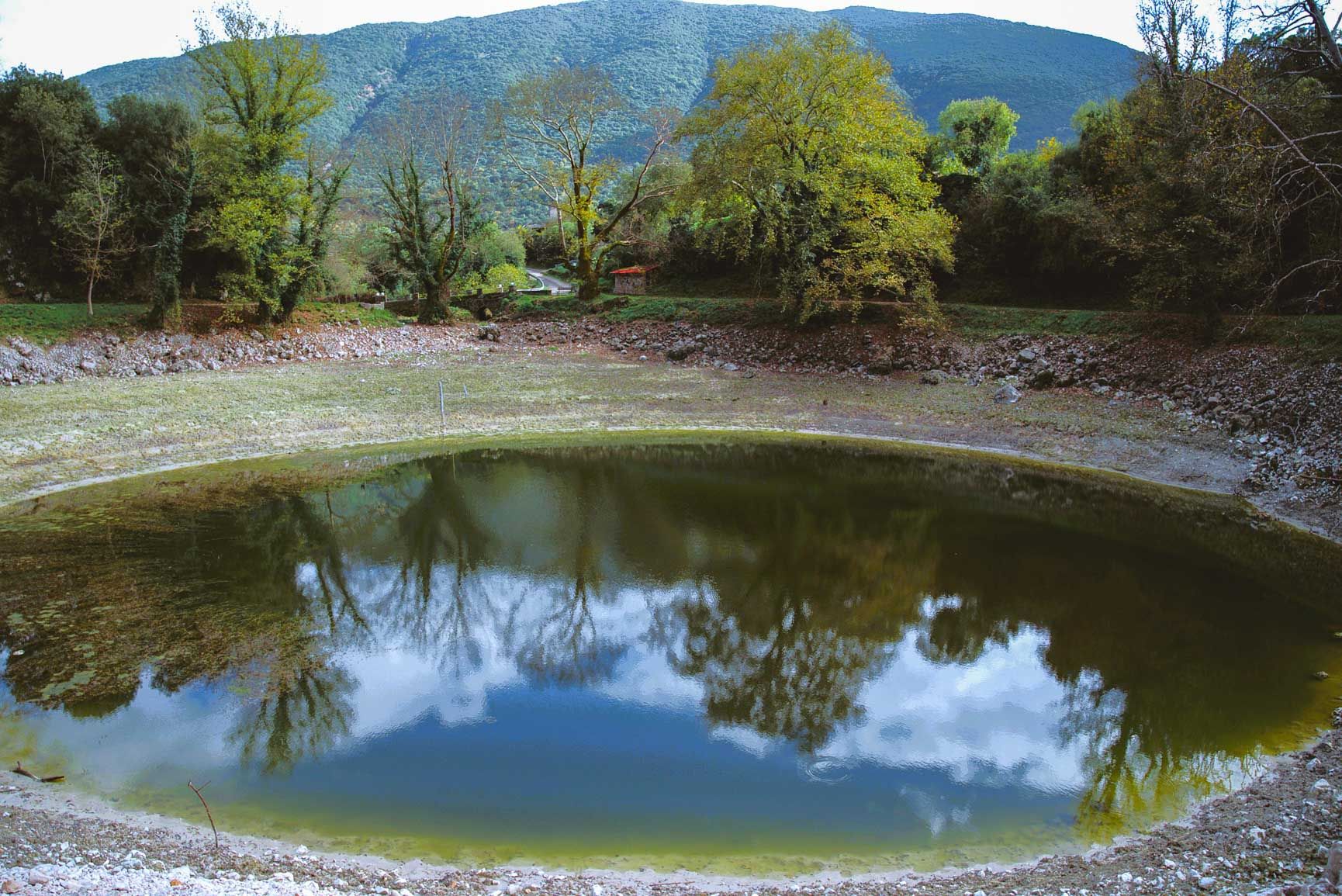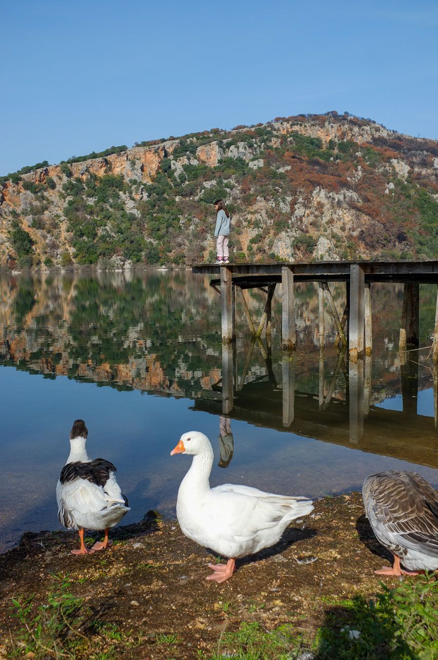 Στη μια άκρη του σχεδόν ολοστρόγγυλου υδάτινου κρατήρα, μια αιωνόβια βελανιδιά απλώνει τα κλαδιά της και μια κούνια κρέμεται πάνω από τα νερά. Η ανομβρία κάνει τη στάθμη της λίμνης να μειώνεται χρόνο με το χρόνο, αλλά το τοπίο διατηρεί τη μαγεία του.