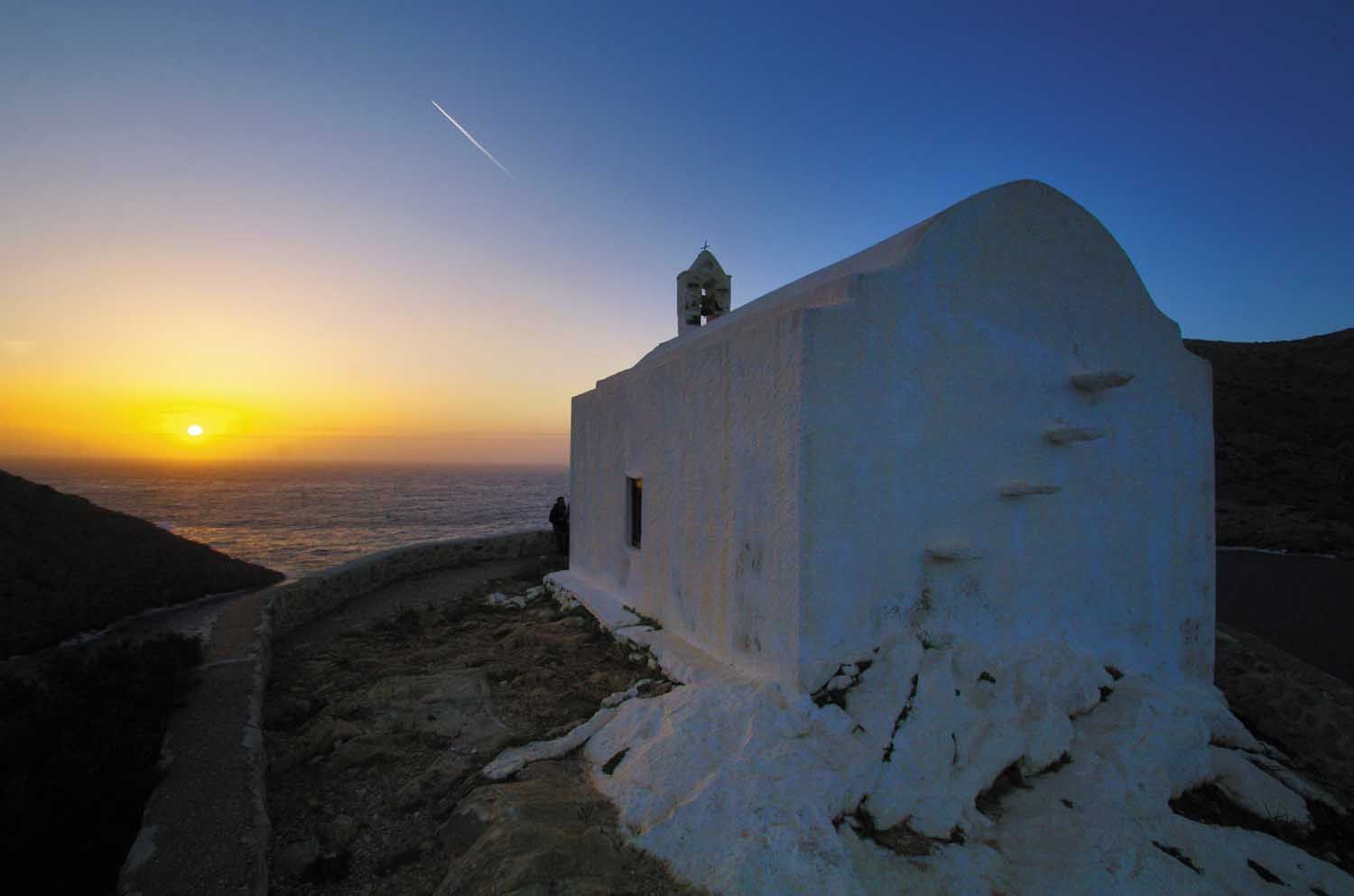 Οι τουρίστες αγαπούν κυρίως τη νότια Σύρο, γιατί αυτή γνωρίζουν πως έχει αναπτυχθεί περισσότερο. Αγνοούν όμως το βόρειο μέρος του νησιού, την Απάνω Μεριά με τους λιγοστούς κατοίκους, το οποίο, αν και άγριο, υπόσχεται σπάνιας και μεταφυσικής ομορφιάς τοπία λόγω της διαφορετικότητας της μορφολογίας του εδάφους. Για τους περιπετειώδεις, η ανακάλυψη παρθένων παραλιών, όπως είναι ο Αετός και τα Γράμματα, καθώς και η επίσκεψη στο Καστρί με τον προϊστορικό οικισμό, ακολουθώντας τα μονοπάτια, θα είναι σίγουρα ενδιαφέρουσα εμπειρία. Κι εγώ, από την άλλη, φτιάχνω νοητά τον δικό μου χάρτη. Σχεδιάζοντας δρομάκια με τους στίχους της Φραγκοσυριανής, είμαι έτοιμη να περιπλανηθώ στο γνωστό άσμα και στα χωριουδάκια του νησιού. Ψαροχώρια όπως το Κίνι προσφέρονται για καλό ψαράκι και δροσερό μπάνιο. Βόλτα στην Αληθινή, την Παρακοπή και την Ποσειδωνία ή αλλιώς Ντελαγκράτσια. Η τελευταία, γνωστό παραθεριστικό θέρετρο με πανύψηλους πύργους, προσφέρει ένα μαγευτικό ταξίδι στον χρόνο. Με μπούσουλα το βαθύτερό μου ένστικτο καταλήγω να σουλατσάρω έξω από ένα μισογκρεμισμένο αρχοντικό πάνω στον δρόμο. Βρίσκομαι στο χωριό Πισκοπειό (Επισκοπείο). Το αμφιλεγόμενο κοκκινόσπιτο που ενέπνευσε τη Μεγάλη Χίμαιρα του Καραγάτση στέκεται μπροστά μου. Με σεβασμό στην τραγικότητα της ύπαρξης, που η επίκτητη ενοχή την κάνει πολλές φορές ανυπόφορη, δεν εισέρχομαι. Το κυκλαδίτικο άρωμα ευωδιάζει στη δυτική πλευρά του νησιού, μόλις 7 χλμ. από την πρωτεύουσα, στον δημοφιλή πλέον Γαλησσά. Ζωντανή απόδειξη για ονειρικές διακοπές, καθώς μπορεί να υποστηρίξει με άνεση όλες τις ανάγκες των επισκεπτών, από διαμονή, φαγητό και διασκέδαση μέχρι κάμπινγκ, θαλάσσια σπορ και ένα μικρό μόλο για τα σκάφη. Ένας ψηλός λόφος σκίζει το τοπίο κάνοντάς το αντιθετικό και ακόμη πιο ξεχωριστό. Από τη μία ο σύγχρονος οικισμός, γεμάτος ζωή, με μια ζεστή χρυσή αμμουδιά να χύνεται στον καταγάλανο κόλπο του Γαλησσά, και από την άλλη μεριά του λόφου, κατεβαίνοντας στο παρελθόν, ο αρχαίος οικισμός. Το δρομάκι καταλήγει σε μια ακόμη πιο πρωτόγονη διάθεση στη βοτσαλωτή παραλία του Αρμεού, τον παράδεισο των γυμνιστών. Νοτιότερα του Γαλησσά, πολύ κοντά, κατηφορίζει ακόμη ένα μονοπάτι για ιερή απομόνωση και περισυλλογή. Μέτριο σε βαθμό δυσκολίας, τελειώνει στην κρυψώνα του Αγίου Στεφάνου. Λέγεται πως ένας βαρκάρης, σαν τάμα που γλίτωσε απ’ τα πλοκάμια ενός χταποδιού, έχτισε τον μικρό ναό σε τούτη τη σπηλιά, όπου μόνο νυχτερίδες κουρνιάζουν ήσυχες. Το ατελείωτο μπλε ταξιδεύει πέρα στον βυθό κάθε έγνοια και καημό. Σε λίγο θα βραδιάσει και η αύρα εδώ στο λιμανάκι του Γαλησσά θυμίζει κάτι από λύτρωση. Πριν τελειώσει ετούτη η δύση, μετράω ένα ένα τα σκαλιά για το καθολικό ξωκλήσι της Αγίας Πακού (Υπακοής) στην κορφή του λόφου. Το εύρος της θέας περιμετρικά αποζημιώνει το λαχάνιασμα της ανάβασης. Και οι δύο παραλίες περιμένουν στωικά να βασιλέψει ο ουρανός. Χαμηλώνω κι εγώ με τον ήλιο που ξαπλώνει στην αγκαλιά του κόλπου. Οι εναλλαγές του φωτός κινούν νωχελικά το ασβεστωμένο αραχνοΰφαντο μακρύ νυφικό της εκκλησιάς. Με ένα νεύμα που φεύγει ψηλά σαν σύννεφο, τον αποχαιρετά. Καρτερικά και αιγαιοπελαγίτικα, ξέρει, θα ανατείλει ξανά. Δεν επιλέγω για τελευταία εικόνα τη Σύρο απ’ το κατάστρωμα. Φαντάζει ελλιπής χωρίς τις αντιθέσεις της να τη συμπληρώνουν όπως της πρέπει στα μάτια μου. Εδώ, από μακριά η μουντάδα του ναυπ