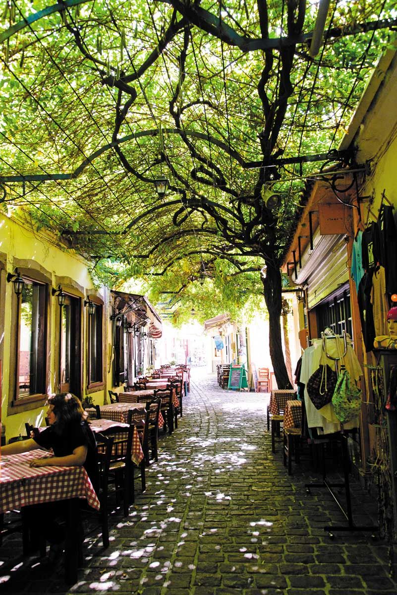 Με το που αντικρίζεις το λιμάνι, το πρώτο που σου κάνει εντύπωση είναι η εκκλησιά του Αϊ-Θεράποντα με τον θεόρατο τρούλο του που, όπως γράφει ο Ελύτης, υψώνεται αναπάντεχα τραβώντας μαζί του ολάκερη την πολιτεία στα μεσούρανα… Το δεύτερο είναι τα σπάνια και καλοδιατηρημένα αρχοντικά της, που προδίδουν την αλλοτινή της αίγλη και αυτή την ποιότητά της που με κάποιον τρόπο την ακολουθεί ως σήμερα. «Αρχόντισσα του Αιγαίου» την αποκαλούσαν οι Τούρκοι, θα μου πει ο πρόεδρος των ξενοδόχων κ. Περικλής Αντωνίου. «Μπες μέσα σε ένα από τα αρχοντικά να δεις ποια ήταν η Μυτιλήνη στην ακμή της…» Όσο για σήμερα: «Είναι ένα απέραντο ανθοδοχείο που μυροβολεί ευωδιές. Μεθάς από το φως, τα ασπρισμένα σπίτια, τις αυλές, τα μαγειρέματα, τη μουσική του φλοίσβου, των πουλιών... Έτσι θα μου τη συστήσει –όχι πως δεν την ήξερα–, με ξαφνιάζουν όμως ευχάριστα τα λόγια που φανερώνουν την ποιότητα του ανθρώπου και σε κάνουν να χαίρεσαι για την ιδιότητά του· ενός ανθρώπου που προσφέρει στον τόπο του ανιδιοτελώς, τρέχοντας για όλους και για όλα. «Από τη δεκαετία του ’80, που ξεκινήσαμε το ξενοδοχείο, μας είχαν πει πως πρέπει να επενδύσουμε σε μικρές και ποιοτικές μονάδες φιλοξενίας, και αυτό ακριβώς κάναμε…» τονίζει. Δεν είναι τυχαίο λοιπόν που σ’ ολόκληρο το νησί δεν θα δεις πουθενά αυτά τα τεράστια εκτρώματα που λαβώνουν ανεπιστρεπτί την αισθητική του τοπίου. Φτάνοντας ξημέρωμα με το πλοίο της γραμμής, θα φας λουκουμάδες σε κάποιο από τα καφενεία του λιμανιού. Για μένα το λιμάνι της Μυτιλήνης είναι από τα ωραιότερα στη χώρα. Γεμάτο διατηρητέα κτίρια, που στεγάζουν μαγαζιά κι υπηρεσίες και που έχουν αναδειχτεί με σεβασμό και φροντίδα. Θα αναζητήσω να δω από κοντά την εκκλησιά που τόσο πολύ με κεντρίζει μόνο από τη θέα της – είναι ένα από το πιο εντυπωσιακά εκκλησιαστικά μνημεία της χώρας. Εγκαινιάστηκε μόλις το 1935 κι έχει έντονα γοτθικά στοιχεία που σε παραπέμπουν στους φημισμένους ναούς της Ευρώπης. Εξωτερικά είναι διακοσμημένη με κίονες κι εξαιρετικά γλυπτά, ενώ ο κεντρικός της τρούλος είναι επενδυμένος με ψευδάργυρο στολίζοντας με τη μεγαλοπρέπειά του όλο το λιμάνι αλλά και την οδό Ερμού, έναν από τους ωραιότερους εμπορικούς δρόμους που θα συναντήσεις ποτέ… Η Ερμού της Μυτιλήνης είναι ένας στενόμακρος πεζόδρομος όπου το νέο συνυπάρχει αρμονικά με το παλιό. Ιστορικά καφενεία, παλαιοπωλεία, ψηλά καμπαναριά, ψαράδικα, παραδοσιακά παντοπωλεία, στοές, μπαρ και παλιές ποτοποιίες στέκονται ισότιμα πλάι σε νέες φίρμες με ρούχα και κοσμήματα, σπίτια με τα ξύλινα σαχνισιά και πολύχρωμα γκράφιτι. Εύκολα αφουγκράζεσαι πως βρίσκεσαι ακριβώς στο μεταίχμιο της δύσης και της ανατολής, με έντονο το μικρασιάτικο στοιχείο. Η προσφυγιά άλλωστε δεν ήταν κάτι καινούργιο κι άγνωστο για τη Λέσβο. Όλο το ιστορικό κέντρο του νησιού πεζοδρομήθηκε πρόσφατα κι οι γειτονιές του γέμισαν ταβερνάκια, μπιραρίες και μπαράκια. Είναι άλλωστε μια ολοζώντανή πόλη 36.000 κατοίκων, γεμάτη νέους και φοιτητές. Σε κάποιο από τα παραδοσιακά καφέ-μεζεδοπωλεία της αρκεί να πεις ένα ούζο με μεζέ, επιλέγοντας ανάμεσα στην ατέλειωτη λίστα με τις ετικέτες, και το καραφάκι σου θα έρθει συνοδευόμενο από τα επτά πιατάκια –οπωσδήποτε «φασόλες» και παστό– και την έμπνευση του εκάστοτε μαγείρου. Στόχος δεν είναι να χορτάσεις, μα να απολαύσεις το αρωματικό απεριτίφ σου με μια ποικιλία γεύσεων που θα σου φτιάξου