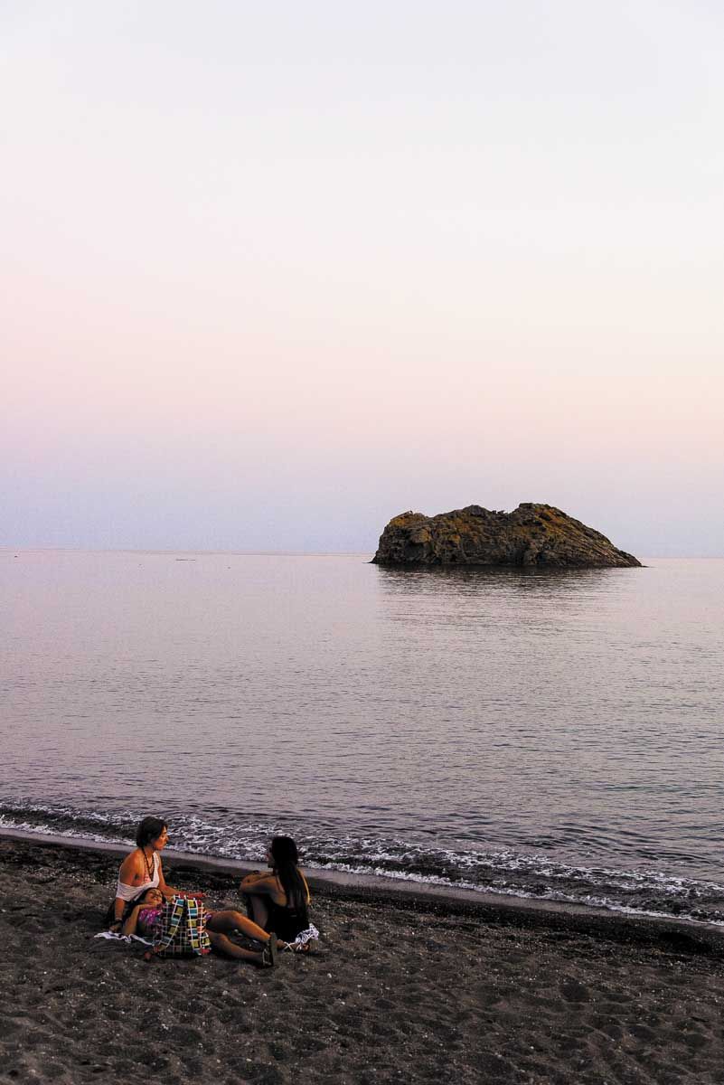 Στον κόλπο της Γέρας, τα ανακαινισμένα Θέρμα SPA είναι ένα από τα πέντε οργανωμένα λουτρά του νησιού – ένα τεράστιο κεφάλαιο της Λέσβου. Μπορείς να απολαύσεις μπάνιο ή τζακούζι στις εξωτερικές πισίνες ή στις prive εσωτερικές και να πιεις τον καφέ σου στην όμορφη βεράντα ή σε μια σεζ λογκ βουτώντας στη θάλασσα, χαλαρώνοντας παράλληλα στις δυο φυσικές λακκούβες με το ζεστό νερό ακριβώς επάνω στο κύμα. Το σίγουρο είναι πως θα ξανανιώσεις με θέα το υπέροχο ηλιοβασίλεμα. Στην είσοδο του κόλπου ξετρυπώσαμε μια σπάνια παραλία με πράσινα νερά, που χρωματίζονται από τα πεύκα που γέρνουν πάνω της. Είναι ο Άγιος Ερμογένης, μια καταπληκτική πευκόφυτη τοποθεσία με το ομώνυμο εκκλησάκι χτισμένο σε ένα βράχο μέσα στη θάλασσα. Από την απέναντι πλευρά, στον Παπάδο, ακολουθούμε πιστά τις πινακίδες που περνούν μέσα από τον οικισμό μέχρι να βρεθούμε στο Ελαιοτριβείο – Μουσείο Βρανά, το οποίο ανήκε στον παππού του Οδυσσέα Ελύτη. Το υπέροχο βιομηχανικό κτίριο του 1887 το αποκατέστησαν και το ανέδειξαν σε ένα μοναδικό μουσείο, που σε μυεί στη διαδικασία παραγωγής του λαδιού. Και όχι μόνο. Η αίθουσα που είναι αφιερωμένη στον Ελύτη σε ξεναγεί στη σχέση του με τη Λέσβο, τη Σαπφώ, τον Κριναγόρα, τον Θεόφιλο, ενώ μια δίωρη βιντεοπροβολή περιλαμβάνει σπάνια αποσπάσματα από το έργο του μεγάλου μας ποιητή. Από τον Παπάδο, ακολουθώντας τον ανηφορικό τσιμεντόδρομο που περνά μέσα από τον οικισμό Σκόπελος, μετά από 10-15 λεπτά χωματόδρομο θα βρεθείς στις Μηλιές, τον «κρυμμένο» τόπο που δεν υπάρχει ούτε στους χάρτες! Μέχρι και τα τελευταία μέτρα στις δασωμένες πλαγιές του Πευκοβουνίου αδυνατούσα να πιστέψω αυτό που μου είχαν περιγράψει: Πως άξαφνα μέσα στις λαγκαδιές αντικρίζεις τον παλιό οικισμό με τα πέτρινα εγκαταλειμμένα σπιτάκια του να ατενίζουν τα πελάγη. «Μυλιές» θα μου πουν πως ήταν το αρχικό του όνομα, από τους πολλούς του μύλους, και πως χτίστηκε εκεί για να προστατεύεται από τους πειρατές. Το χωριό με την τεράστια εκκλησιά είχε μέχρι πρόσφατα τρεις μόλις κατοίκους, μέχρι που η τραγουδίστρια Γιώτα Μιχαλέλη αποφάσισε να εγκατασταθεί εκεί και να επαναλειτουργήσει μετά από 25 χρόνια τον παλιό καφενέ. Φιλοξένησε κόσμο και ξεκίνησε να αναπαλαιώνει τα παλιά σπίτια με σκοπό να δημιουργηθεί μια οικοκοινότητα, ανοιχτή σε όσους αγαπούν και σέβονται τη φύση. Ο καθένας συνεισφέρει όπως μπορεί, ενώ υπάρχει δυνατότητα φιλοξενίας με μικρό κόστος. Στο καφενείο θα φας ό,τι καλούδι παράγει η γη, ενώ με τη Γιώτα στο τιμόνι δεν λείπουν τα αυτοσχέδια γλέντια και τα πανηγύρια.