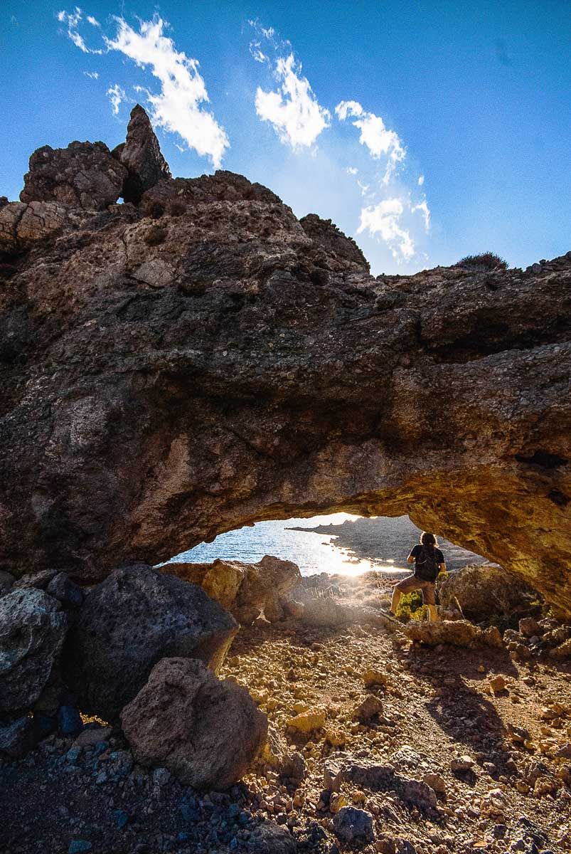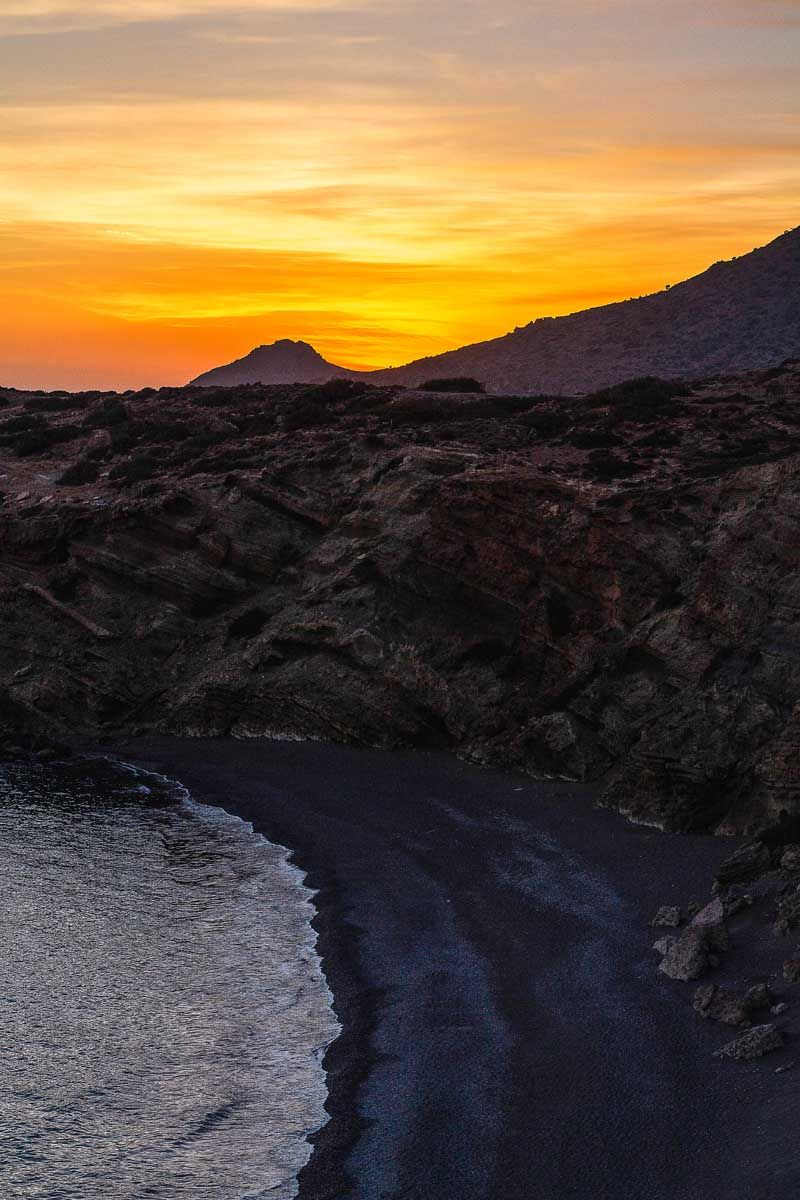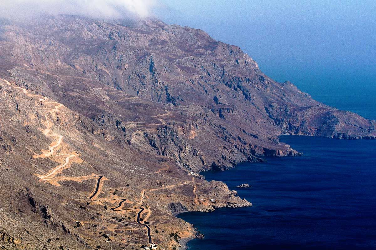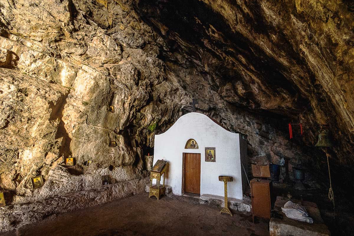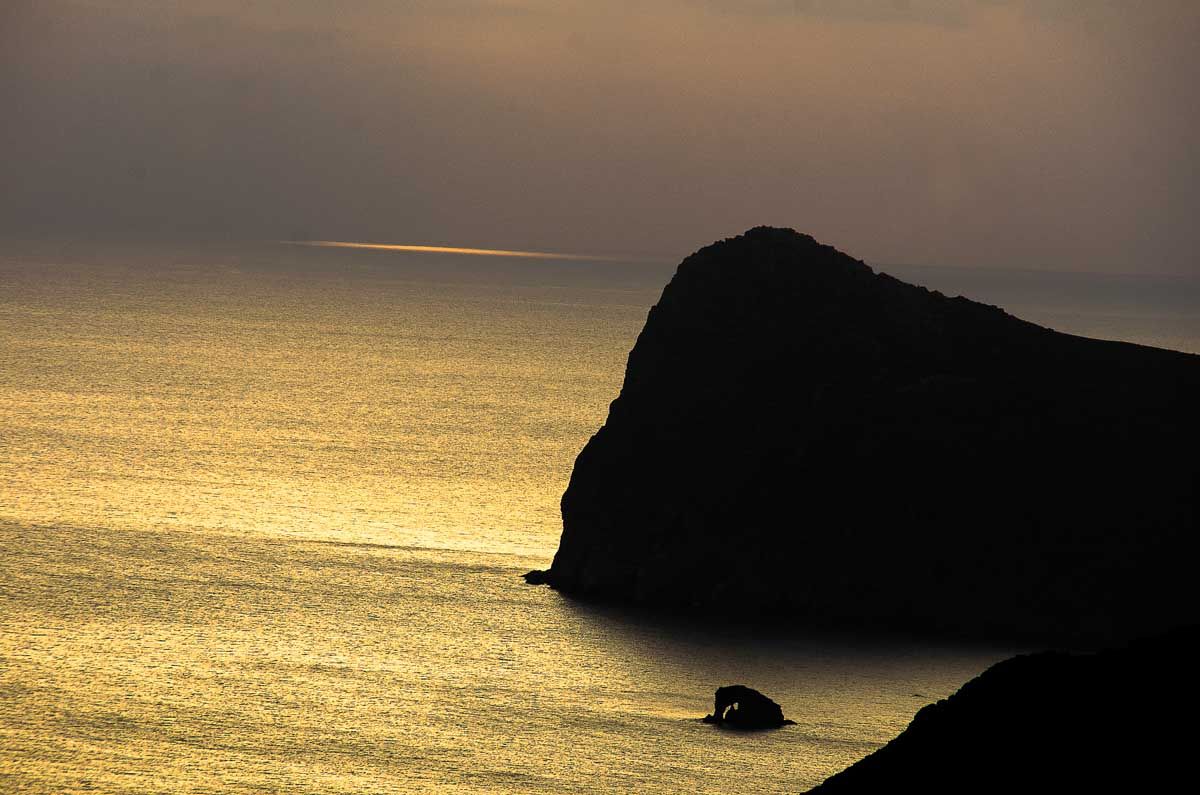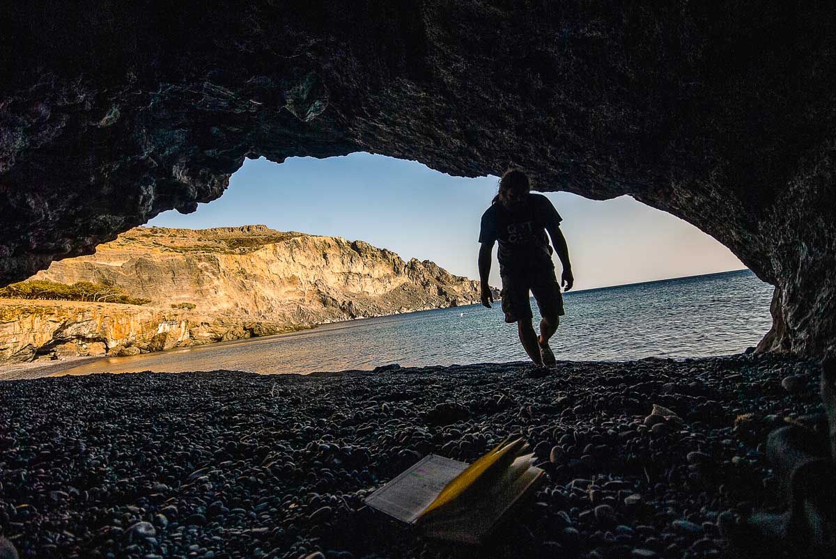 Προσανατολισμός σου το πέλαγος, πυξίδα σου το δέντρο που λύγισε ο βοριάς… Η κάθοδος στον Άγιο Γιάννη είναι δύσκολη μα εντυπωσιακή. Θέα ανεμπόδιστη από ανατολή ως δύση, δέντρα κρεμασμένα στον γκρεμό, κι όσο κατηφορίζεις τόσο ψηλότερα νομίζεις πως είσαι! Το εκκλησάκι του Αγίου Ιωάννη χτίστηκε πάνω στα κοιλώματα του βράχου και είναι το μόνο στην Κρήτη που διαθέτει τοιχογραφίες και στο εξωτερικό του. Από εδώ ξεκινά και το μονοπάτι που κινείται παράλληλα με την ακτή για να σε φέρει ως τη σπηλιά του Άγιου Αντώνη και την περίφημη Μονή Κουδουμά. «Στους Αγιούς», έλεγαν χαρακτηριστικά παλιότερα, αναφερόμενοι σε όλη αυτή την περιοχή. Διόλου τυχαία, αφού εδώ ασκήτεψαν αρκετοί άγιοι της χριστιανοσύνης, ανάμεσά τους και ο άγιος Κοσμάς ο Ερημίτης. Το μονοπάτι σε φέρνει σύντομα στη σμαραγδένια παραλία του Ελυγιά. Σε περνά από σπηλιές, ναυαγισμένα πλοία και τους περίφημους «αλατσάδες» των Αστερουσίων. Νεαρά πευκοδάση αντανακλούν τις ηλιαχτίδες. Μετέωροι οι βράχοι σε σκεπάζουν. Μικρό και μεγάλο Αγαδικό – βραχώδεις κολπίσκοι σε καλούν καθώς ποντοπόρα πλοία διασχίζουν τον ορίζοντα… Προσπερνώντας τη διακλάδωση για τη Μονή Κουδουμά σύντομα αγναντεύεις από μακριά την απόκρημνη βραχώδη πλαγιά. Μέσα της η θεόρατη σπηλιά – μήτρα της αγιοσύνης. Το ερημητήριο είναι αφιερωμένο στον άγιο Αντώνιο, που έζησε στην Αίγυπτο τον 4ο αιώνα, και υπήρξε πρώτος διδάξας του ασκητισμού. Στο εσωτερικό του είναι χτισμένο το εκκλησάκι και πίσω του ακριβώς τρεις στέρνες συλλέγουν το νερό απ’ τους σταλακτίτες. Αγίασμα το λέει η παράδοση που του αποδίδει θεραπευτικές ιδιότητες… Με έναν μικρό φακό και λίγο θάρρος φτάνεις ως το βάθος της σπηλιάς. Με ένα κερί φωτίζεις τα σκοτάδια του νου. Δέος για τα ιερά και τα ανθρώπινα, αποστομωτική η θέα, δεκάδες πουλιά στο φευγιό της μέρας… Η επιστροφή κατά το λιόγερμα είναι μαγική. Σαν να ρίζωσε η Πίνδος πάνω απ΄ την Καλντέρα για να γκρεμιστούν και οι δυο μαζί στο Λιβυκό…
