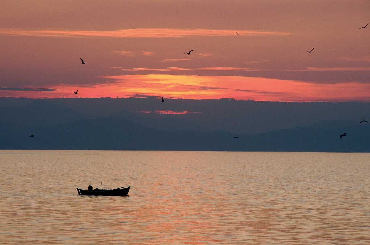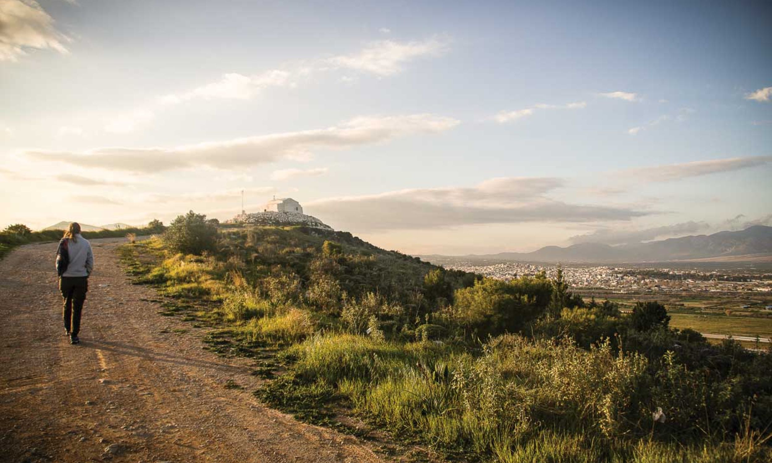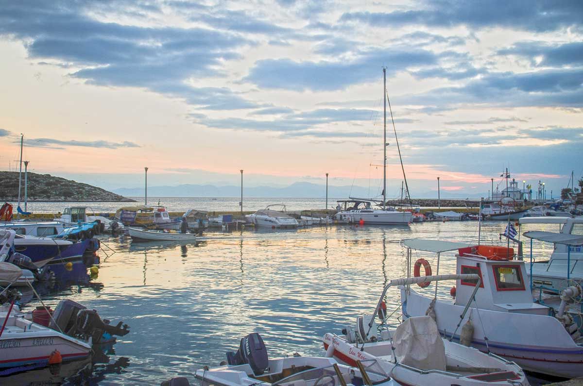 Αναζητάμε τον λόφο του Αϊ-Γιώργη με το ομώνυμο κατάλευκο ξωκλήσι και την αμφιθεατρική θέα στο λιμάνι της Πάχης, τον Σαρωνικό κόλπο και την πεδιάδα των Μεγάρων. Αν και το βλέπεις από μακριά, δεν το βρίσκεις εύκολα, η μαγευτική του ατμόσφαιρα όμως άξιζε κάθε μανούβρα, κάθε λάθος διαδρομή. Πανέμορφες εικόνες στη δροσιά του απογεύματος με φόντο τον ήλιο, που σε λίγο δύει βάφοντας πορτοκαλί το γραφικό λιμανάκι, κάτω ακριβώς από τα πόδια μας. Ο παραθαλάσσιος οικισμός βρίσκεται στα νότια της πόλης των Μεγάρων και δεν έχουμε παρά να τον επισκεφθούμε και από κοντά. Ένας νησιώτικος αέρας μάς καλωσορίζει φτάνοντας, με τον μόλο, τις ψαρόβαρκες και τις ψαροταβέρνες στη σειρά. Μαζί με τα δίχτυα της δύσης τις πετονιές τους ρίχνουν και οι ψαράδες στην άκρη της προβλήτας, ενώ τα απέναντι νησάκια, το Παχάκι και η Παχοπούλα, συμπληρώνουν τη γαλήνια θέα. Περπατάμε κατά μήκος της θάλασσας μέχρι το λευκό εκκλησάκι της Παναγίτσας, στην άλλη άκρη του μόλου. Η μέρα ντυνόταν τις διαδοχικές αποχρώσεις του δειλινού κι ένας βαρκάρης που έβγαινε για τη βραδινή του βάρδια έμοιαζε να διαχωρίζει τη θάλασσα στα δύο...