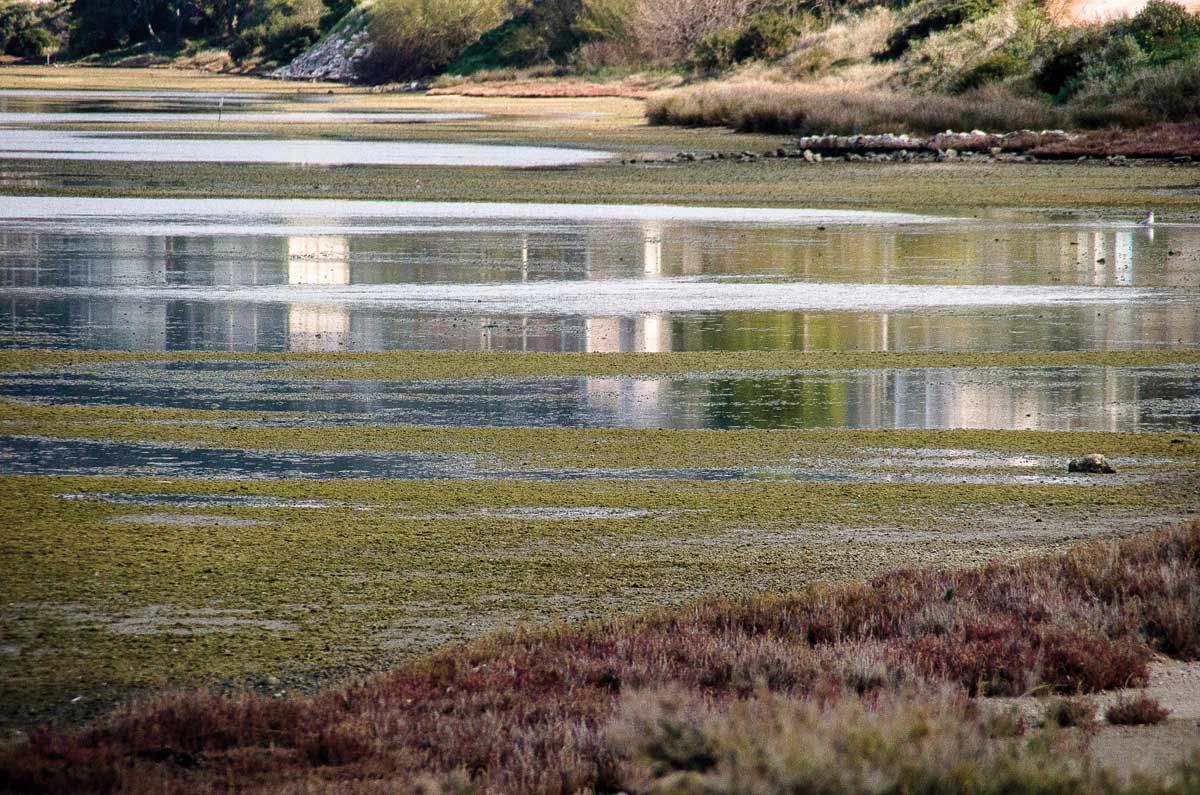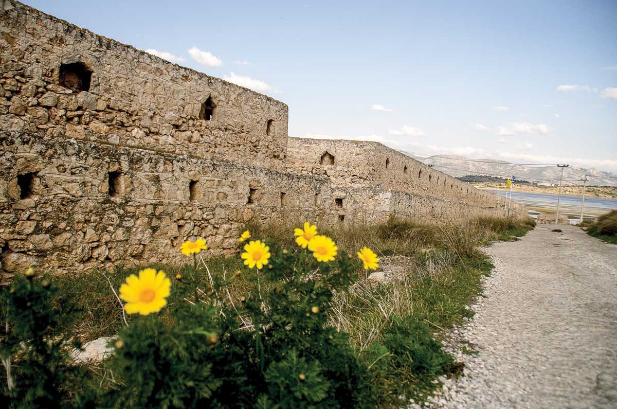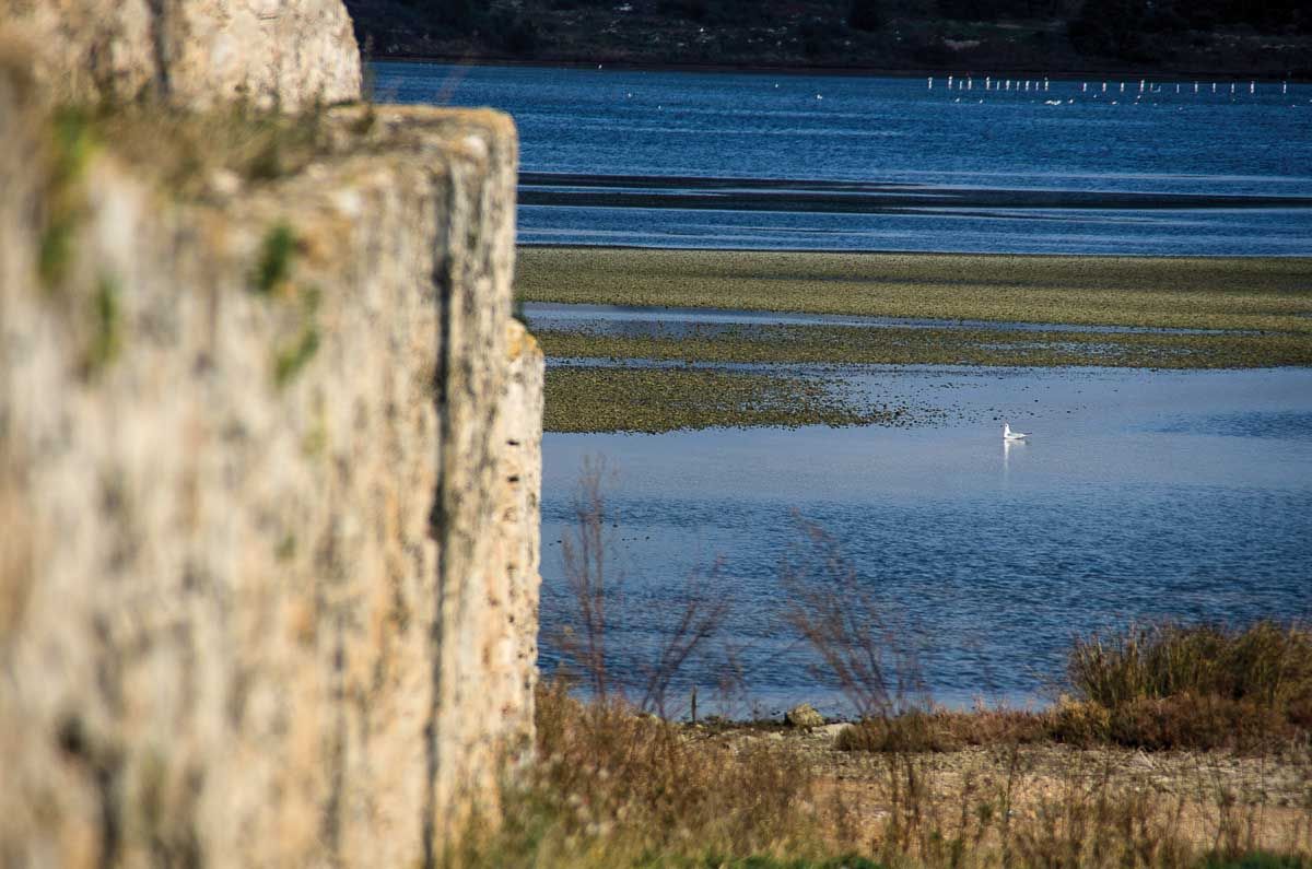 Ο δρόμος από την Πάχη, ανάμεσα από δύο συστάδες χωμάτινων βράχων, μας οδηγεί στον υγροβιότοπο του Βουρκαρίου, ενός από τους σημαντικότερους στην Αττική. Ένα στρατόπεδο, ένα στρατιωτικό αεροδρόμιο, ένας ελαιώνας και ένας τσιγγάνικος καταυλισμός συνοδεύουν το τοπίο της διαδρομής μας. Στα νερά του ζουν και φιλοξενούνται πάνω από 127 είδη πουλιών, στην πλειονότητά τους αποδημητικά, ενώ λόγω απουσίας ισχυρών ρευμάτων, προσελκύει και δεκάδες είδη ψαριών. Με τα κιάλια τα παρατηρούμε να ασημίζουν από μακριά μες στη μεσημεριάτικη ηρεμία τους. Αυτή η εικόνα της φυσικής γαλήνης και αρμονίας έρχεται σε αντιδιαστολή με τη βιομηχανική όψη της περιοχής, τόσο στην απέναντι όχθη της Σαλαμίνας όσο και σε εκείνη της Πάχης. Αποτέλεσμα της ανθρώπινης παρέμβασης είναι η επιβάρυνση του υγρότοπου από τα εργοστασιακά απόβλητα και τα φάρμακα συμβατικής γεωργίας, καθώς και η σταδιακή του συρρίκνωση. Λίγα μέτρα δεξιά μας, ένα οχυρωματικό τείχος που κατεβαίνει μέχρι τις όχθες της λίμνης κεντρίζει το ενδιαφέρον μας. Πρόκειται για οχυρωματικό έργο κατασκευής του 18ου αιώνα, που φτιάχτηκε πιθανότατα για την προστασία των κατοίκων από τις επιθέσεις των Οθωμανών. Από κοντά παρατηρούμε τις πολεμίστρες και την πέτρινη δομή του τείχους, το οποίο διαγράφει μια πορεία από το ένα άκρο της θάλασσας ως το άλλο, για να καταλήξει στη βραχώδη πίσω πλευρά του Σαρωνικού. Αξίζει τον κόπο να πάρει κανείς τον χωματόδρομο κατά μήκος του τείχους (ενδείκνυται για 4x4), που θα τον οδηγήσει στο παραθαλάσσιο Ήρεμο Κύμα – έναν γραφικότατο οικισμό, ό,τι πρέπει για χαλαρές βόλτες και ψάρεμα με θέα το νησάκι της Ρεβυθούσας.