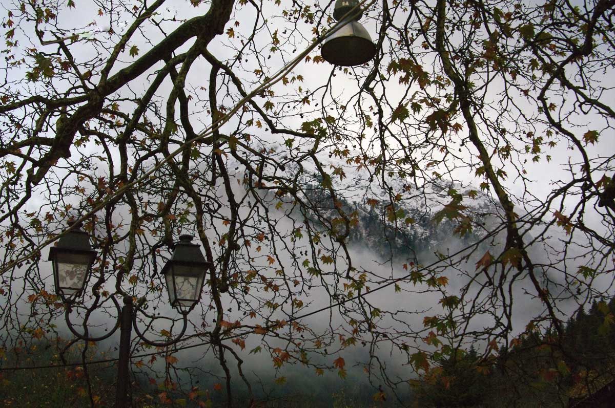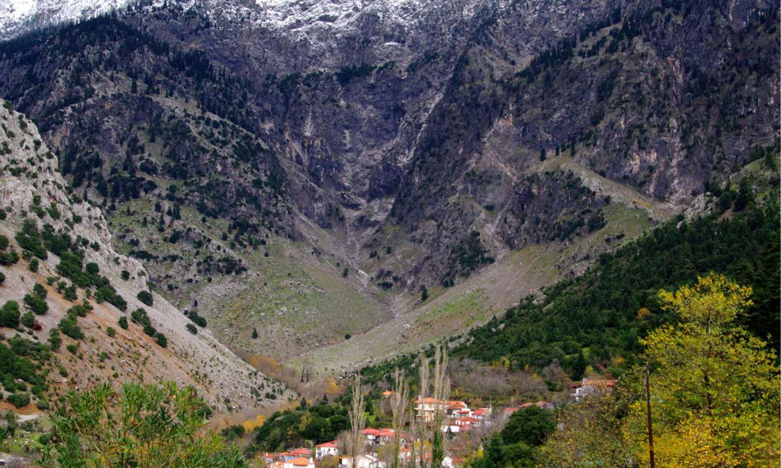 Στα κάτω άκρα της Γκιώνας συναντούμε τη «Δωρική Ελβετία», όπως αποκαλούν οι ντόπιοι το Λιδωρίκι. Διοικητικό και συγκοινωνιακό κέντρο, έδρα του δήμου Δωρίδος, εξυπηρετεί 56 χωριά. Υπό το άγρυπνο βλέμμα της εκκλησίας της Παναγιάς κάνουμε μια βόλτα στο βρεγμένο λιθόστρωτο της πλατείας. Σύμβολο ο γεροπλάτανος, δένει χρωματικά με τα λαμπυρίζοντα απ’ τη βροχή χρυσόφυλλα, που στοιβάζονται άτακτα μέχρι το μπλε παραθυρόφυλλο, να φτάσουν στην ψευδαίσθηση της φλογίτσας που σιγοτρέμει στο εσωτερικό της παλιάς ταβέρνας Στην ενίσχυση της τοπικής οικονομίας, εκτός από την κτηνοτροφία συμβάλλουν και τα αρκετά μαγαζάκια που έχουν φτιαχτεί. Ένα σύγχρονο καφέ μάς εντυπωσιάζει, αφού στο εσωτερικό του διατηρεί εκθέματα του 1924 από τον παλιό ξυλόφουρνο που βρισκόταν «ακριβώς εδώ», όπως φανερώνει το όνομα «Αδεδώ». Ο καιρός είναι με το μέρος μας, φωτογραφικά. Ανηφορίζοντας, η αραιή ομίχλη μάς επιτρέπει το ταίριασμα των αντιθέσεων και όσο το νήμα των καιρών δεν κόβεται, εγώ θα βλέπω ένα κλεμμένο χρυσό δέντρο των Εσπερίδων να κρύβεται καλά στο βαθυπράσινο των αμέτρητων ελάτων. Ξάφνου, σαν διαμάντι ακατέργαστο που θαρρείς έσκισε τη μήτρα της γης, ορθώνεται μπροστά μας η Γκιώνα. Με κλίση αρνητική, υπερφυσική κι επιβλητική φαντάζει σαν μαινόμενος Κένταυρος, που μας διατάζει να προσέξουμε το χωριό που φροντίζει, κρατώντας του παντοτινή σκιά. Βρισκόμαστε στη Συκιά, όπως φανερώνει η πινακίδα. Κι όμως το όνομα του χωριού δεν ήταν πάντα αυτό, αλλά και Σκιά, καθώς 2-3 ώρες το πολύ το ξεγελάει η λιακάδα. Όπως το κοιτώ να στηρίζεται σε τρεις απόκοσμες σπηλιές, το βαφτίζω «Σκοτεινό χωριό» και επικαλούμαι τη ρομαντική οπτική ενός Ντελακρουά για να του αλλάξει λίγο την όψη, με χρώματα μελανά και πορφυρές πινελιές στις κεφαλές των σπιτιών, κάνοντάς το ακόμη πιο μυστήριο κόσμημα στα πόδια του βουνού. Το μέρος είναι παγκοσμίως γνωστό στους ορειβατικούς κύκλους, μόνο που ο τουρισμός του δεν είναι ανεπτυγμένος, αφού μεγάλα λεωφορεία δεν μπορούν να εισέλθουν στο κέντρο, το ξενοδοχείο δεν λειτουργεί πια, ενώ οι λιγοστές ταβέρνες αργοπεθαίνουν. Διαθέτει όμως λαογραφικό μουσείο. Μια συνάντηση με τον κύριο Κώστα Καραγεώργο, τον εκκλησιαστικό επίτροπο της Αγίας Παρασκευής Συκιάς, θα μας μάθει κάτι ακόμα για τον τόπο. Με δύναμη μυθικού ταύρου ανεβαίνει το 4x4 στην Γκιώνα μέχρι το ιερό σπήλαιο της Παναγίας Αρσαλής. Η θέα συναγωνίζεται εκείνη των Άλπεων, ενώ ο ολόλευκος σταυρός ύψους 6 μ. προδίδει τον μαρτυρικό θάνατο ενός μοναχού στα χέρια των Τούρκων. Με υγρό βλέμμα ο κύριος Κώστας μάς οδηγεί στο εσωτερικό του σπηλαίου. Συγκινείται όταν μιλάει γι’ αυτό και τις προσπάθειες ανάδειξής του. Κλαίει και η Παναγιά από κάθε βράχο, δημιουργώντας μια ψευδαίσθηση απουσίας διαστάσεων, αφού παντού βλέπεις να αντανακλώνται στο νερό καθρεφτάκια βιτρό. Ξεναγηθήκαμε και πίσω από το ιερό, όπου το σπήλαιο συνεχίζει την εξέλιξή του. Γιορτάζει της Ζωοδόχου Πηγής, ενώ συντροφιά τού κρατάει η σπηλιά με τον ναό του Αγίου Δημητρίου. Χαιρετώντας από μακριά στο απέναντι βουνό, τον Κονιάκο, που έχει πάντα ήλιο και γι’ αυτό το καλύτερο κρέας της περιοχής, και με τις ροδιές του αυτοκινήτου να σχηματίζουν πλεξούδες από λασπόνερα, φτάνουμε στη Στρώμη. Μια πέτρινη γούρνα στολίζει την πλατεία της κι εμείς προχωράμε ως την Παναγιά τη Στρωμίτισσα. Η ύπαρξή της οφείλεται στο όραμα και την πίστη ενός Ελληνοαμερικανού,