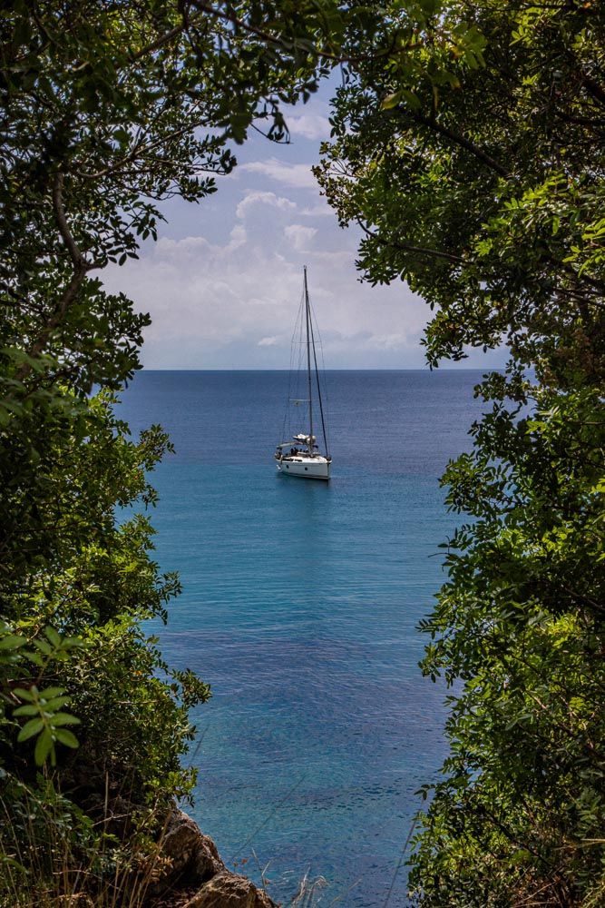 Ο δημιουργός δεν έδειξε φειδώ στα δέντρα, που κυριολεκτικά κρέμονται πάνω από τα γαλαζοπράσινα νερά, και τα μοίρασε απλόχερα ακόμη και στα μικρά βράχια μέσα στη θάλασσα. Πράσινο παντού!