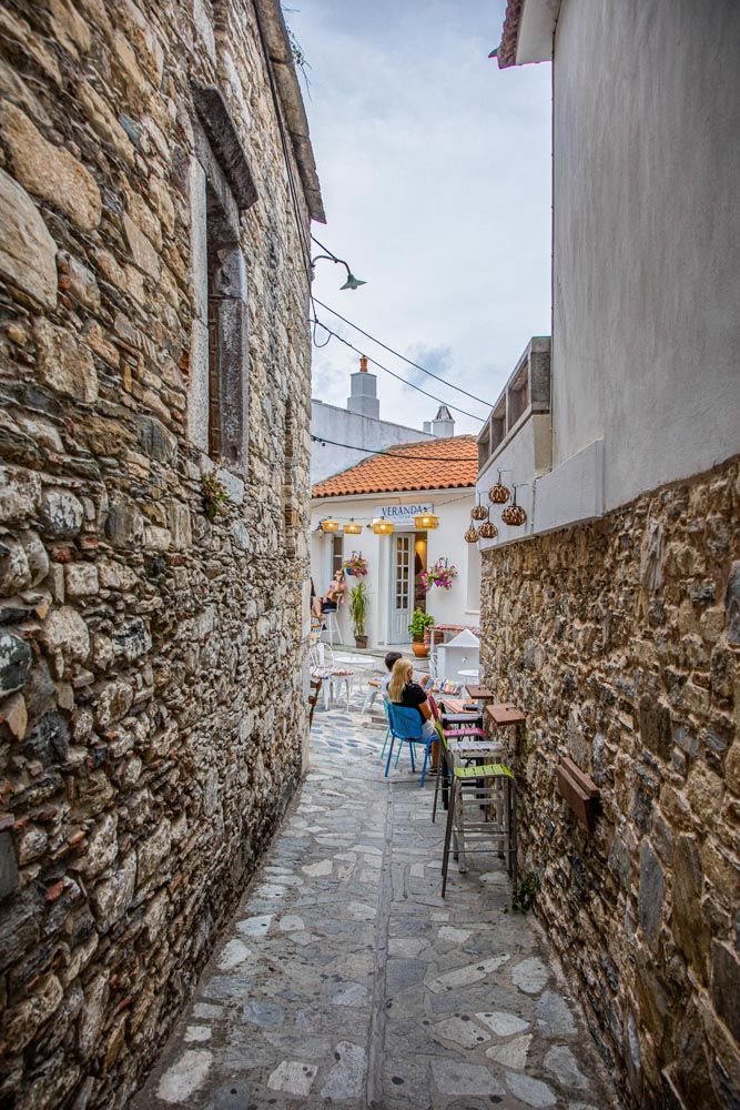 Εγώ, την πρώτη μου επίσκεψη την έκανα σούρουπο και καθώς ανέβαινα από το λιμάνι, είδα τα δημοτικά φώτα να ανάβουν και να φωτίζουν τα στενά με το θερμό τους φως. Ανηφόρισα χωρίς σκοπό διάφορα δρομάκια, κρυφοκοίταξα στο εσωτερικό των σπιτιών, φωτογράφισα όμορφες αυλές και γραφικά σπίτια, χαζολόγησα στα λογής λογής μαγαζάκια, καλησπερίστηκα με τις γιαγιάδες και τους παππούδες που χάζευαν τους περαστικούς καθισμένοι σε σκάλες και σκαλάκια…