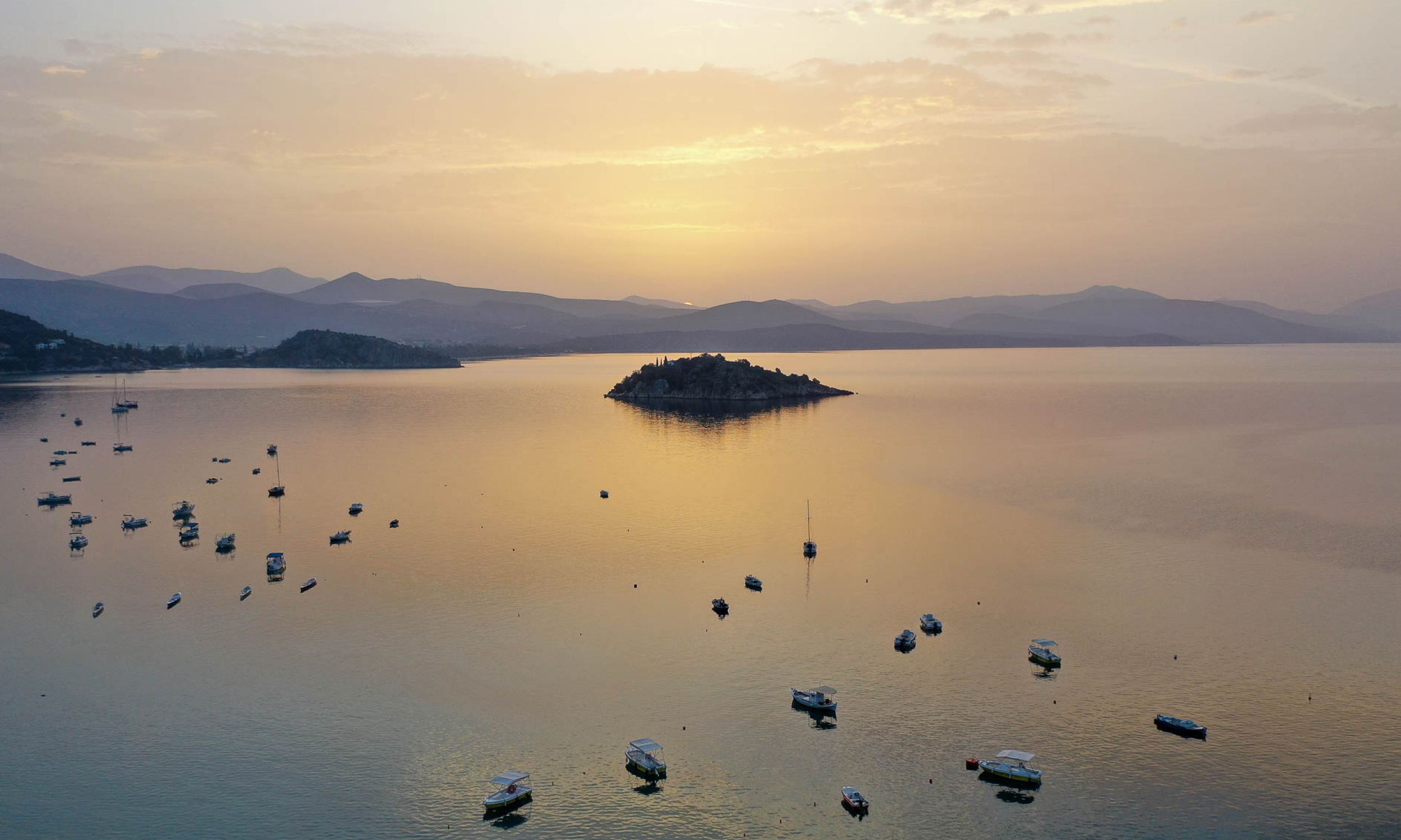 «Είναι θάλασσα ο πόνος κι οι χαρές νησιά», που λέει κι ο στίχος του αγαπημένου Θανάση Παπακωνσταντίνου και πάντα τα αναζητάς σαν σύγχρονος Οδυσσέας. Η έλξη και η γοητεία που μας προκαλούν είναι ασύγκριτες, επομένως το ίδιο συμβαίνει και με τα νησάκια εδώ στο Τολό, δεν γίνεται να μην τα επισκεφτείς! Πλεούμενο εδώ να βρεις είναι εύκολο, αλλά η πρόσβαση μπορεί να γίνει και με κανό, θαλάσσιο ποδήλατο, ακόμα και κολυμπώντας! Ο βαρκάρης Γιάννης Καλοκαιρινός με συνόδευσε στη μίνι κρουαζιέρα. Καραβομαραγκός στο επάγγελμα, επισκευάζει και φτιάχνει ξύλινα καΐκια, αλλά στις μέρες μας «δεν υπάρχει πολλή δουλειά», όπως θα μου πει και δουλεύει κι αυτός το καλοκαίρι μαζί με τον αδερφό του στον τουρισμό κάνοντας βαρκάδες τους επισκέπτες του τόπου. Ο τουρισμός είναι η κύρια ενασχόληση των ντόπιων μαζί με την αλιεία. Εύλογα στράφηκαν προς τα εκεί, καθώς η γη είναι σχετικά άγονη. Στη Ρόμβη, το μεγάλο νησί απέναντι από τον οικισμό, μπορείς να διακρίνεις ένα πανέμορφο μικρό πευκοδάσος στον μυχό ανάμεσα στους δυο κωνικούς λόφους του νησιού. Οι κάτοικοι, με πολλή προσπάθεια μεταφέροντας νερό από απέναντι, κατάφεραν να διατηρήσουν τα πεύκα έως ότου να μεγαλώσουν! Τώρα όμως απολαμβάνουν το πράσινο απέναντι. Στο ίδιο σημείο, κάτω από το δασάκι, υπάρχει ένας ορμίσκος με μια καταπληκτική παραλία, ενώ στο πίσω μέρος υπάρχει άλλη μία μεγαλύτερη που αγκαλιάζει το πιο μακρινό νησάκι, το Δασκαλιό. Όπως βλέπεις τη Ρόμβη από το Τολό, οι δύο λόφοι της αντανακλώνται στα συνήθως ήσυχα νερά και σχηματίζουν δίδυμους ρόμβους κάνοντας την ονομασία πολύ ταιριαστή. Στην κορυφή του ενός λόφου διακρίνεται κατασκευή ενετικού τείχους, ενώ και εδώ έχουν βρεθεί αρχαιολογικά ευρήματα. Ο Κώστας θα μου πει ότι το σχήμα του νησιού μοιάζει με λουλούδι με τρία πέταλα, ενώ δεν μπορείς να μην προσέξεις την επιγραφή σε βράχο: «Κάτω τα χέρια από το νησί». Κάποτε ήταν να φτιαχτούν εδώ τουριστικές υποδομές, ευτυχώς όμως ποτέ δεν πραγματοποιήθηκαν. Φτάνουμε πολύ γρήγορα στο Κορωνήσι. Κι εδώ είναι φανταστικά για μπάνιο! Ανεβαίνω ως το κουκλίστικο εκκλησάκι των Αγίων Αποστόλων στην κορφή του βράχου. Δεν είναι λίγες οι φορές που επιλέγουν το εκκλησάκι οι άνθρωποι για θρησκευτικές τελετές όπως γάμους και βαφτίσεις. Το βράδυ φωτίζεται όλο το νησί, προσφέροντας άλλη μια υπέροχη οπτική του μεγαλείοy του.