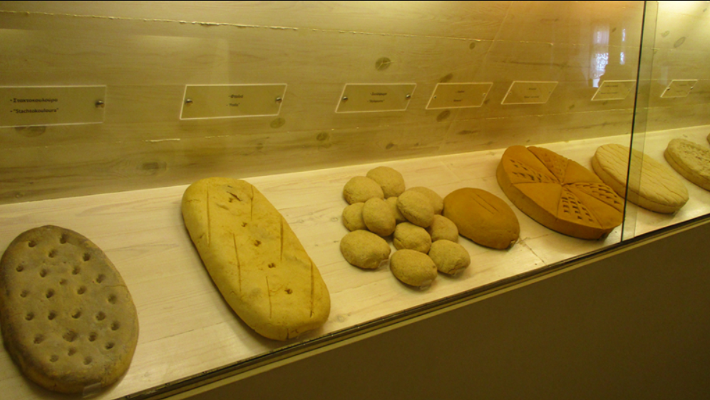 Δίπλα, το Μουσείο Άρτου — μοναδικό στην Ελλάδα, στημένο με τη φροντίδα του Κέντρου Ερεύνης Λαογραφίας της Ακαδημίας Αθηνών — σε πάει βήμα–βήμα στον κύκλο του ψωμιού: από τον σπόρο στο χωράφι ως το καρβέλι στο τραπέζι. Και σου θυμίζει κάτι απλό: το ψωμί δεν είναι μόνο τροφή. Είναι τελετή.