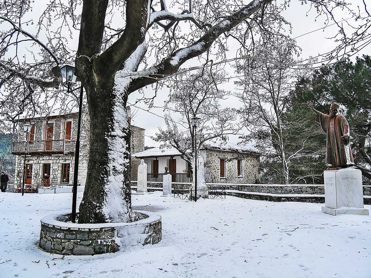 Αυτά φαίνεται ξεµυάλισαν και τον Χάρη, έναν Αθηναίο που περνούσε τα καλοκαίρια του στο χωριό, όπως τόσοι και τόσοι άλλοι. Όπως µου εξηγεί, καθώς προσπερνά µε µαεστρία τις δαιδαλώδεις ανηφορικές στροφές, ήταν τόσο δυνατές οι παιδικές του αναµνήσεις, που αποφάσισε να αφήσει τα πρωτευουσιάνικα θέλγητρα και να κάνει µια νέα επαρχιακή αρχή. Η Βαµβακού είναι τυχερή. ∆εν αντιµετώπισε την κρίση ταυτότητας και ονόµατος διπλανών χωριών, όπως οι Καρυές (Αράχοβα) και το Πολύδροσο (Τζίτζινα). Από τα γεννοφάσκια της την βάφτισαν έτσι. Όπως µε πληροφορεί ο Χάρης, το όνοµα του χωριού προήρθε από µια γυναίκα, τη Βαµβακού, ενώ συναγωνισµό στην ονοµατοδοσία είχε και από µια άλλη, την Κολοπανού, που τελικά αρκέστηκε να δώσει το όνοµά της σε µια από τις γραφικές του συνοικίες. Σ’ ένα άνοιγµα του δρόµου ξεµυτίζει η όψη του χωριού. Τα σπίτια κατρακυλάνε από µεγάλο ύψος προς το βάθος του λόγγου. Στην είσοδο του χωριού µε καλωσορίζει ένας γάιδαρος. Ίσως να είναι απόγονος του ζώου που κουβάλησε τον ίδιο τον Σπύρο Νιάρχο, πατέρα του εφοπλιστή Σταύρου Νιάρχου, στην τελευταία κατά πως φάνηκε επίσκεψη στον πατρογονικό του τόπο. Βλέπετε, όντας συγκινηµένος που έβλεπε ξανά τα πάτρια εδάφη, δεν άντεξε και έπαθε καρδιακή προσβολή λίγο µετά την προσφώνησή του φορτισµένου λόγου του στο πλήθος των συγχωριανών του. Είναι η ίδια αγνή αγάπη που οδήγησε και τον συνεχιστή της κληρονοµιάς της οικογένειας, το Ίδρυµα Σταύρος Νιάρχος, σε συνεργασία µε τον τοπικό πολιτιστικό σύλλογο «Νέα Ζωή» και µέλη του, νέους σαν τον Χάρη, να δώσει πνοή στο ερηµωµένο χωριό. Σκοπός είναι η περιοχή να ζωντανέψει ξανά µε τη δηµιουργία εξοχικών κατοικιών, εστιατορίων, καφέ και ξενώνων, όπως µε κάθε επισηµότητα ανακοίνωσε πρόσφατα το Ίδρυµα. Ενώ δεκάδες σπίτια ξεχύνονται µπροστά µου, ελάχιστα αναδύουν καπνό από τζάκι. Η Βαµβακού µοιάζει µε γυναίκα που την παράτησαν µόνη. Οχτώ µόνιµοι κάτοικοι απέµειναν, σαν φρουροί µιας ξεχασµένης Ελλάδας. Την ησυχία που επικρατεί σταµατά ο ήχος των βηµάτων µας προς την κεντρική πλατεία. Στη διαδροµή εντυπωσιάζοµαι από την αρχιτεκτονική των σπιτιών και τα καλοσυντηρηµένα κτίρια. Αίσθηση αρχοντιάς και πλούσιου παρελθόντος συνυπάρχουν πλάι πλάι µε την εγκατάλειψη και την αποµόνωση. Είπαµε, αντιθέσεις… Εκτός από τις προτοµές της οικογένειας Νιάρχου που ξεφυτρώνουν ανάµεσα στον πακτωλό πορτοκαλοκίτρινων πεσµένων πλατανόφυλλων, ξεχωρίζει το άγαλµα του Επισκόπου Βρεσθένης, Θεοδώρητου, του εµβληµατικότερου ίσως ανθρώπου που γέννησε ο τόπος. Σύµφωνα µε τον θρύλο, ήταν ο πρώτος που πάτησε το πόδι του στην Τριπολιτσά, αφότου πολιορκήθηκε στη διάρκεια της επανάστασης. Η όψη του κυριαρχεί στην πλατεία· µοιάζει σαν να βγάζει έναν ακόµα από τους πύρινους λόγους του. Απέναντί του βρίσκεται η τρισυπόστατη εκκλησία του χωριού, πράγµα σπάνιο. Αφιερωµένη στην Κοίµηση της Θεοτόκου, στον Άγιο Παντελεήµονα και στον Άγιο Χαράλαµπο. Λόγω του τελευταίου εξηγούνται οι πολλοί Χαράλαµποι του χωριού, όπως µου τονίζει και για το δικό του όνοµα ο Χάρης! Από την πλατεία, η θέα είναι µαγευτική. Μπροστά σου απλώνεται ο ποταµός Οινούντας και το καταπράσινο χαλί που τον συνοδεύει. Η γη είναι εύφορη, λόγω των πολλών νερών, µολονότι βρίσκεται στα 1.000 µέτρα υψόµετρο. Αντιθέσεις… Καρυδιές και καστανιές επικρατούν µαζί µε τη ρίγανη και το αρωµατικό τσάι. Μια ξεχασµένη παιδική χαρά κι ένα γήπεδο µπ