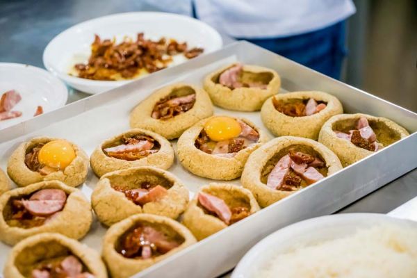 Χάχλες µε λουκάνικο, λιαστή ντοµάτα, αυγό και λαδοτύρι Μυτιλήνης