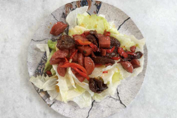 Σαλάτα με χωριάτικο λουκάνικο αρωματισμένο με μέλι και τσίπουρο