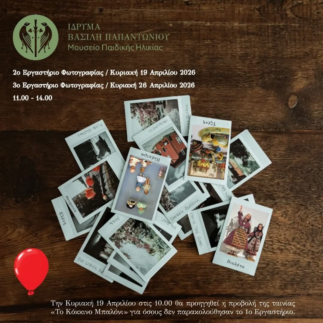 Δύο νέα δημιουργικά εργαστήρια φωτογραφίας για παιδιά διοργανώνει το Μουσείο Παιδικής Ηλικίας του Ιδρύματος Βασίλη Παπαντωνίου στο Ναύπλιο, δίνοντας συνέχεια σε έναν κύκλο δράσεων που φέρνει τα παιδιά σε επαφή με την τέχνη της εικόνας.