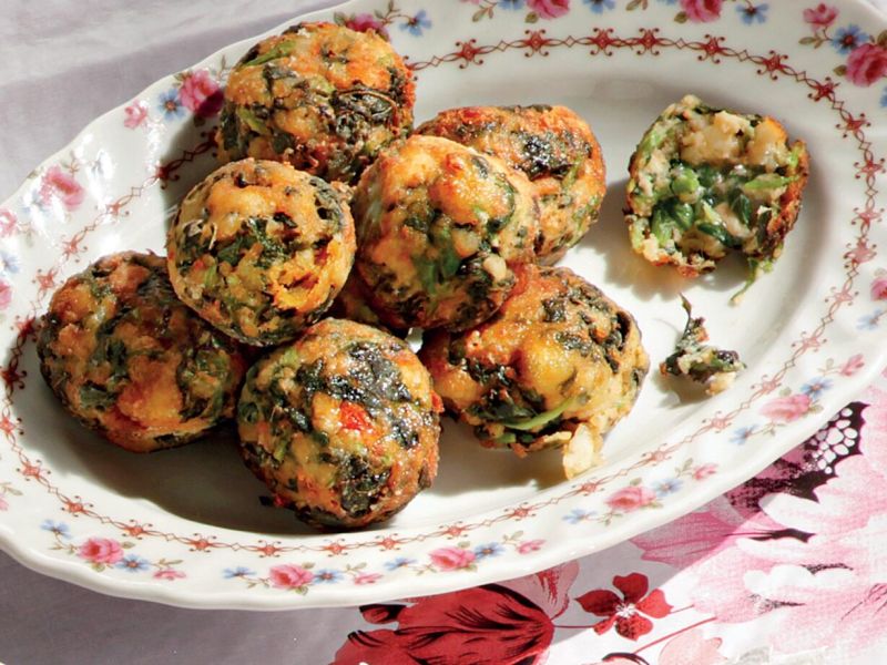 Χορτοκεφτέδες με πατάτα, σφέλα και γραβιέρα Λακωνίας