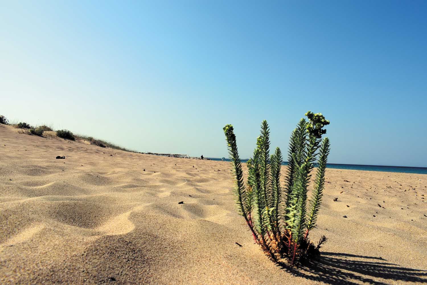 Στο βόρειο κομμάτι έχει δημιουργηθεί ένας τεράστιος αμμόλοφος με τον μαϊστρο να φυσά και να ξεφυσά, δημιουργώντας έργα τέχνης παντού, τις αμμοθίνες που ντύνουν όλο το μήκος της παραλίας.