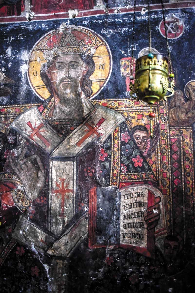Κατά τη διάρκεια της λιτανείας, κάποιοι χωριανοί έχουν αποστολή να µαζέψουν, από κάθε σπίτι που µπαίνουν, την Πασχαλιά, δηλαδή την πασχαλινή κουλούρα µαζί µε κόκκινα και άβαφα αυγά. Τα συγκεντρώνουν στην πλατεία προς δηµοπράτηση. Στη δηµοπρασία, παλαιότερα προσφέρονται και ζώα, µια κότα ή ένα κατσίκι. Τα χρήµατα συγκεντρώνονταν µε σκοπό να ξεκινήσει η συντήρηση των εξαιρετικών αγιογραφιών της εκκλησιάς των Αγίων Θεοδώρων, που είναι χτισµένη περίπου το 1700, στην Πάνω Γειτονιά του χωριού. Ο ναός ήταν ένα καστράκι οχυρωµένο εναντίον των Τούρκων, µε µοναστήρι και µε εκκλησία νεκροταφείου. Είναι κεραµοσκέπαστος µε τρίπλευρη αψίδα ιερού. Πολλές αγιογραφίες λαϊκής τέχνης του 18ου αιώνα καλύπτουν τους τοίχους µέχρι την αψίδα. Τα µάτια των αγίων έχουν βγει µε αιχµηρό αντικείµενο ή πυροβολισµό όπλου µάλλον από τους Τούρκους το 1780, µετά τη Μάχη της Καστάνιας, και έχει γίνει προσπάθεια αποκατάστασής τους. Στο τέµπλο είναι ζωγραφισµένοι µόνον ο Χριστός Αρχιερεύς, αριστερά, και η Παναγιά Αριστεροβρεφοκρατούσα, δεξιά. Στους διπλανούς τοίχους, ο άγιος Ιωάννης ο Πρόδροµος και έφιπποι οι άγιοι Θεόδωροι. Πάνω από τις εικόνες, οι Απόστολοι, άγγελοι και αλλεπάλληλες πτυχές σελίδων από την Αγία Γραφή. Εκεί, στα δεξιά του τέµπλου, είναι γραµµένη και η χρονολογία της αγιογράφησης: 1774. «Στη δεξιά πλευρά του στύλου της αψίδας είναι ζωγραφισµένος ο προφήτης Ηλίας του Ταϋγέτου, αφιέρωση του ήρωα Παναγιώταρου Βενετσανάκη, που είναι η µοναδική γραπτή απόδειξη της υπάρξεώς του και που δίνει και εθνικοϊστορική αιτία, πέρα από τη θρησκευτική, διατηρήσεως του ναού», µας λέει ο Βασίλης Χειλάκος.