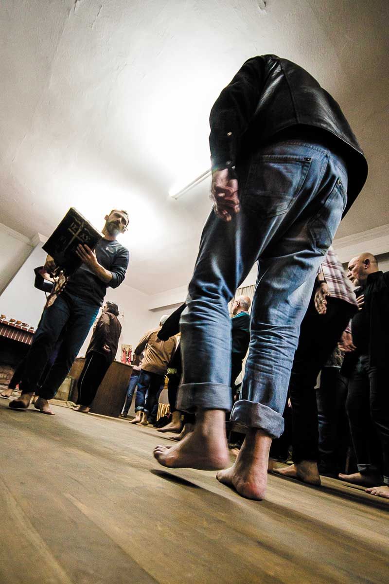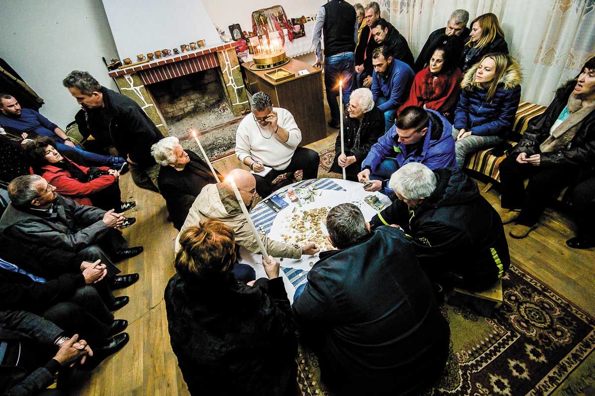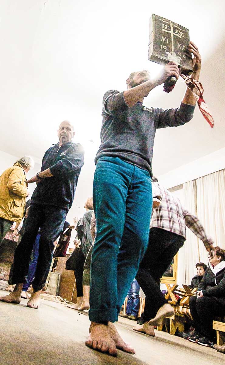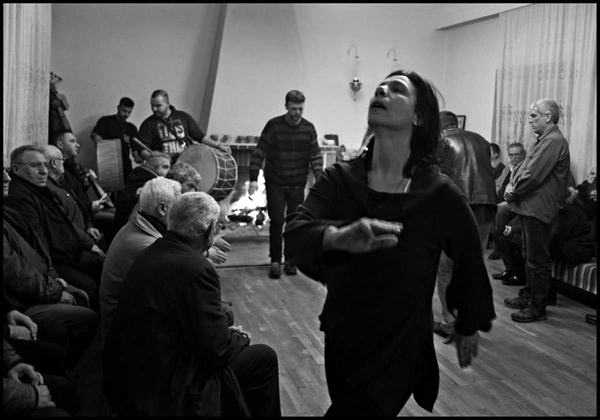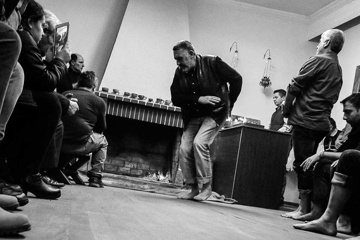 Γιατί αυτοί οι άνθρωποι κλαίνε και θρηνούν καθώς αφήνονται στον σπαρακτικό τους χορό, ενώ μαζί τους δακρύζουν κι αρκετοί από τους παρευρισκομένους; Την πρώτη μέρα νιώθω σαν χαμένη… «Όλοι μας χαμένοι νιώσαμε στην αρχή», θα μου πει ο Σίμος Χατζηλίδης, φωτογράφος από την Αλεξανδρούπολη και από τους νεότερους της παρέας, που συμμετέχει στον χορό μαζί με τη σύζυγό του: «Μαζί μου πρωτοήρθε εδώ, εκείνη όμως μπήκε πρώτη», μου αναφέρει. Ο ίδιος βρέθηκε πριν από κάμποσα χρόνια στο πανηγύρι με σκοπό να το φωτογραφήσει. «Δεν κατάφερα να τραβήξω ούτε μία φωτογραφία…» Τα Αναστενάρια, βλέπεις, δεν είναι απλώς ένα θέαμα προς τέρψη ή κατανάλωση και σαφώς δεν είναι για όλους. Είναι ορισμός της μέθεξης και αφορά αυτούς που επιτρέπουν στον εαυτό τους να νιώσουν – μια στάλα έστω πιότερο από τους υπόλοιπους... «Πόσες φορές στη ζωή σου έχεις τη δυνατότητα να καταλύσεις κάθε σκέψη, να καταργήσεις το Εγώ σου αφήνοντας ελεύθερο το σώμα να σ’ οδηγεί σε κόσμους υπερβατικούς;» θυμάμαι να με ρωτά ο Αποστόλης. «Στον έρωτα ίσως, στον διαλογισμό και στην τέχνη», του απάντησα. Πόσο τυχαίο είναι άραγε το γεγονός πως σχεδόν όλοι οι αναστενάρηδες που γνωρίσαμε εδώ βιοπορίζονται από επαγγέλματα που σχετίζονται με τις τέχνες – εικαστικοί, μουσικοί, θεατρολόγοι, αρχιτέκτονες, εργαζόμενοι στην αρχαιολογία… «Καλησπέρα, καλή χρονιά», ο αρχιαναστενάρης και ψυχίατρος κύριος Τάσος Ρέκλος μάς καλωσορίζει στο τριήμερο πανηγύρι. «Ο γύρος του Πάνα», με προλαβαίνει ο Αποστόλης ή, αν θέλουμε να κυριολεκτήσουμε, εδώ «εγείρεται το παν». Κι είναι, όπως δηλώνει εύστοχα, μια εμπειρία παγανιστική σε ό,τι αφορά το σώμα και χριστιανική σε ό,τι αφορά τον νου και την καρδιά... Πόση αλήθεια εμπεριέχει η πρόταση αυτή! Καθώς από τη μία μεριά κορυφαίοι επιστήμονες ανά τον κόσμο χαρακτηρίζουν τα Αναστενάρια ως το τελευταίο απομεινάρι της διονυσιακής λατρείας στη Θράκη, αυτά έχουν δεχτεί την έντονη πολεμική της Εκκλησίας, η οποία μέσω των εγκυκλίων της απέτρεπε τον κόσμο να συμμετέχει σε αυτά χαρακτηρίζοντάς τα αιρετικά και ειδωλολατρικά. Γι’ αυτό και τα παλιότερα χρόνια –όπως και επί Τουρκοκρατίας– λάμβαναν χώρα μυστικά σε πολύ κλειστό κύκλο εντός των σπιτιών. Σε πείσμα, όμως, των αρνητών τους, κατάφεραν να επιβιώσουν προσλαμβάνοντας και αφομοιώνοντας χριστιανικά χαρακτηριστικά χωρίς, από την άλλη, να αλλοιώσουν τα αρχέγονα διονυσιακά τους στοιχεία. Ωδή στη συνέχεια! Επίσημη, ωστόσο, απαγόρευση δεν έχει υπάρξει ποτέ από την Εκκλησία και καθώς πολλοί από τους μύστες διατηρούν στενές επαφές με το Άγιο Όρος, μαθαίνουμε ότι πολλοί αγιορείτες μοναχοί τα αποδέχονται έστω και ανεπίσημα. Το λιτό κονάκι είναι χτισμένο δίπλα σε πηγή απ’ όπου αναβλύζει το αγίασμα κι ένας ένας οι αναστενάρηδες ανάβουν το κερί καλησπερίζοντάς μας με Χρόνια Πολλά. Προσκυνούν με ευλάβεια τις «Χάρες», τις ιερές εικόνες των «παππούδων», όπως αποκαλούν τους αγίους Κωνστανίνο και Ελένη, τους οποίους απεικονίζουν. Ο χώρος θυμιατίζεται και οι συγκεντρωμένοι κάνουν ευλαβικά τον σταυρό τους. Η λύρα ξεκινά το αργόσυρτο τραγούδι με τον παλμό να δίνεται από το νταούλι, που παρασέρνει το σώμα στον ρυθμό του. Είναι σχεδόν αδύνατο να του αντισταθείς! Τραγουδούν όλοι μαζί τα παραδοσιακά επιτραπέζια τραγούδια τα οποία αναφέρονται στα χρόνια της τούρκικης κατάκτησης μαρτυρώντας και τον πατριωτικό χαρακτήρα του πανηγυριού. Για τον Στ