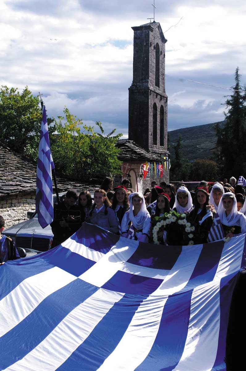 Μόλις 10 λεπτά από τα σύνορα, στο χωριουδάκι Βουλιαράτες βρίσκεται το μοναδικό ελληνικό στρατιωτικό νεκροταφείο στη Βόρεια Ήπειρο με αναγνωρισμένους πεσόντες του 1940-1941: 57 στρατιώτες, ένας αξιωματικός και ο φύλακας-προστάτης τους κοιμούνται στο προαύλιο της Αγίας Σκέπης, που σήμερα δαφνοστολίστηκε για να υποδεχτεί φίλους και συγγενείς των ηρώων. Η γιορτή πραγματοποιείται κάθε δύο χρόνια και πόσο μοναδικά νιώθω όταν περπατώ ακριβώς κάτω από το ύψωμα του Αγίου Αθανασίου. Σε αυτόν τον λόφο, που βλέπει όλη την κοιλάδα της Δρόπολης, την 1η Δεκεμβρίου 1940 μια φονική μάχη κόστισε τη ζωή 15 Ελλήνων. Οι τραυματίες ήταν σαφώς περισσότεροι και χρειάζονταν περίθαλψη. Έτσι οι χωρικοί αποφάσισαν να δώσουν τα σπίτια τους για να δημιουργήσουν το Σ1 πεδινό χειρουργείο με δυναμική 300 κλινών, που εξυπηρετούσε Έλληνες από διάφορα σημεία του μετώπου. Όσοι παρά τη φροντίδα δεν τα κατάφεραν αναπαύτηκαν αιώνια στο χώμα των Βουλιαράτων. Ο ονομαστικός κατάλογος που φυλάχτηκε συνέβαλε στην προσωπική μνημόνευση της ανδρείας του καθενός. Οδεύω προς τον Άγιο Αθανάσιο. Πιο χαμηλά αυτή η εκκλησιά σε καθηλώνει με το εσωτερικό της. Τα κορίτσια με τις παραδοσιακές στολές στριμώχνονται στη μικρή πορτούλα της, καθώς βιάζονται να μεταβούν στο πνευματικό κέντρο για την τελική πρόβα. Σε κλίμα βαθιάς κατάνυξης θα ψάλουν το «Τη Υπερμάχω», όχι με λέξεις, μα με ψυχή. Η συγκίνηση απλώνεται σαν κύμα. Απέναντι, μια τεράστια ελληνική σημαία με το σύνθημα «Βόρεια Ήπειρος - γη ελληνική», ανεβαίνει ψηλά, κόντρα στις επιταγές της κυβέρνησης. Αψηφώντας τον βοριά, δυο παλικάρια ρισκάρουν να τη στερεώσουν. Υψηλό το φρόνημα γι’ αυτούς. Γαλανόλευκο φόντο για τις σέλφι των εκδρομέων. Τρεις μαυροφορεμένες γιαγιάδες, με πρόσωπα σκαμμένα πίσω από τις λευκές μαντίλες τους, περιεργάζονται τους μοντέρνους επισκέπτες. Οι ντόπιοι γεμίζουν τον παλιό καφενέ. Πλησιάζω. Το σκηνικό σκοτεινό, σχεδόν μυστηριακό, κάτω από μια τρεμάμενη λάμπα φθορίου ίσα που διακρίνονται φυσιογνωμικά. Η φτώχεια ανόθευτη καμαρώνει την αυθεντικότητά της. Ήδη νιώθω πιο αγνή όταν το ποτάμι της παρέλασης με αδειάζει στο κοιμητήριο. Η ώρα για την κατάθεση στεφανιών από τους επισήμους δεν μου ταιριάζει. Γυρίζοντας προς τα πίσω θα τρακάρω μ’ έναν Κολοκοτρώνη. Θαμπωμένη από τη λαμπρή του περικεφαλαία θα ψάξω λίγη ακόμη λάμψη, μια ελπίδα στα παιδικά μάτια, εκεί που διακρίνεται η λαχτάρα να κρατήσουν λίγο τη σημαία. Μιλούν αλβανικά, μα λένε η καρδιά τους είναι βαθιά ελληνική και είναι αυτή η γενιά που κουβαλάει τη μεγαλύτερη ευθύνη ώστε να μη χαθεί το ελληνικό στοιχείο. Δεν θα μείνουμε για το γλέντι, αφού ο προορισμός μας είναι η παλιά πόλη του Αργυροκάστρου, η οποία μάλιστα έχει ενταχθεί στα μνημεία παγκόσμιας πολιτιστικής κληρονομιάς. Παρόλο που βρίσκεται λίγα χιλιόμετρα μακριά, ο αυστηρός έλεγχος της τροχαίας επιβάλλει χαμηλή ταχύτητα και έτσι έχω την ευκαιρία να αφομοιώσω τη διαδρομή. Εικόνες όπως η χοντρή γκριζωπή κάπα του βοσκού, η ζωγραφιά της διαφήμισης με το γράμμα που ανοίγει ο φαντάρος στον πόλεμο, τα πυροβολεία (Bunker), η πέτρινη γέφυρα, έξω από τους Λαζαράτες, στολισμένη με ιτιές κι ένα φύλλωμα από κρυστάλλινους πολυελαίους να την ανάβει τις νυχτιές, το στερεωμένο αρκούδι στον σκελετό μιας οικοδομής ως φόβητρο για το κακό, τα δίδυμα νεκροταφεία πνιγμένα στο πλαστικό λουλούδι, που φιλοξενούν όλες τις θρησκείες κι έχουν τ