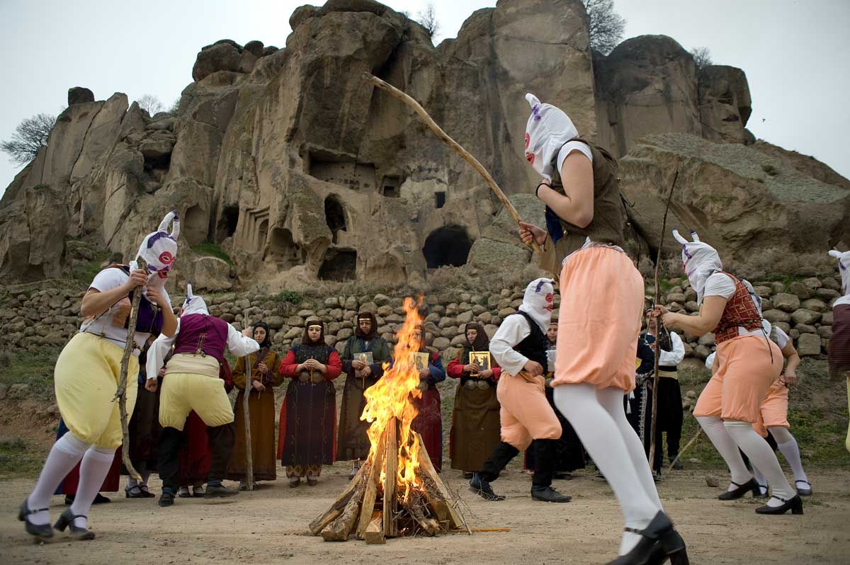 Όπως κάνουν οι περισσότεροι Νεοκαρβαλιώτες κάθε Μάιο, έτσι ξεκινάμε φέτος κι εμείς να τους ακολουθήσουμε από τη Νέα Καρβάλη και πηγαίνουμε στην Κιουτάχεια, περίπου 470 χλμ., όπου είναι το κέντρο της πορσελάνης, με δεκάδες εργαστήρια. Διανυκτερεύουμε και την επόμενη ημέρα αναχωρούμε για το Ικόνιο (που σήμερα λέγεται Κόνυα). Εδώ ιδρύθηκε το τάγμα των Μεβλανά σούφι - δερβίσηδων με τον υπέροχο περιστρεφόμενο υπό την κατανυχτική μουσική ενός καλαμιού νέι, από τον μεγάλο ποιητή της αγάπης Τσελαλαντίν Ρουμί. Επισκεπτόμαστε τον ναό κι έπειτα φθάνουμε στο άλλοτε ελληνικό χωριό Σίλης με τα πανέμορφα σπίτια και τη συντηρημένη εκκλησιά των Αγίων Κωνσταντίνου και Ελένης, στον λόφο Αλεαδίν, στο κέντρο του Ικονίου, και στο πρώτο ανάκτορο των Σελτζουκιδών. Διανυκτερεύουμε στη Νίγδη και, την τρίτη ημέρα, περιηγούμαστε στην αρχαία πόλη των Τυάνων, στο μοναστήρι της Παναγίας των Ασημιών, στα κάποτε ελληνικά χωριά, και το βραδάκι φτάνουμε στο Γκέλβερι. Περιηγούμαστε στην αρχαιότερη εκκλησιά της Καππαδοκίας (335 μ.Χ.) του Γρηγορίου του Θεολόγου. Μαγεία η πλειάδα των υπόσκαφων μοναστηριών της πολιτείας του Γκέλβερι. Εδώ τώρα αρχίζουν να διαδραματίζονται τα δρώμενα του πλούσιου καππαδοκικού εθιμικού κύκλου, που καταλήγει σε τρικούβερτο γλέντι με μουσικά καππαδοκικά όργανα, κρασί –το ονομαστό του Γκέλβερι, γνωστό από τους Χετταίους– ντολμαδάκια, μαντί και παστουρμά. Οι ντόπιοι μαζί με τους Νεοκαρβαλιώτες διατηρούν γνήσια φιλία, ανοίγουν τα σπίτια τους για να ξαναδιασκοσμηθούν «ελληνικά» με τα φερμένα από το Μουσείο της Καρβάλης αντικείμενα, και να αναβιώσουν έθιμα όπως ο γάμος. Μέχρι και στις σπηλιές των βράχων σκαρφαλώνουν κουβαλώντας τα σκεύη, τα κεριά, τα φανάρια, τις εικόνες, τα λιβάνια, κάποιος ντύνεται παπάς και ξανανοίγουν οι παλιές ερειπωμένες εκκλησιές μες στις σπηλιές… Στα σοκάκια δε, όσοι θέλουν συμμετέχουν στα Σάγια με τους καλικάντζαρους, πηδούν πάνω από τις φωτιές του Αυγούστου, χορεύουν παίζοντας κρόταλα στην αναβίωση του πανηγυριού της Παναγίας και συμμετέχουμε όλοι. Συνεχίζουμε στις κοιλάδες, ανάμεσα στα φαντασμαγορικά φαράγγια με τα βράχια του Ιχλάρα και του Περιστρέματος. Χοροί και ορχήστρες με ούτια, ντέφια και νταϊρέδες, φερμένα από το μουσείο, καθώς και κεμανέ (καππαδοκική λύρα). Την τελευταία ημέρα, βρισκόμαστε στο παγκόσμια μοναδικό γεωλογικό φαινόμενο της κοιλάδας του Γκόρεμε, των πρώην ελληνικών χωριών με την εξαιρετική αρχιτεκτονική, όπως και στα ιστορικά μοναστήρια της ομώνυμης κοιλάδας. Μένουμε στο χτισμένο πανοραμικά σε βράχο Προκόπι και ξενυχτάμε –όπως κάθε βράδυ– τραγουδώντας…