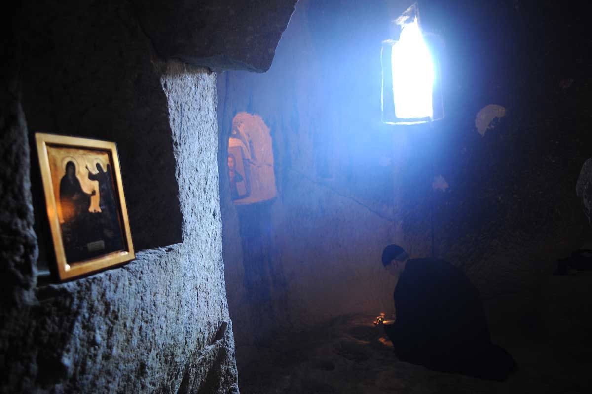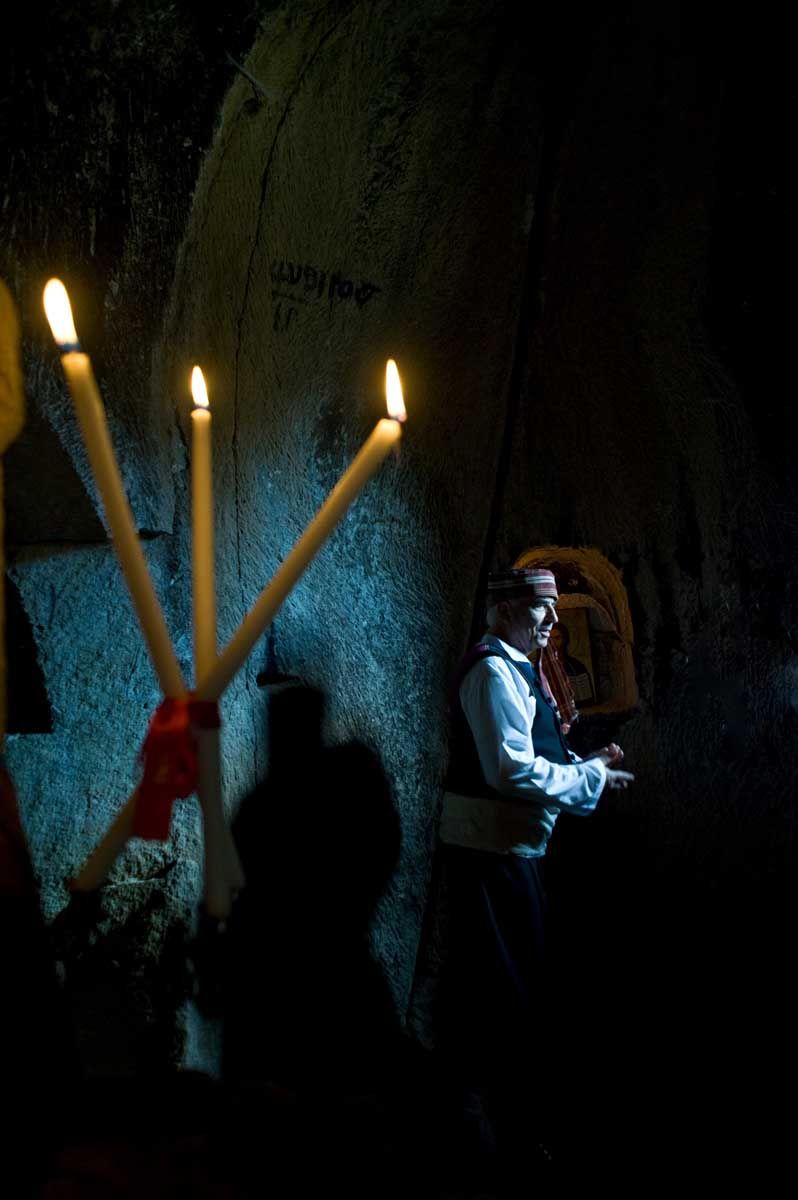 Μέχρι και στις σπηλιές των βράχων σκαρφαλώνουν κουβαλώντας τα σκεύη, τα κεριά, τα φανάρια, τις εικόνες, τα λιβάνια... Κάποιος ντύνεται παπάς και ξανανοίγουν οι παλιές ερειπωμένες εκκλησιές μες στις σπηλιές…