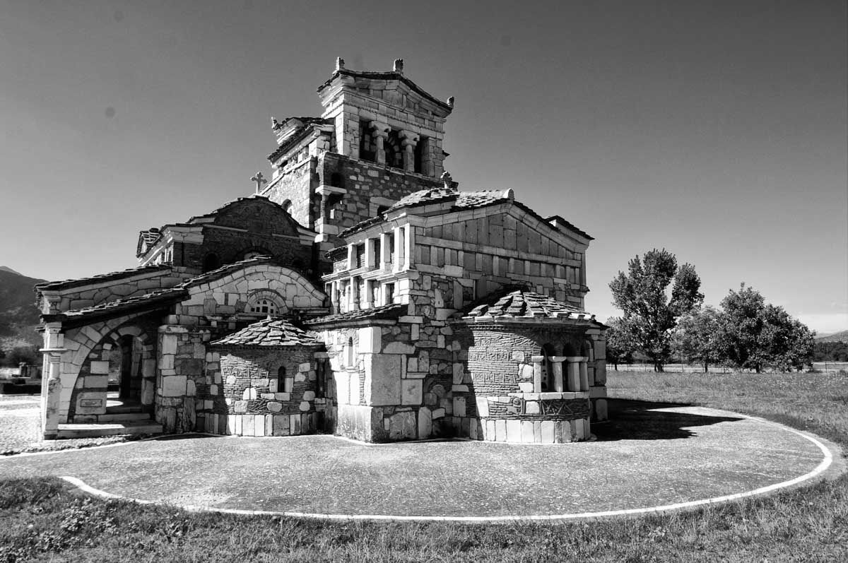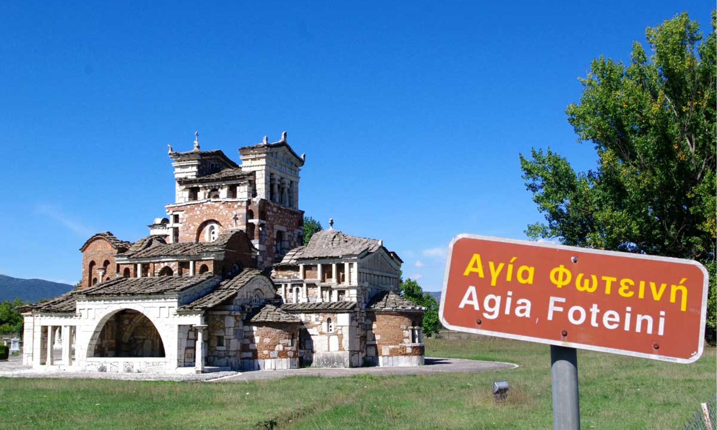 Το τάμα του Κωνσταντίνου Καλτεζιώτη και του Μαντινειακού Συνδέσμου άρχισε να θεμελιώνεται το 1969 με πρωτομάστορα τον αρχιτέκτονα, ζωγράφο και αγιογράφο Κωνσταντίνο Παπαθεοδώρου. Τάμα και όραμα ενώθηκαν στη μορφή ενός κτίσματος με στόχο κοινό, τον διάλογο με τον Θεό… και ο αρχιτέκτονας δούλευε ζώντας για μήνες σε ένα αντίσκηνο, δίπλα στο κτίσμα του, ώστε να μη χάνει πολύτιμο χρόνο – τον χρόνο που ήθελε να νικήσει, να δώσει, να ερμηνέψει μέσα από τα μάτια του, τα μάτια του σύγχρονου Έλληνα που ψάχνει για την ταυτότητά του. Η Δικτατορία το παρόν του κτίστη, το χθες περήφανο και μη εξελισσόμενο και το αύριο να περιμένει. Σαν θέατρο (από το ρ. θεώμαι, που σημαίνει βλέπω με προσοχή) του παραλόγου, που γεννήθηκε μέσα από πολέμους και πολιτική αναρχία, και προσπαθεί να επαναπροσδιορίσει αξίες μέσα από την αποδόμησή τους θέλοντας να δώσει ελπίδα για τη συνέχεια, για μια νέα αρχή... Και τα λόγια του Παπαθεοδώρου να επιβεβαιώνουν: «Οι μετόπες δεν είναι οι κλασικές τρίγλυφες αλλά τετράγλυφες, για να περιλαμβάνουν όλα τα προηγούμενα συν το σήμερα, οι άγιοι είναι φτιαγμένοι προσηνείς με ανθρώπινες μορφές, ενώ πριν από μερικά χρόνια στις αγιογραφίες ο Ιησούς, οι άγιοι, ο Ιούδας παρουσιάζονταν με καθημερινά σύγχρονα πρόσωπα “δανεισμένα” από την περιοχή της Τρίπολης, φορώντας τζιν και ρούχα της εποχής»… Το ερώτημα που τίθεται παρατηρώντας αυτό το πολυπολιτισμικό αρχιτεκτόνημα είναι εάν μπορούν να γεφυρωθούν σε ένα κτίσμα η αρχαία ελληνική αισθητική με τη νεοελληνική αρχιτεκτονική παράδοση, ή καλύτερα εάν αυτό μπορεί να γίνει αντιληπτό ή και πολλές φορές ανεκτό. Δεν σταματούν μέχρι σήμερα οι αντικρουόμενες κριτικές και διαφωνίες, ενώ στο παρελθόν υπήρχε και η επέμβαση της επίσημης Εκκλησίας, η οποία επέβαλε την μερική αντικατάσταση των αγιογραφιών. Η απάντηση, όμως, κρύβεται ξανά στα λόγια του αρχιτέκτονα: «Ήθελα με τις ελαφρώς οξείες και αμβλείες γωνίες της κατόψεως να βρω την ελπίδα ότι σιγά σιγά θα φθάσω στην ορθή γωνία, δηλαδή σε έναν συμβολισμό της πίστεως»… Χωρίς ορθές γωνίες και τσιμέντο, ο ναός δίνει την εντύπωση ότι θα πέσει… Είναι αυτό το τρεμούλιασμα που θα συναντήσεις ανά τον κόσμο μόνο σε μοναδικούς δημιουργούς, όπως στον Γκαουντί ή τον Καβάφη. Ο Παπαθεοδώρου σμίλευσε τους κίονες με τρόπο που δημιουργεί την ψευδαίσθηση ότι κάποτε ήταν φτιαγμένοι από ξύλο και στη συνέχεια αντικαταστάθηκαν από μάρμαρο, όπως ακριβώς συνέβη με τους ναούς κατά την αρχαιότητα. Στο εσωτερικό φιλοτέχνησε ψηφιδωτά από τον Ιππόλυτο του Ευριπίδη, τις τέσσερις εποχές, παραστάσεις από την αρχαία μυθολογία που ταυτίζονται ή συμπορεύονται με χριστιανικούς μύθους. Η Μέδουσα, η Αριάδνη, ο Θησέας, ο Πίνδαρος, αλλά και ο Παπαδιαμάντης δίνουν σιωπηλούς αγώνες για να συναντηθούν με τους αγίους της χριστιανοσύνης… Στον περιβάλλοντα χώρο υπάρχει Ηρώο για να τιμηθούν οι πεσόντες στους πολέμους, το οποίο διέπεται από την ίδια λογική με τον ναό. Επίσης υπάρχει το λεγόμενο «Φρέαρ του Ιακώβ», που συμβολίζει τη συνάντηση του Ιησού με τη Σαμαρείτιδα. Είναι μαρμάρινο, κυκλικό με οκτώ κίονες, οι οποίοι κάμπτονται μοναδικά γεννώντας την εικόνα των νυμφών εν χορώ. Όταν ο αρχιτέκτων μαθήτευε δίπλα στον σπουδαίο δάσκαλό του, τον Δημήτρη Πικιώνη, φτιάχνοντας ένα έργο στην Κύμη, ο δάσκαλος είπε στον μαθητή όταν αυτός φαινόταν ότι ήταν υπερβολικός: «Πρόσεχε! Τι κάνεις εκεί; Μέκκα;» Αν