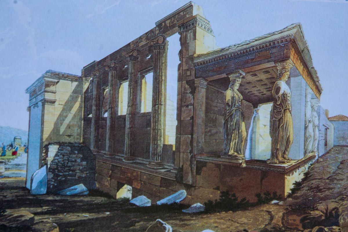 Για όσους κουράστηκαν από δω κι έπειτα ξεκινά η κατηφόρα. Πόσες ακόμα όμορφες ιστορίες να ‘χει άραγε η Σίσσυ για μας. «Σωτηράκης» είναι το βυζαντινό εκκλησάκι της Μεταμόρφωσης του Σωτήρος στα ριζά του Ιερού Βράχου κι εδώ μεταφέρθηκε η σωρός του Οδυσσέα Ανδρούτσου όταν οι συναγωνιστές του τον γκρέμισαν από την Ακρόπολη, λέγοντας έπειτα ότι προσπάθησε να αποδράσει… «Πέρασαν 40 χρόνια μέχρι ένας αυτόπτης μάρτυρας, λίγο πριν το τέλος της ζωής του, ομολόγησε τι είχε συμβεί αποκαθιστώντας την τιμή του…», θα μας πει. Βρισκόμαστε στην οδό Θεωρίας κι απέναντί μας ένα ακόμα από τα ελάχιστα εναπομείναντα σπίτια της Οθωμανικής περιόδου, όπου στεγάστηκε το πρώτο αρχιτεκτονικό γραφείο της Αθήνας. «Εδώ τέθηκαν τα σχέδια της πόλης από τον Κλεάνθη κι αργότερα λειτούργησε το πρώτο πανεπιστήμιο της ελεύθερης Ελλάδας». Σήμερα είναι Μουσείο Ιστορίας του Πανεπιστήμιου Αθηνών κι έχει την πιο ωραία θέα στην Αθήνα! Για να μας βάλει πιο εύκολα στο κλίμα η Σίσσυ κρατά μαζί της και ντοκουμέντα από την εποχή. Σε ένα αντίγραφο από τον τεράστιο ζωγραφικό πίνακα του 1684 που φυλάσσεται στο Μουσείο της Πόλεως των Αθηνών διακρίνουμε τον Παρθενώνα με μιναρέ. Είναι ένα από τους οχτώ που απέκτησε τελικά η πόλη πριν την Επανάσταση αλλά και η μοναδική απεικόνισή ολόκληρου του μνημείου που 13 χρόνια αργότερα θα βομβαρδιστεί από τον Μοροζίνι. Ήταν ένα κάστρο με τετραπλή οχύρωση, όπου απαγορευόταν η είσοδος στους Χριστιανούς. «Στα Προπύλαια κατοικούσε ο φρούραρχος, στο Ερέχθειο το χαρέμι του και γύρω από τον Παρθενώνα υπήρχαν 200 σπίτια, όπου ζούσαν οι οικογένειες των Οθωμανών φρουρών». Μια από τις οβίδες έπεσε από τον φεγγίτη του ναού που χρησιμοποιούταν ως μπαρουταποθήκη κι εντός δευτερολέπτων τα πάντα σχεδόν θα καταστραφούν…