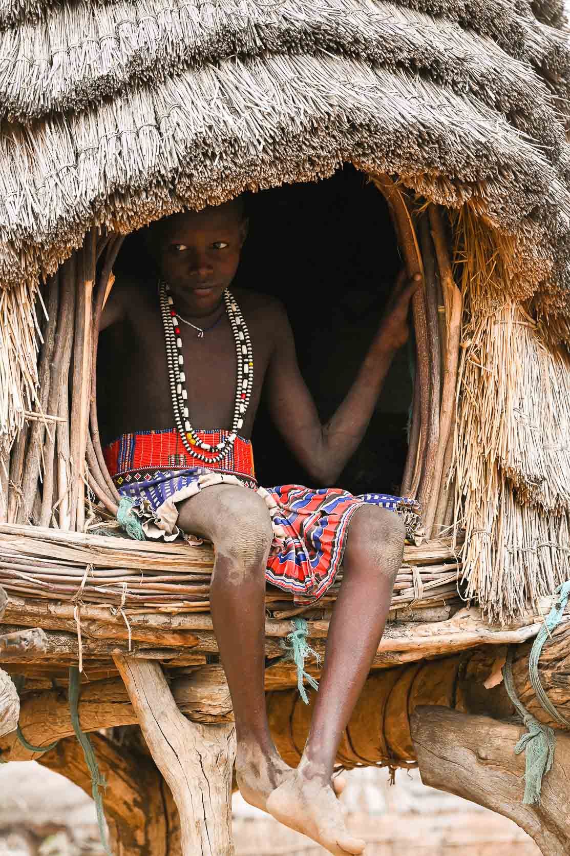 Το άλλο πρωί οι Μπόγια μας ξενάγησαν στο χωριό. Συναντήσαμε βασικά γυναίκες, παιδιά και ηλικιωμένους, καθώς οι άντρες έλειπαν στη βοσκή των ζώων. Μας έδειξαν τις καλύβες στις οποίες πληροφορηθήκαμε ότι διαμένουν τα μικρά παιδιά όλα μαζί, έξω από την οικογενειακή εστία. Στους Λόπιτ, τα κορίτσια έμεναν μαζί με γυναίκες μεγαλύτερης ηλικίας, όχι απαραίτητα τις βιολογικές τους γιαγιάδες, οι οποίες τους έδιναν τα βασικά εφόδια κοινωνικής συμπεριφοράς. Θα λέγαμε λοιπόν ότι, ενώ σαφώς υπάρχει πατριαρχία με την έννοια του κέντρου λήψης απόφάσεων, δεν υπάρχει πυρηνική οικογένεια, αλλά συλλογική ευθύνη ανατροφής. Τα κορίτσια μας αποχαιρέτησαν με χορούς και τραγούδια, ενώ δεν παραλείψαμε να αγοράσουμε τα χειροτεχνήματα που φτιάχνουν με πολύχρωμες χάντρες και πέτρες.